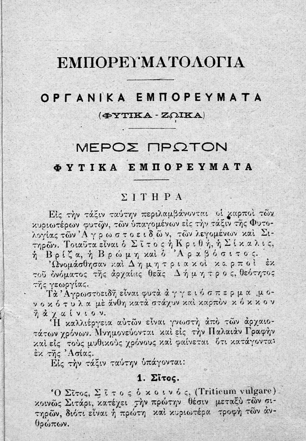 Σχολικό εγχειρίδιο Εμπορευματολογίας για τους μαθητές των Εμπορικών Σχολών που παρουσιάζει τα οργανικά και ζωικά εμπορεύματα.
