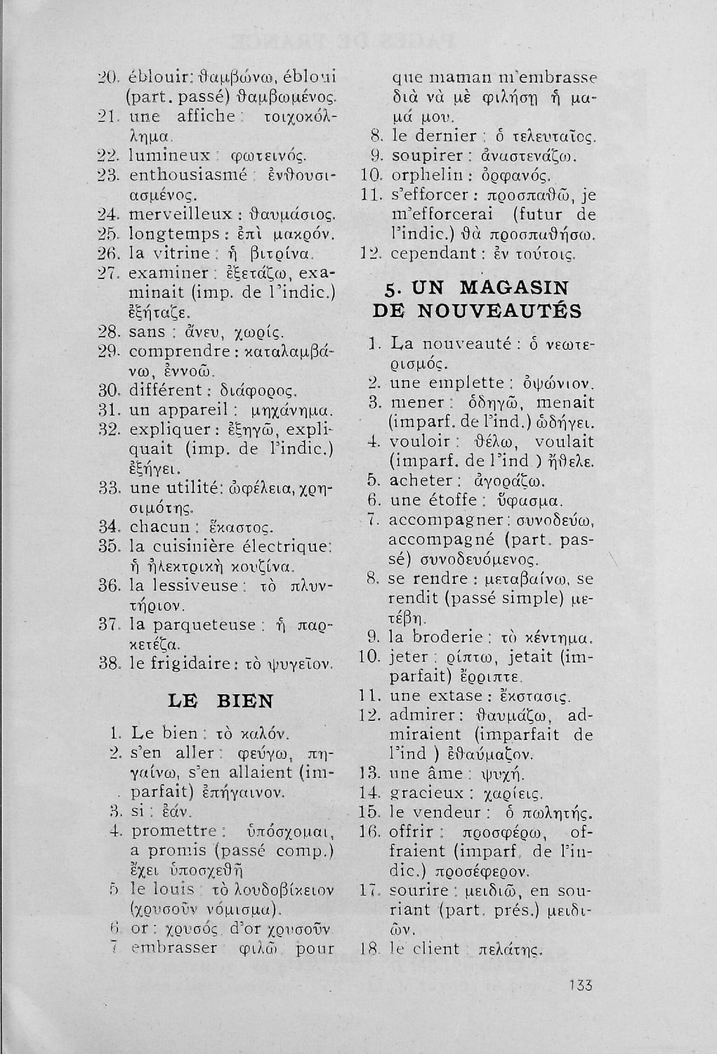 Σχολικό εγχειρίδιο Γαλλικών για τα Γυμνάσια και τις Εμπορικές Σχολές που περιλαμβάνει πεζά και ποιήματα, θεωρία, λεξιλόγιο, ασκήσεις και παροιμίες. Ο συγγραφέας ήταν καθηγητής της Δημόσιας Εμπορικής Σχολής ...