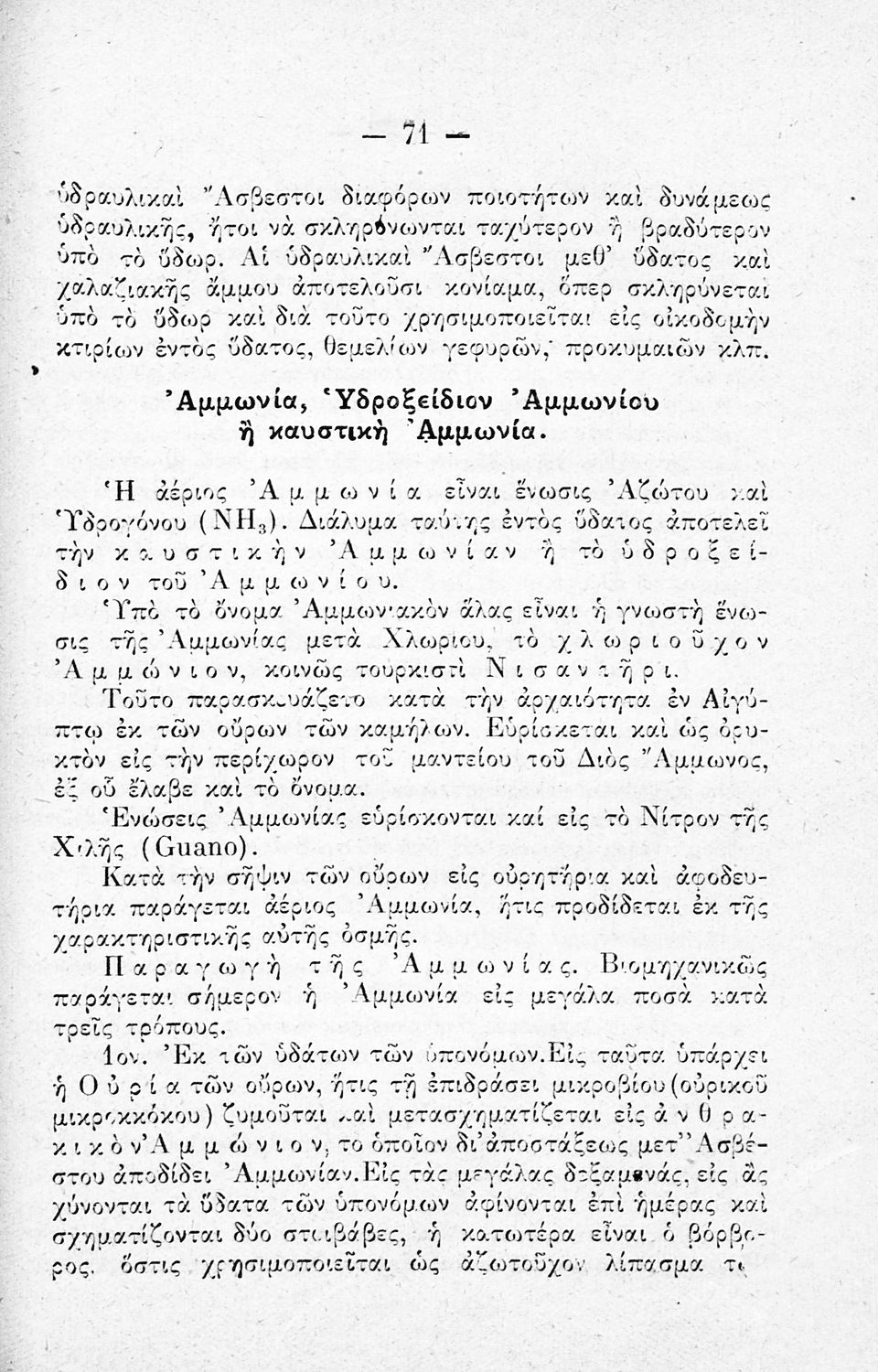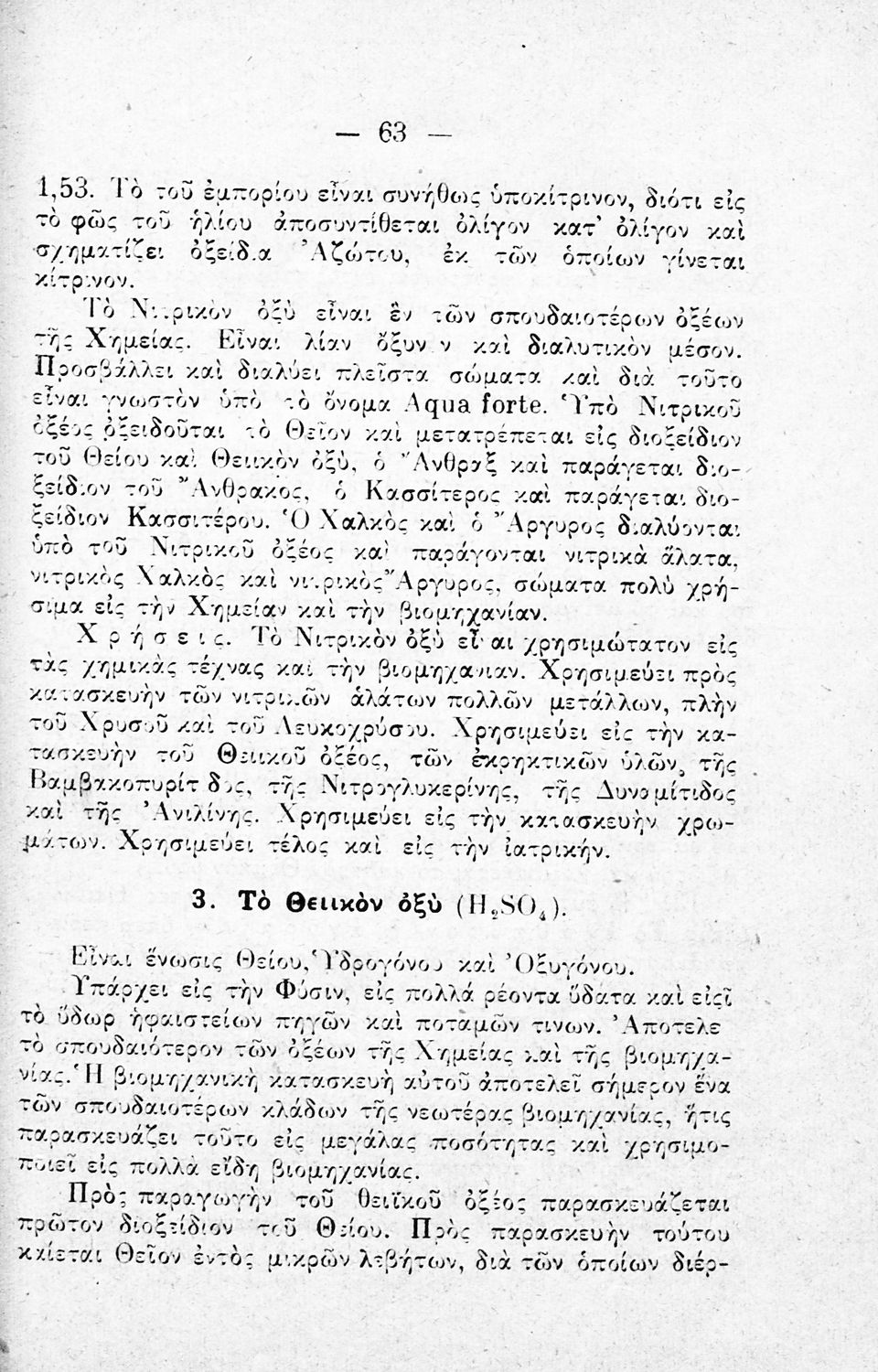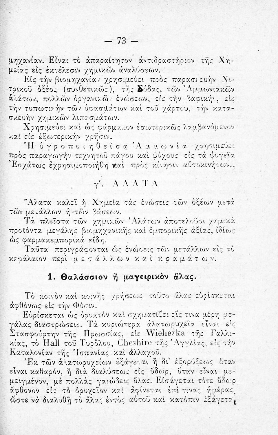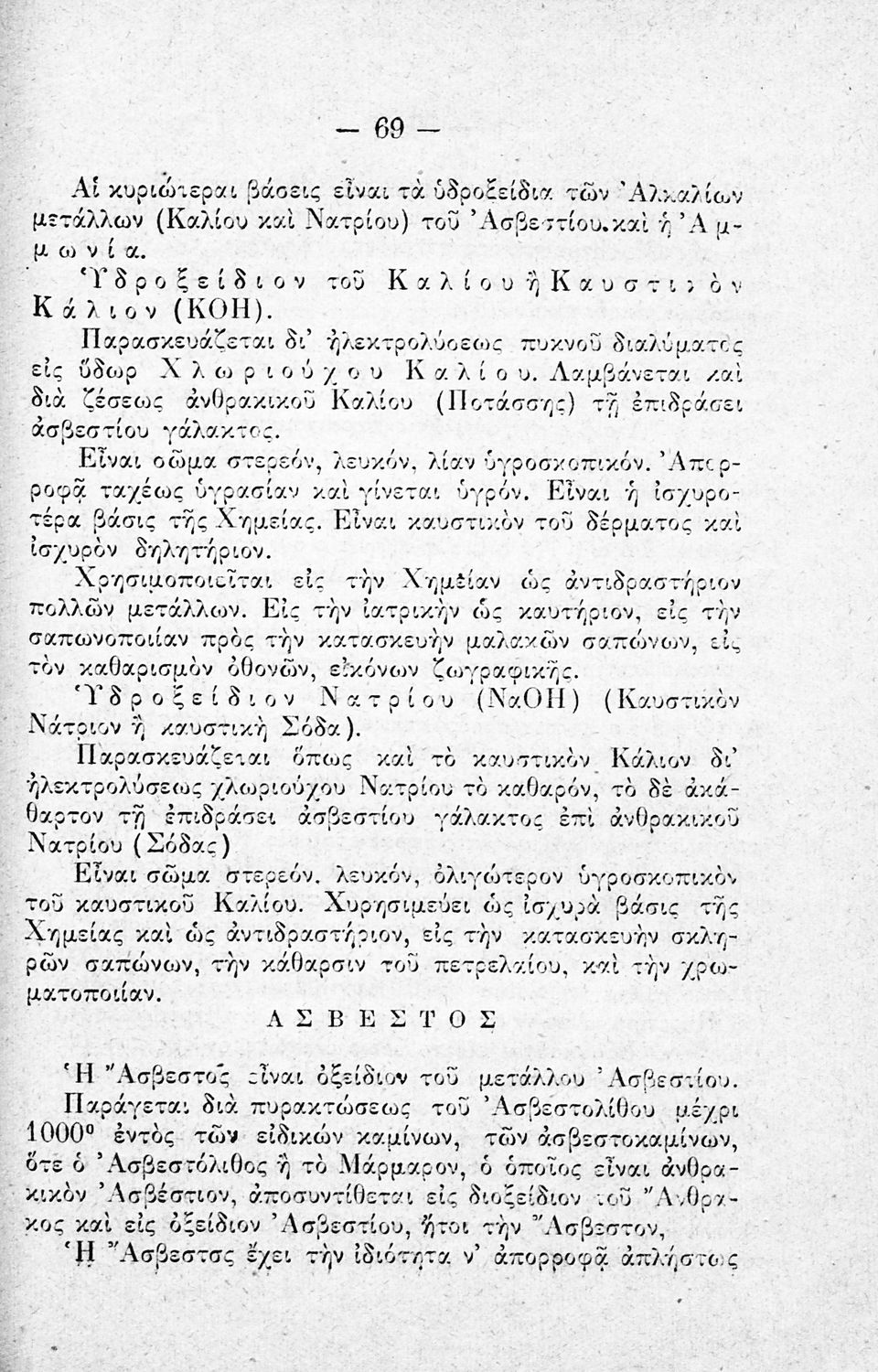 Σχολικό εγχειρίδιο Εμπορευματολογίας για τους μαθητές των Εμπορικών Σχολών που παρουσιάζει τα μέταλλα, τα οξέα, τα άλατα, τα χημικά χρώματα, τις εκρηκτικές, οικοδομικές και καύσιμες ύλες.