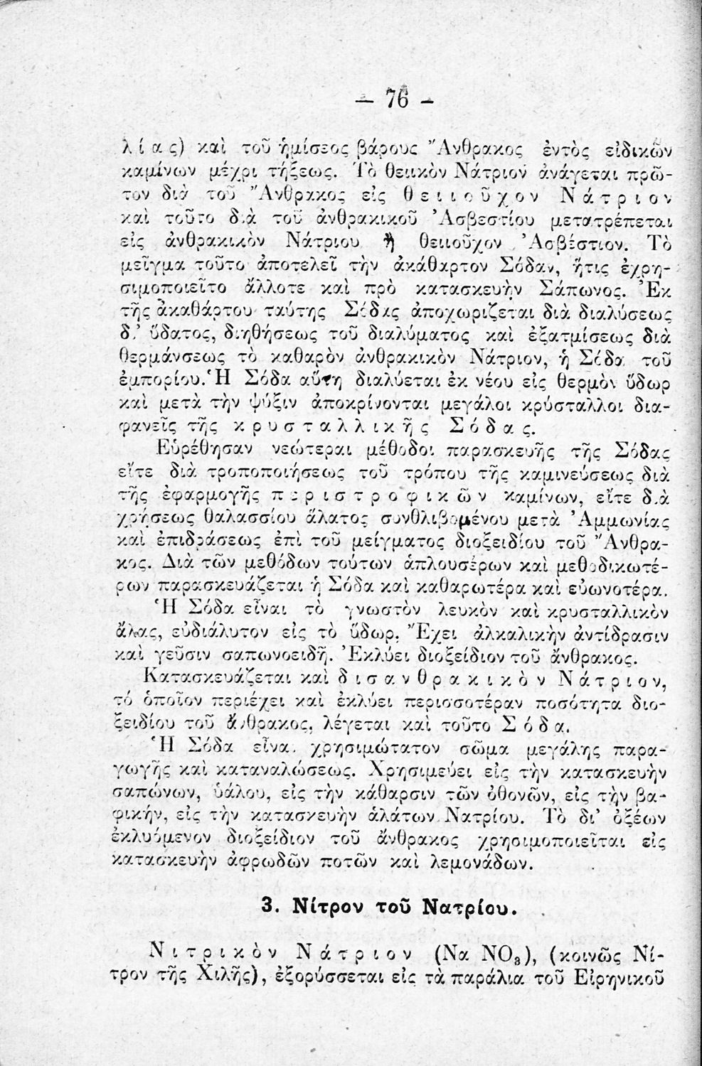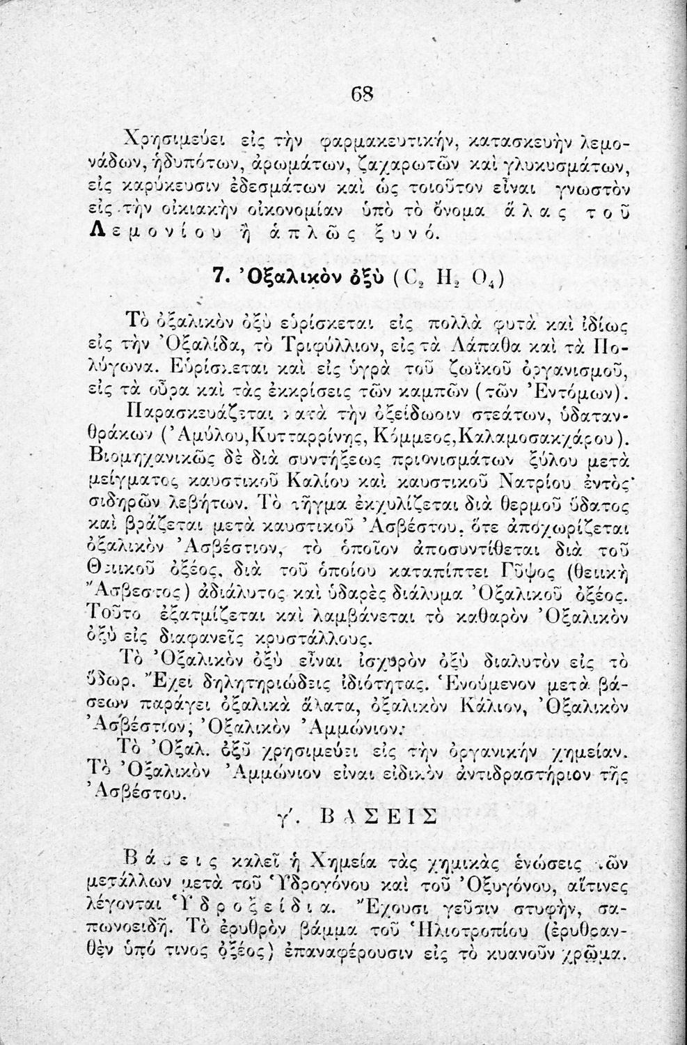 Βαθμίδα εκπαίδευσης: Δευτεροβάθμια Μάθημα: Εμπορευματολογία Γλώσσα: Καθαρεύουσα Παρουσίαση περιεχομένου: Σχολικό εγχειρίδιο Εμπορευματολογίας για τους μαθητές των Εμπορικών Σχολών που παρουσιάζει τα μέταλλα, τα οξέα, τα άλατα, τα χημικά χρώματα, τις εκρηκτικές, οικοδομικές και καύσιμες ύλες. |