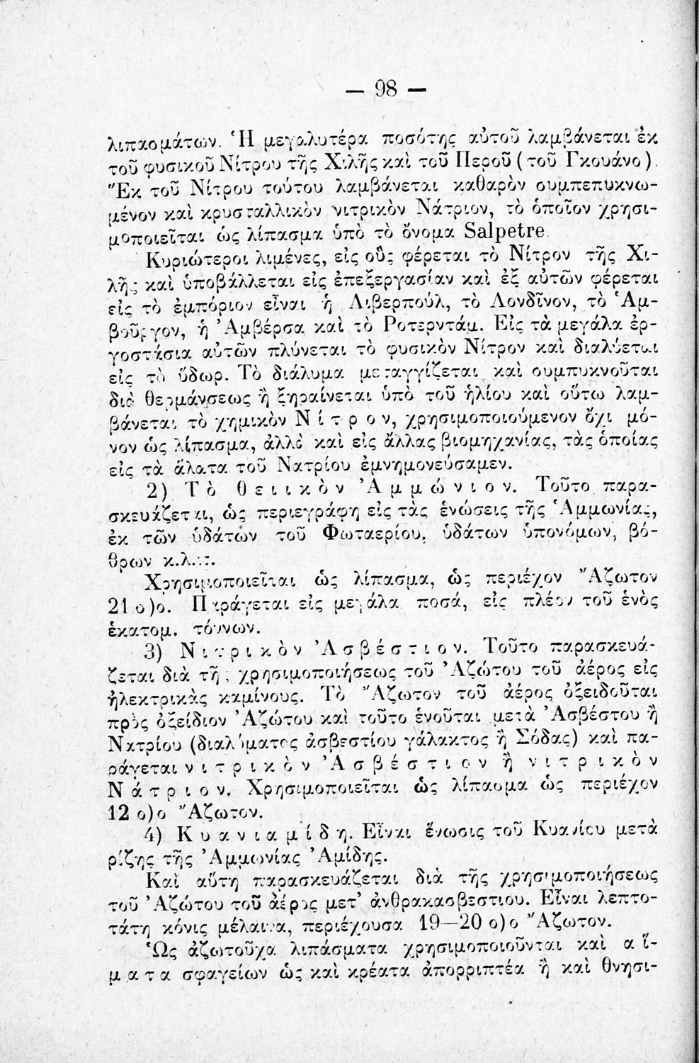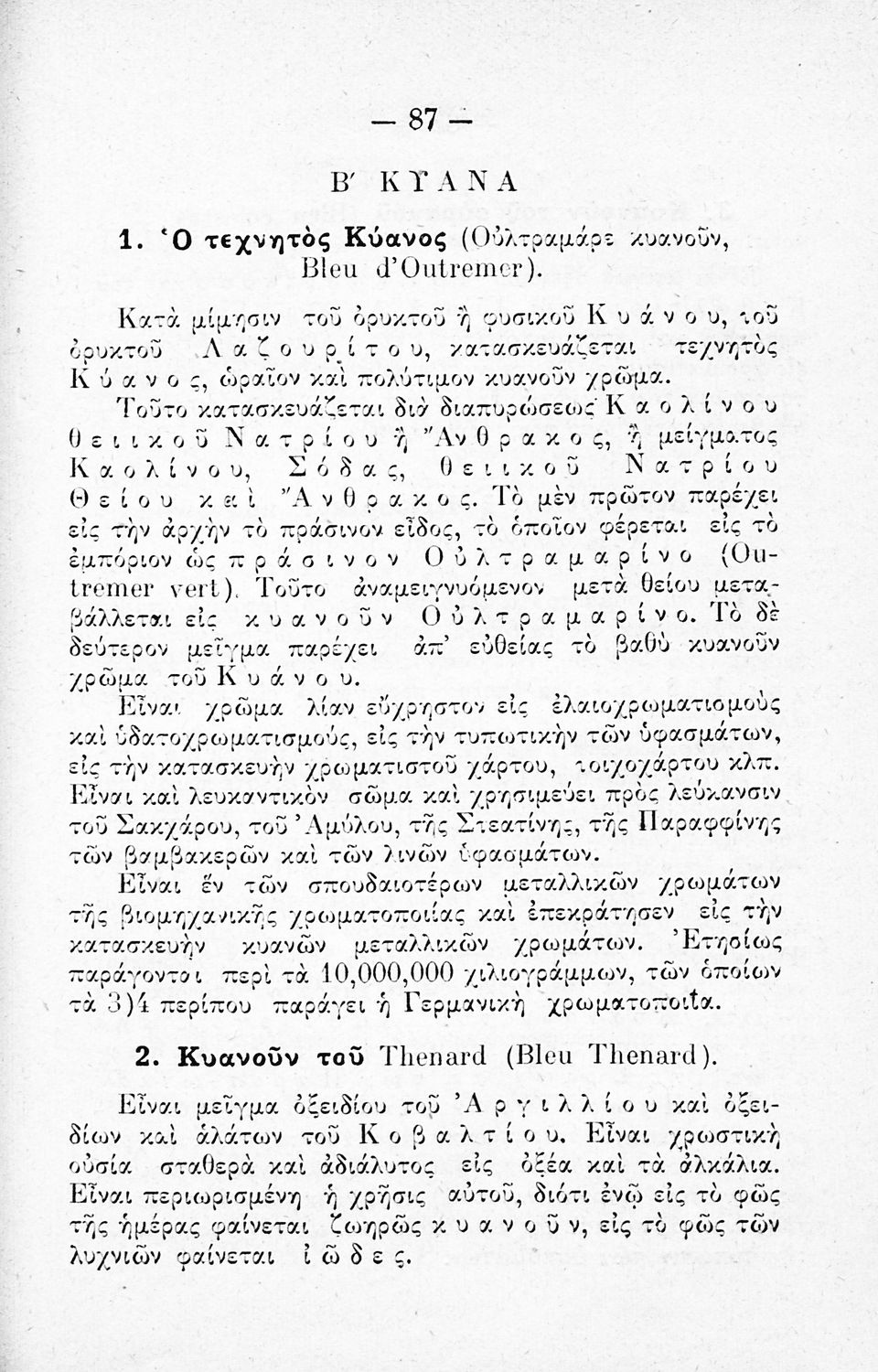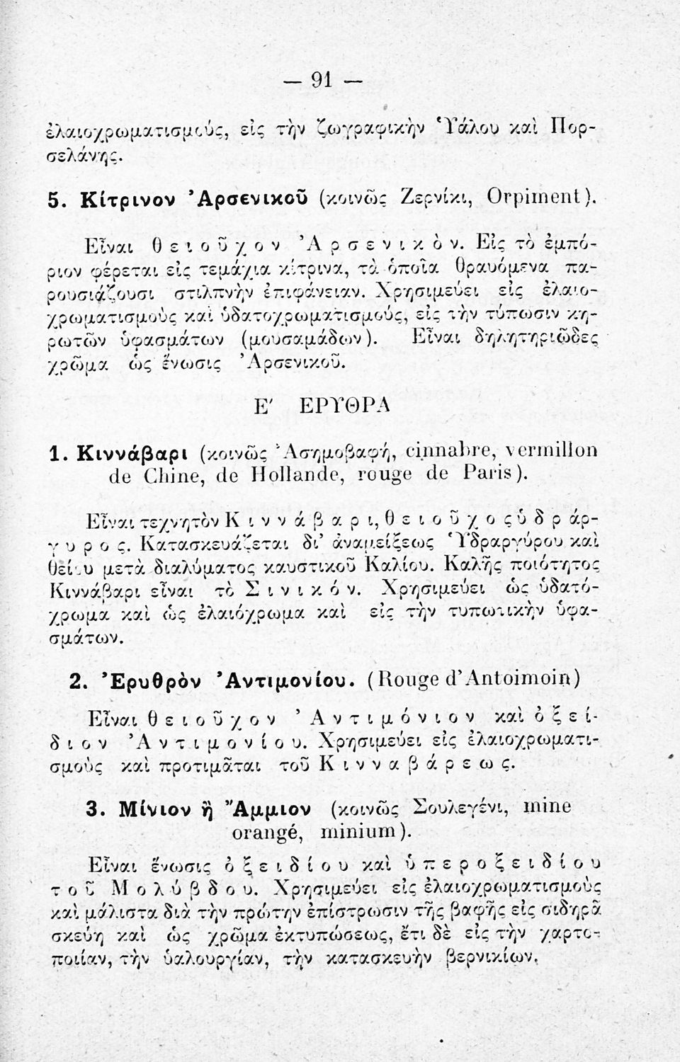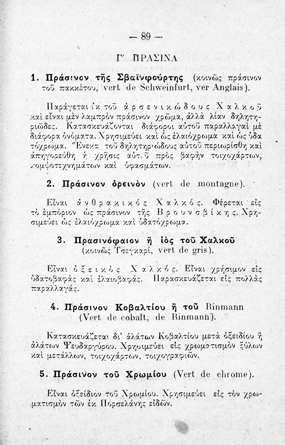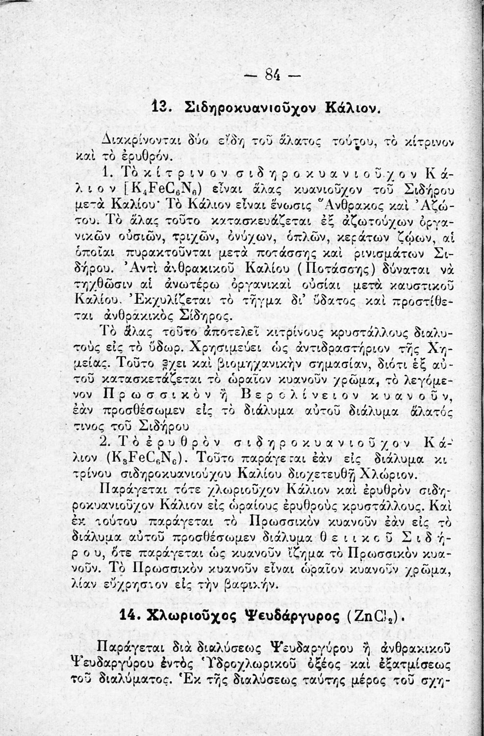 Σχολικό εγχειρίδιο Εμπορευματολογίας για τους μαθητές των Εμπορικών Σχολών που παρουσιάζει τα μέταλλα, τα οξέα, τα άλατα, τα χημικά χρώματα, τις εκρηκτικές, οικοδομικές και καύσιμες ύλες.