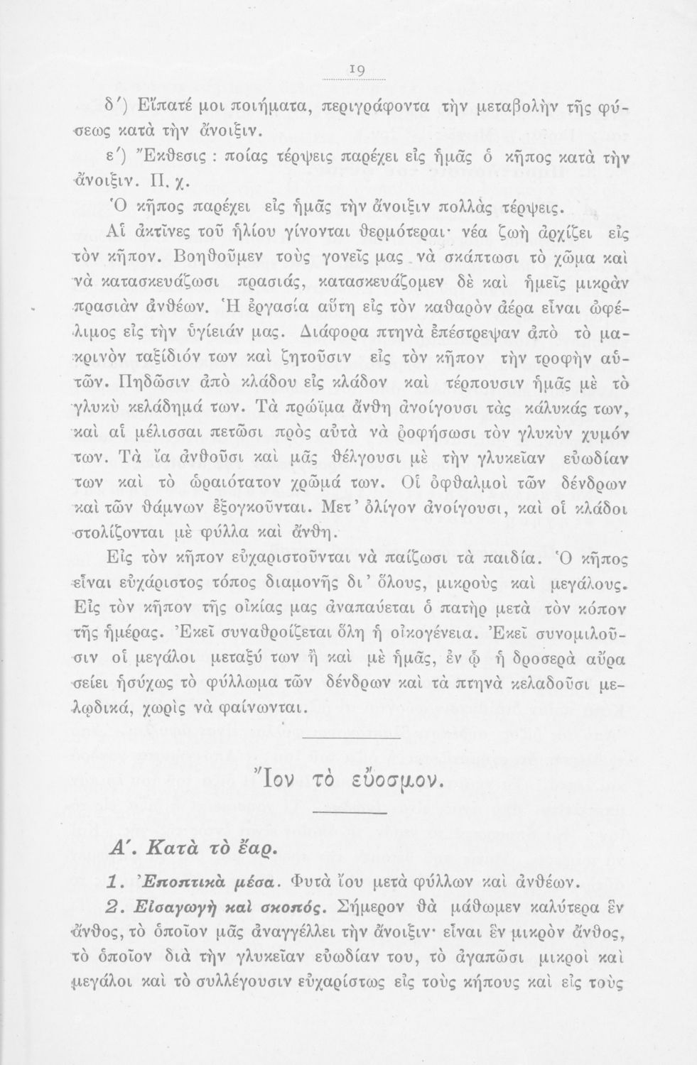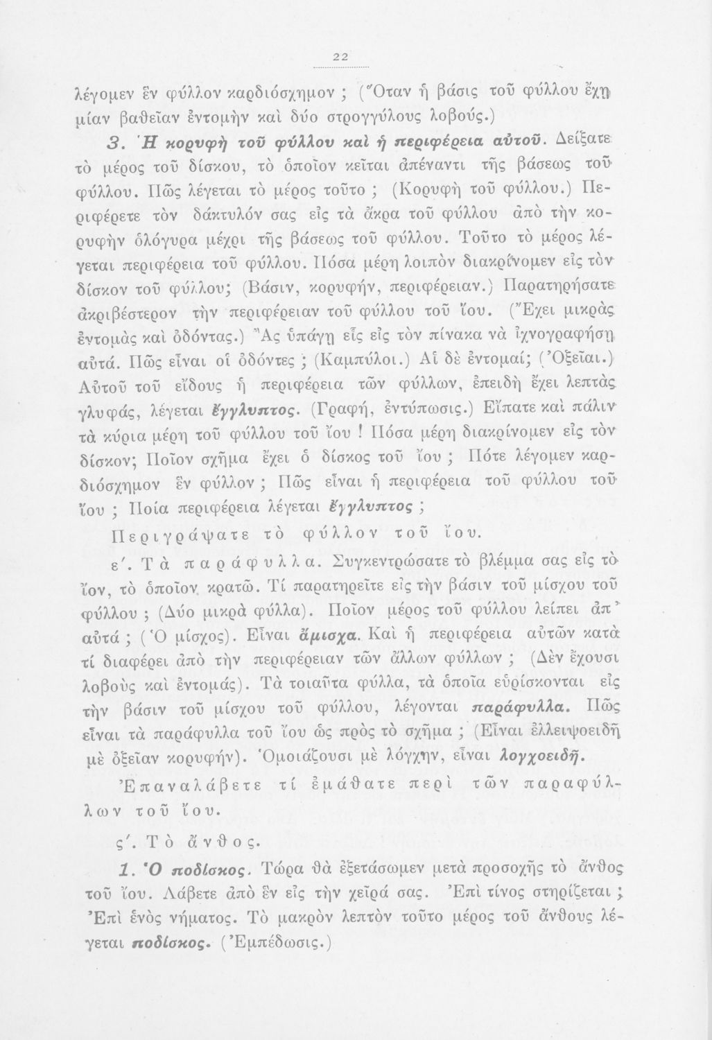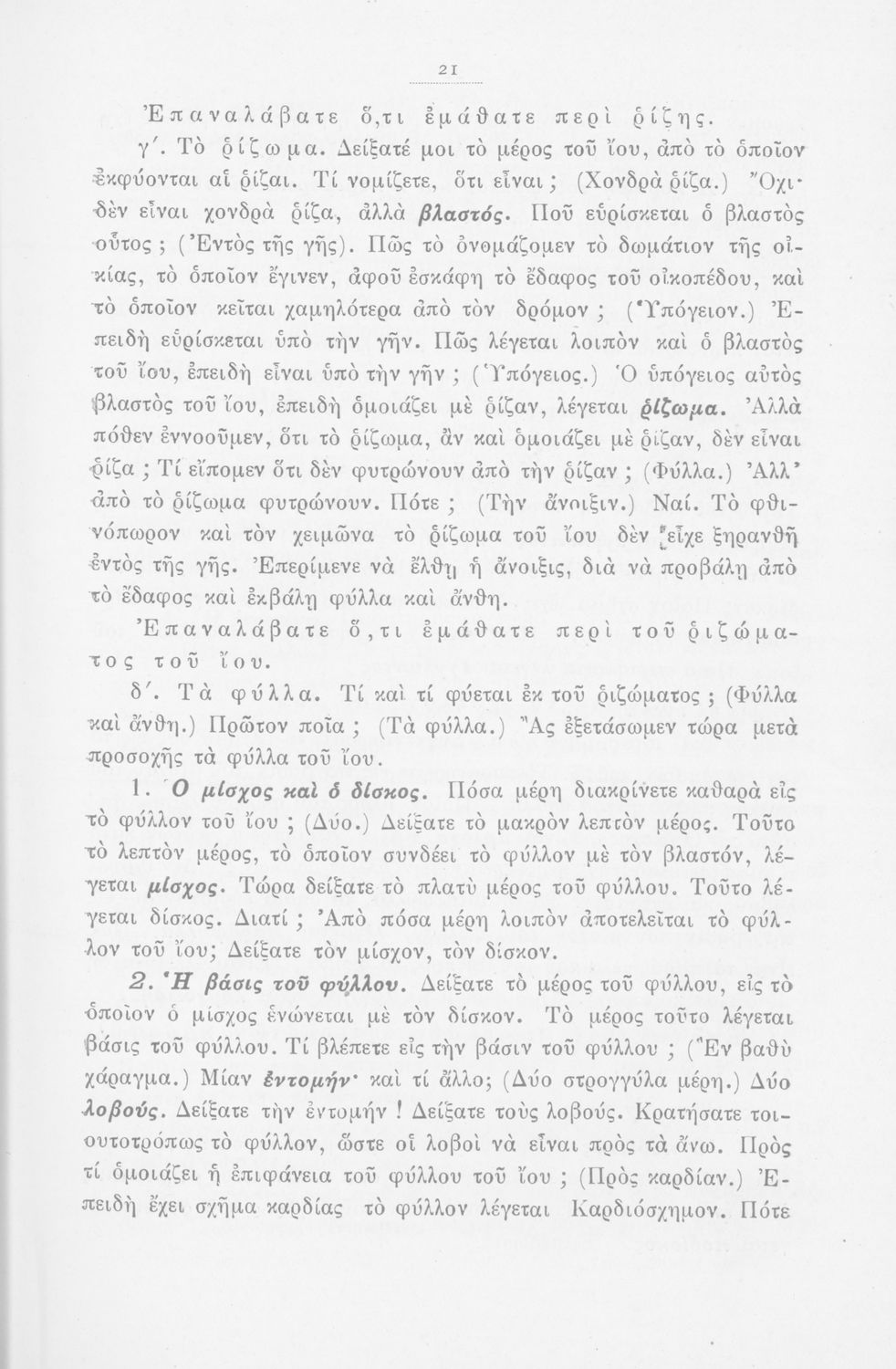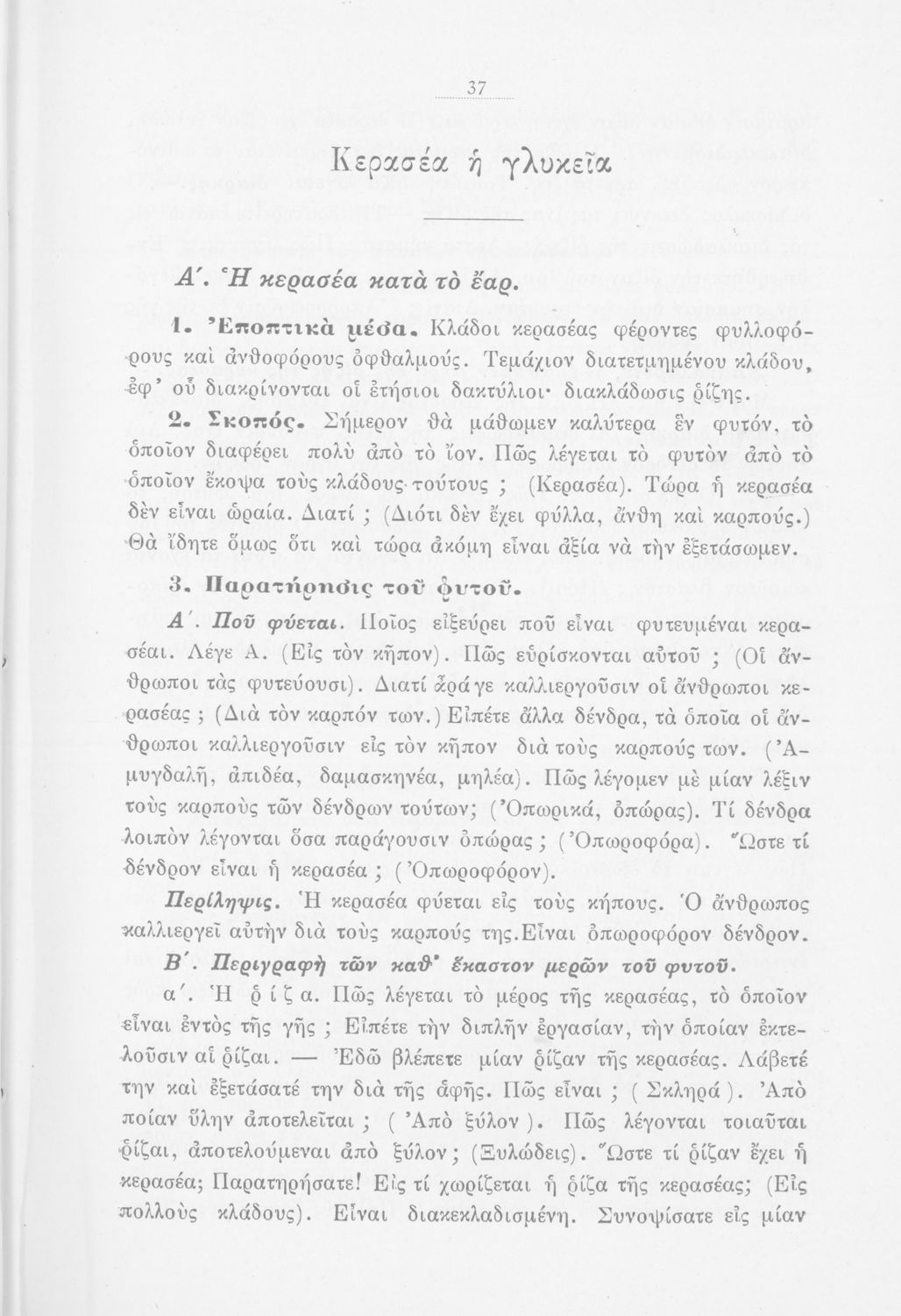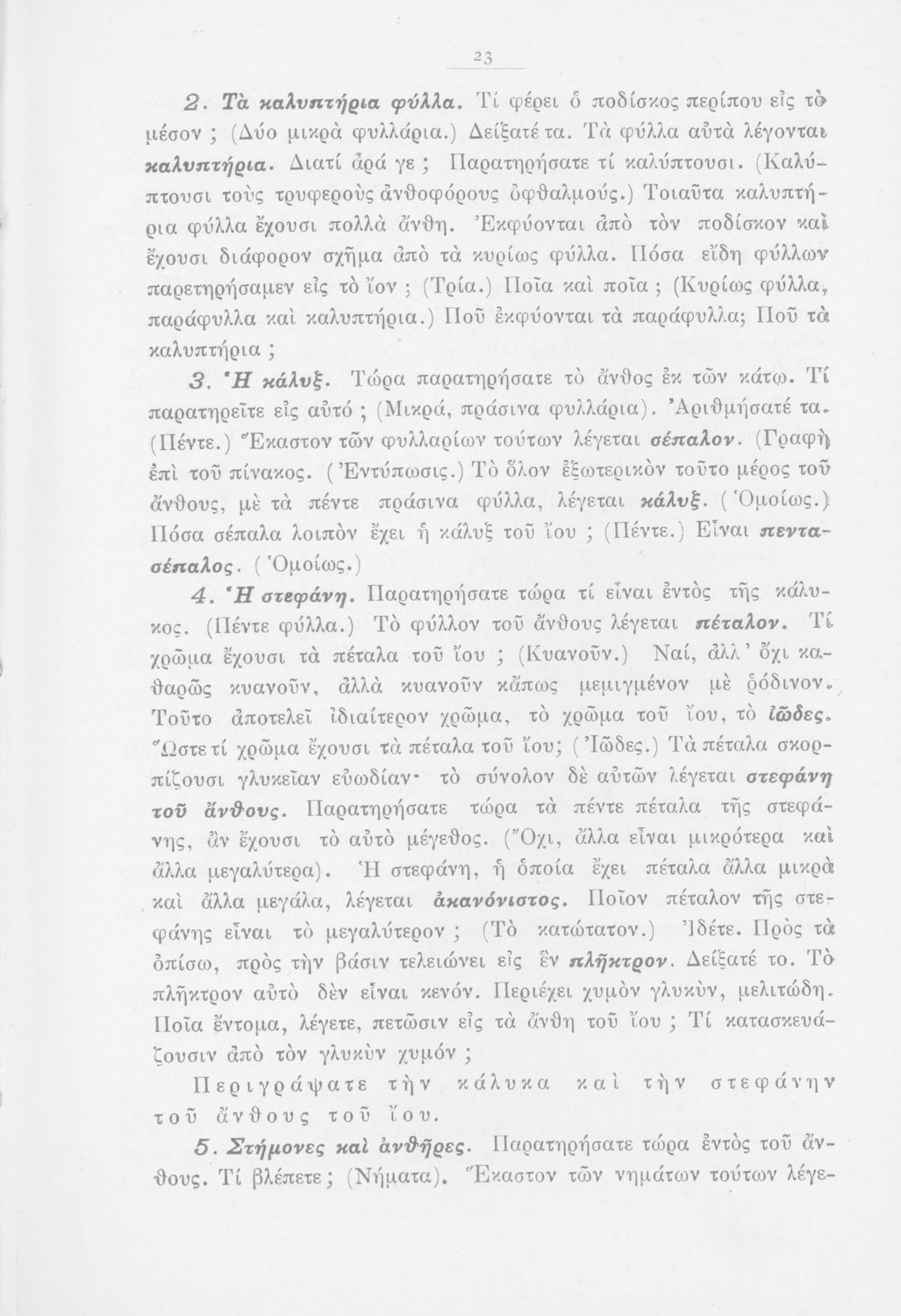 Μάθημα: Φυτολογία Γλώσσα: Καθαρεύουσα Παρουσίαση περιεχομένου: Παιδαγωγικό βοήθημα με υποδείγματα διδασκαλίας της Φυτολογίας. Παρέχει γενικές πληροφορίες για τα φυτά που θα χρησιμοποιηθούν σε μια διηγηματική διδασκαλία και υποδείγματα διδασκαλίας στο σχολικό κήπο για παρατήρηση και πειραματισμό των μαθητών. |