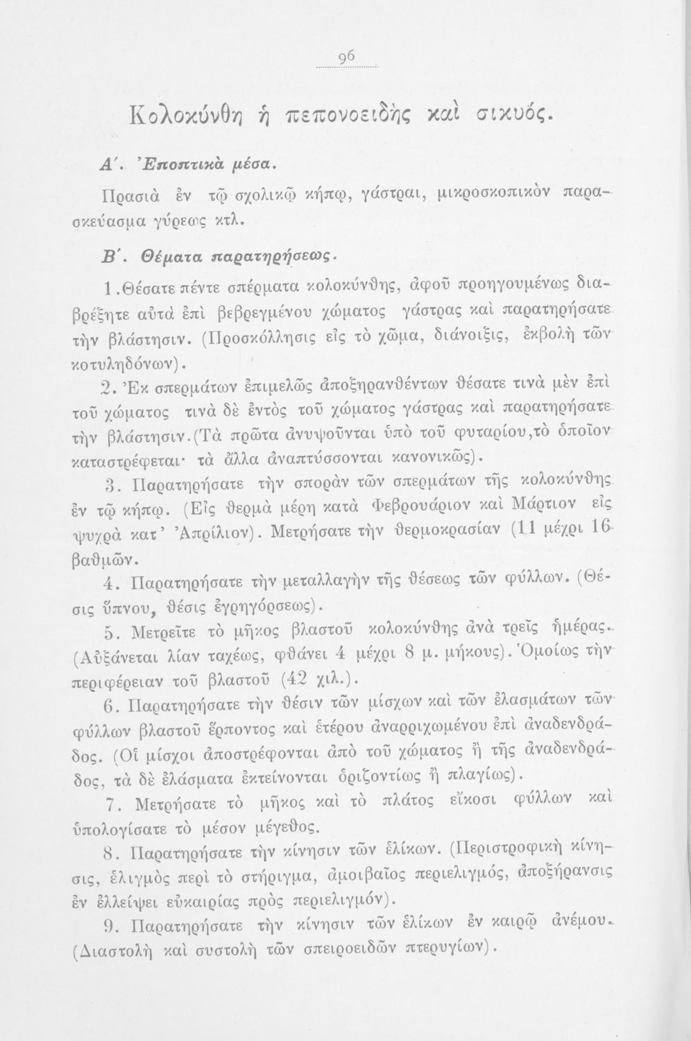 Υποδείγματα Διδασκαλίας της Φυτολογίας κατά τας βιολογικάς αρχάς και εν προσαρμογή, προς τον σχολικό κήπον