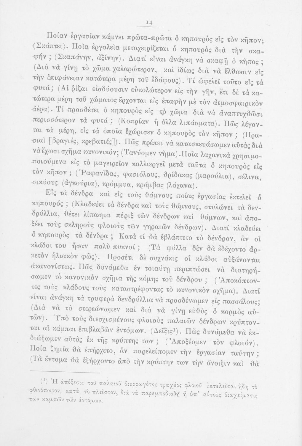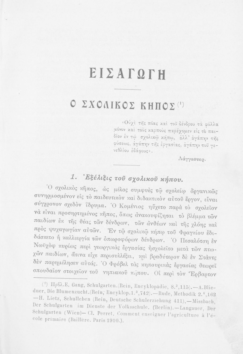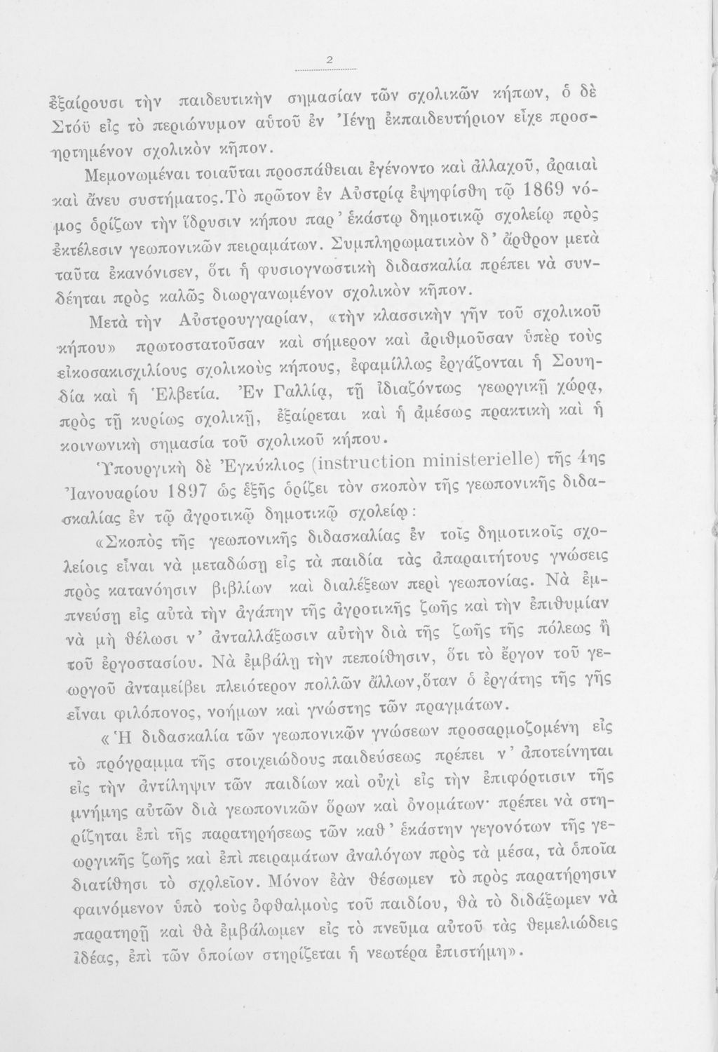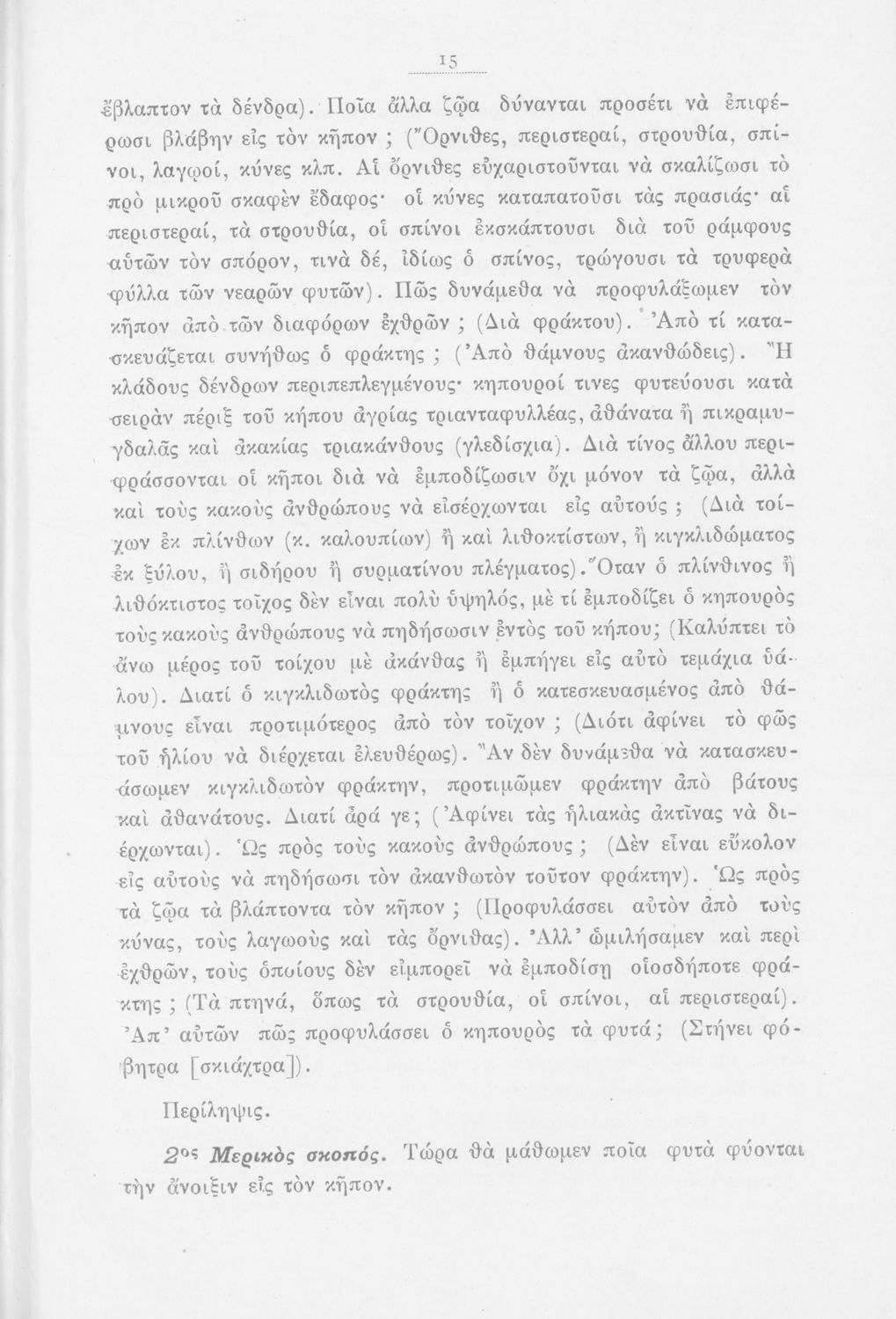 Μάθημα: Φυτολογία Γλώσσα: Καθαρεύουσα Παρουσίαση περιεχομένου: Παιδαγωγικό βοήθημα με υποδείγματα διδασκαλίας της Φυτολογίας. Παρέχει γενικές πληροφορίες για τα φυτά που θα χρησιμοποιηθούν σε μια διηγηματική διδασκαλία και υποδείγματα διδασκαλίας στο σχολικό κήπο για παρατήρηση και πειραματισμό των μαθητών. |