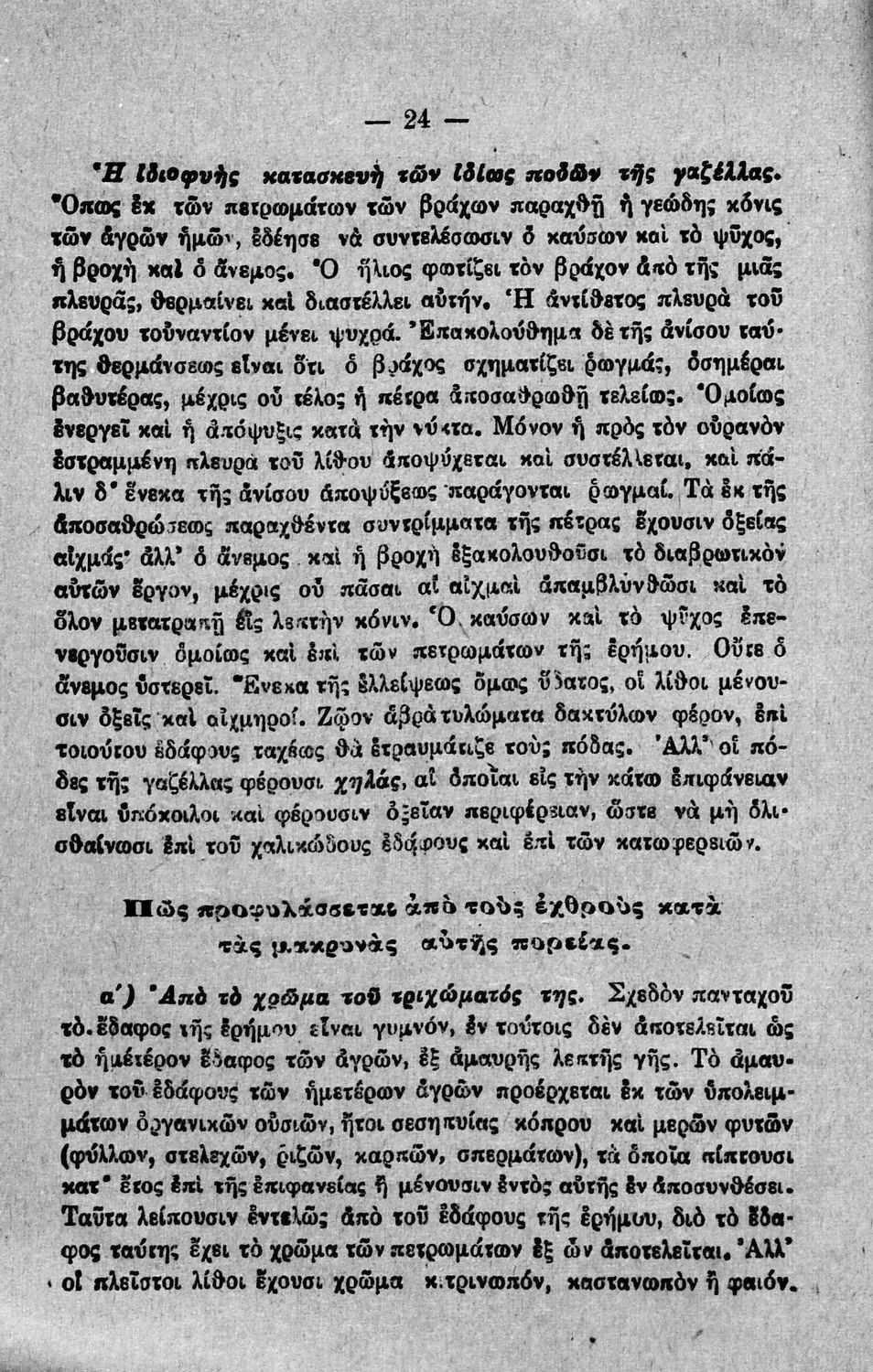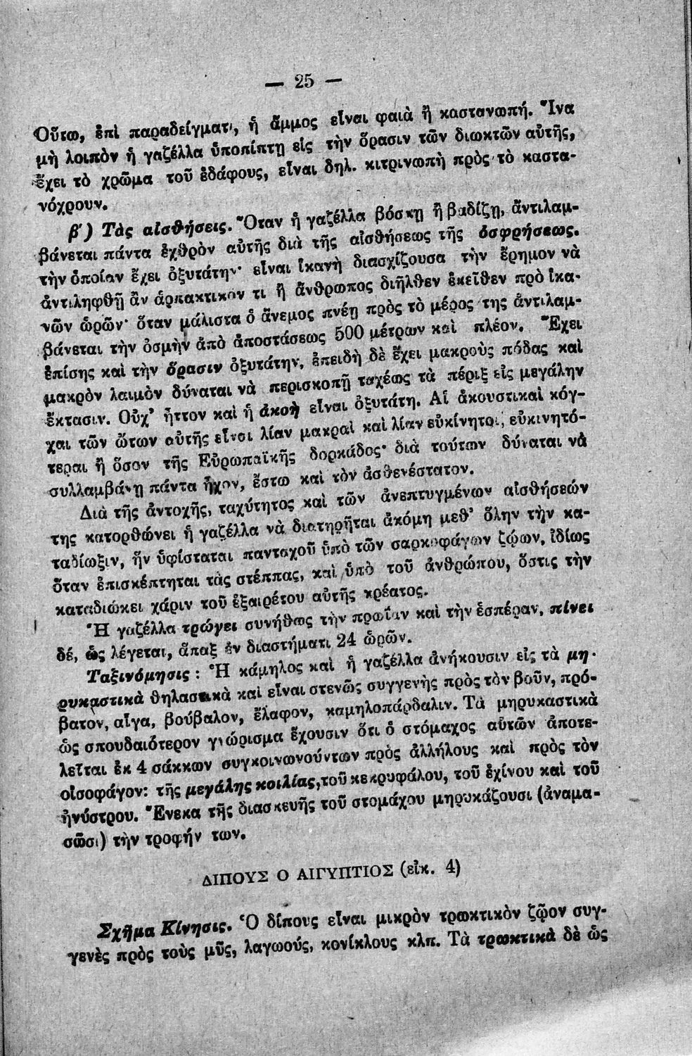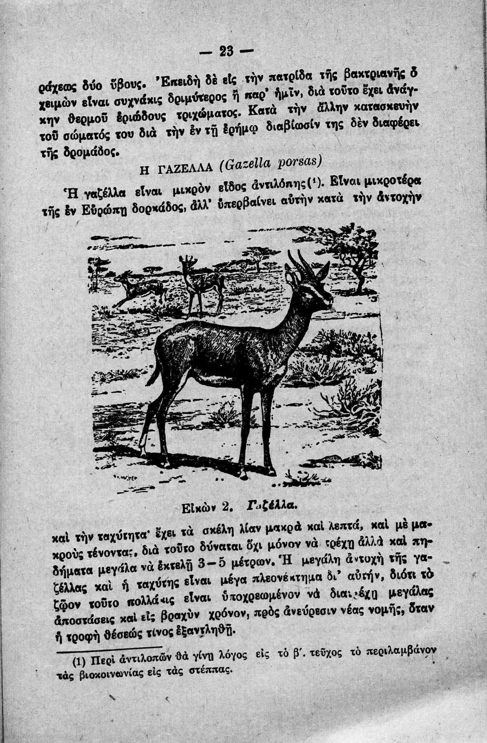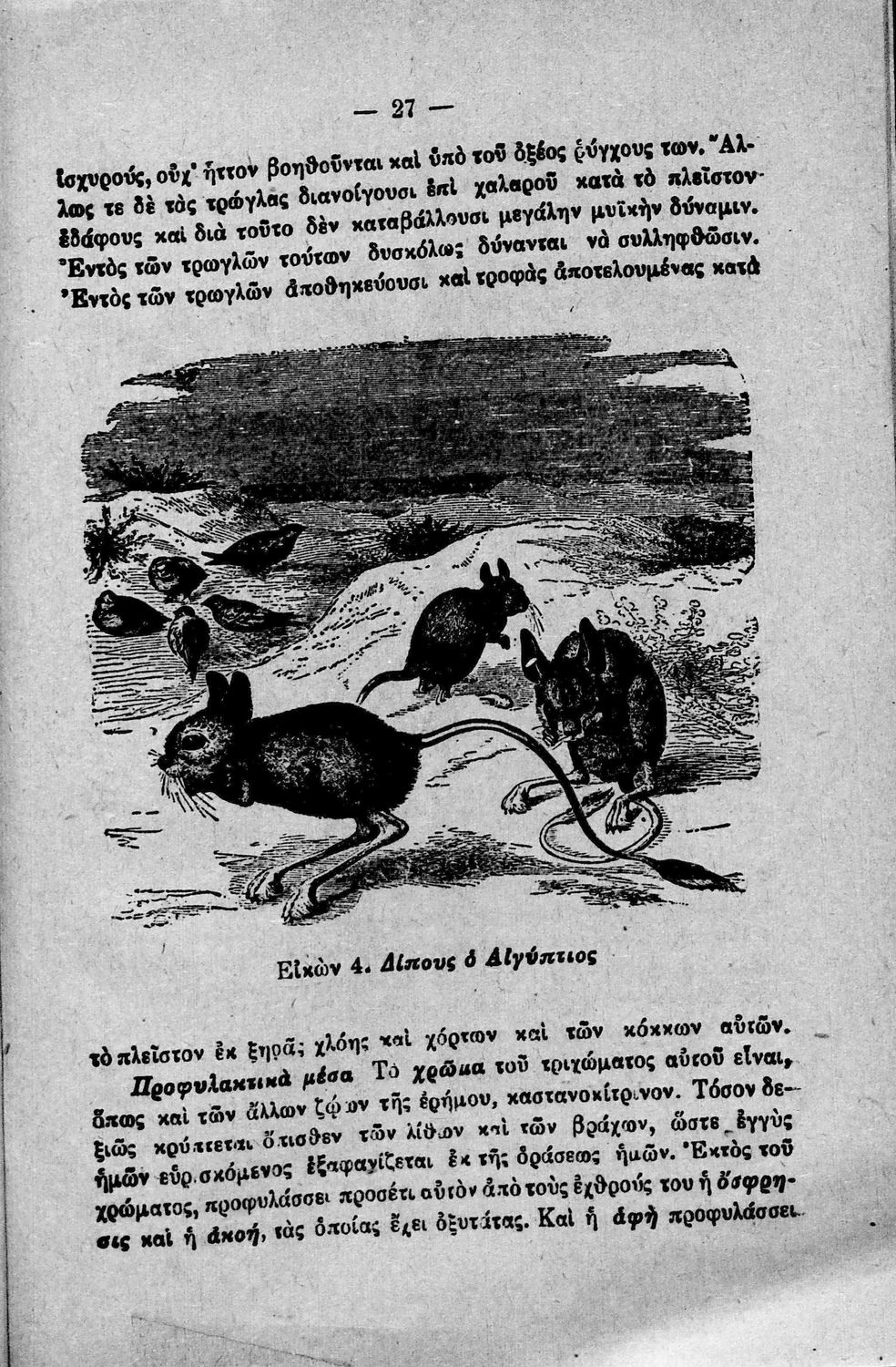 Βαθμίδα εκπαίδευσης: Πρωτοβάθμια Γλώσσα: Καθαρεύουσα Παρουσίαση περιεχομένου: Μαθητικό βοήθημα Ζωολογίας και Φυτολογίας που εστιάζει στα ζώα και τα φυτά της ερήμου. |