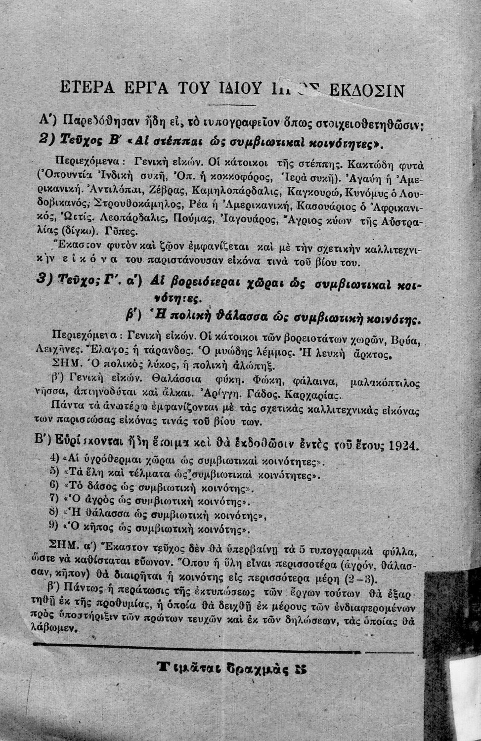 Εκδότης: Δημ. Ν. Τζάκας, Στεφ. Δελαγραμμάτικας Έτος έκδοσης: 1923 Τόπος έκδοσης: Αθήνα |