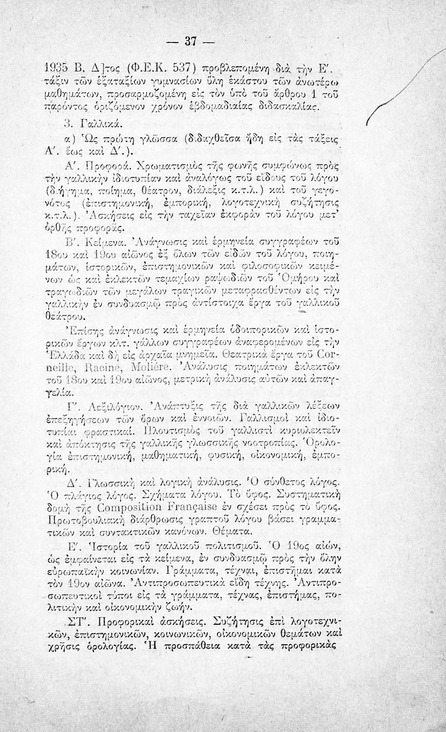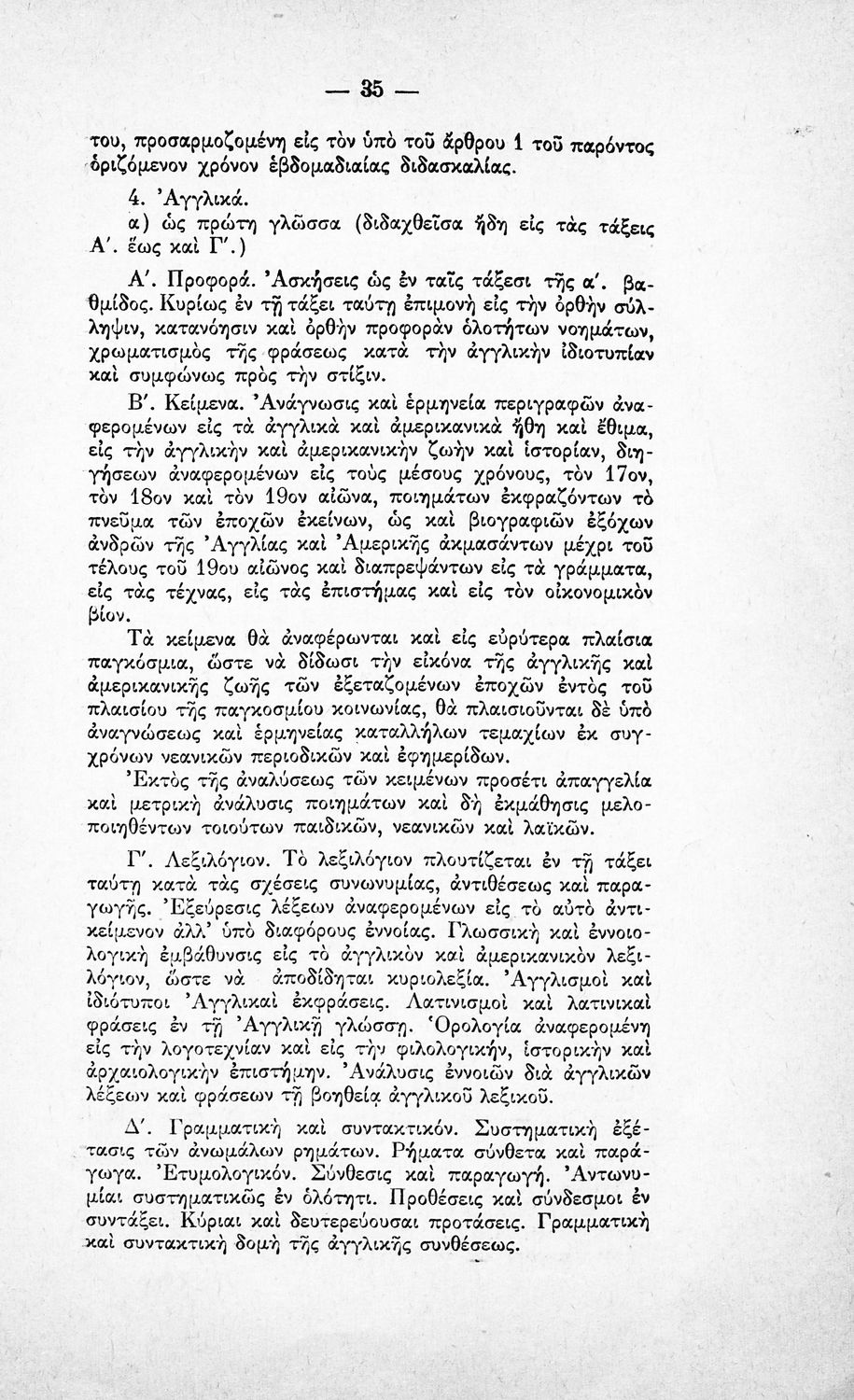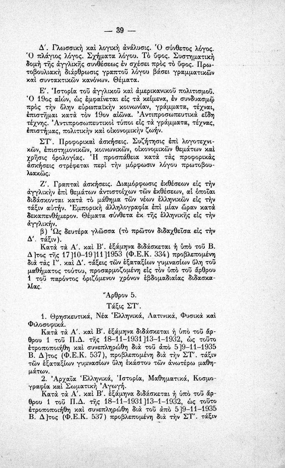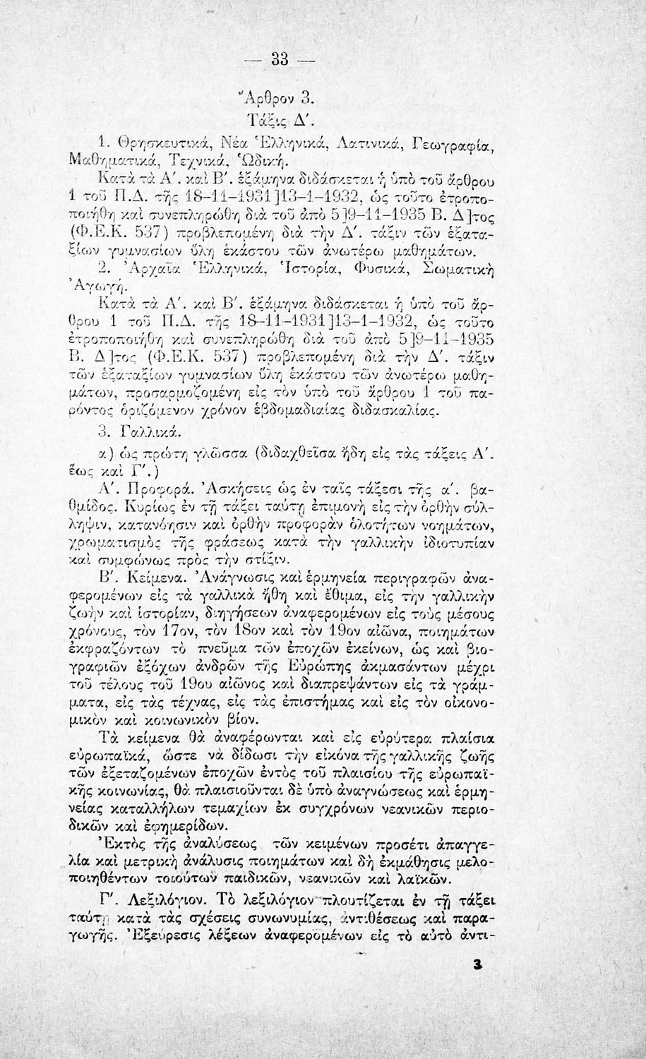Βαθμίδα εκπαίδευσης: Δευτεροβάθμια Τάξη: Α' Γυμνασίου / Β' Γυμνασίου / Γ' Γυμνασίου Γλώσσα: Καθαρεύουσα Παρουσίαση περιεχομένου: Έκδοση του Υπουργείου Παιδείας και Θρησκευμάτων που περιλαμβάνει το αναλυτικό και ωρολόγιο πρόγραμμα για τις Α΄, Β΄ και Γ΄ Γυμνασίου. |