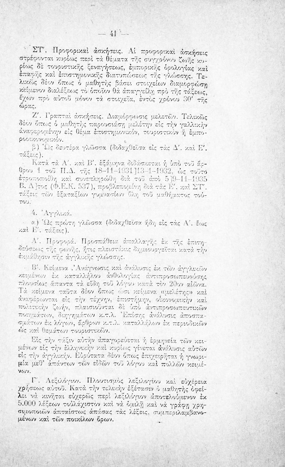 Έκδοση του Υπουργείου Εθνικής Οικονομίας που περιλαμβάνει το αναλυτικό πρόγραμμα των μαθημάτων που διδάσκονταν στις μεσαίες τάξεις των εμπορικών σχολών.