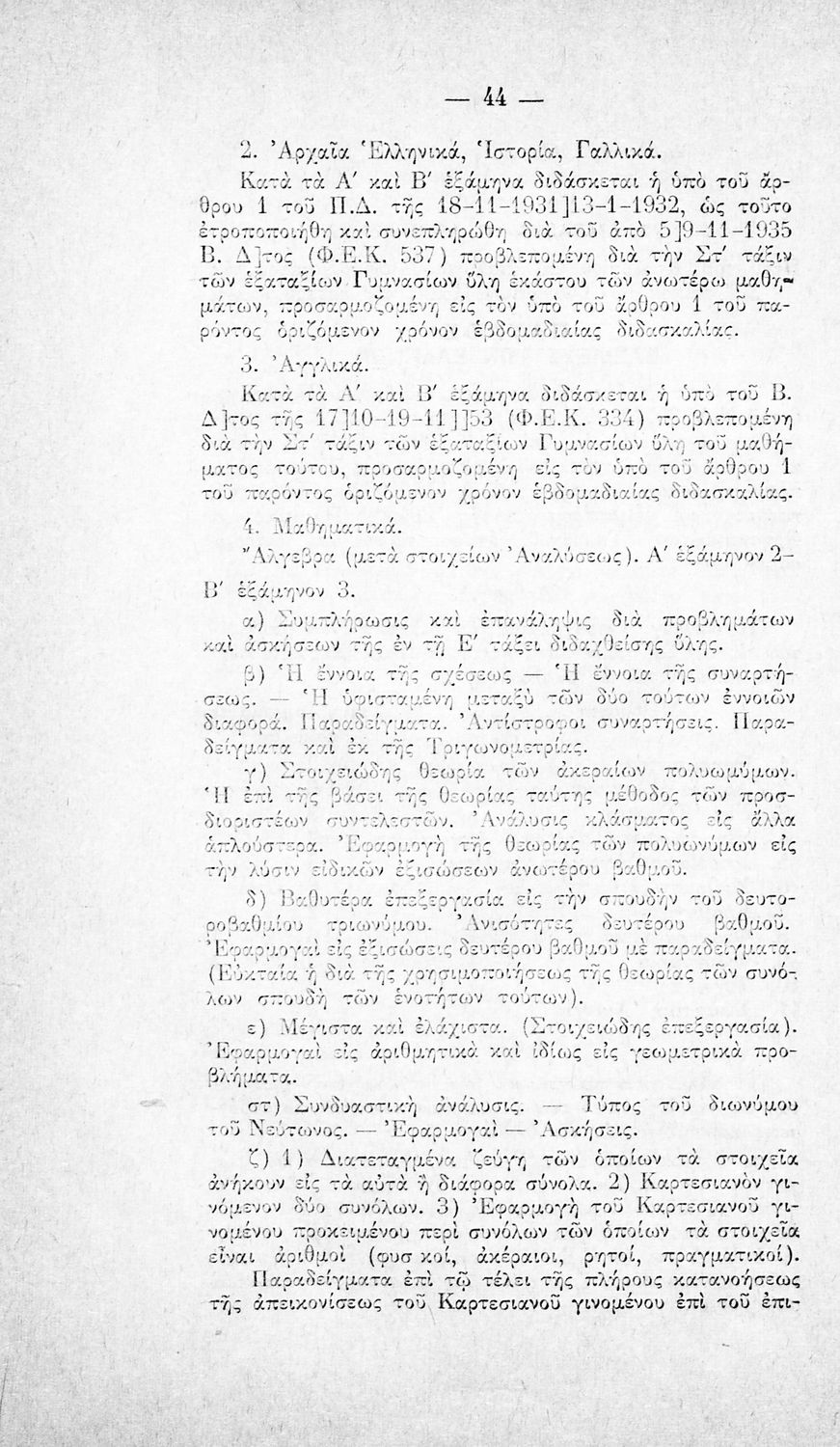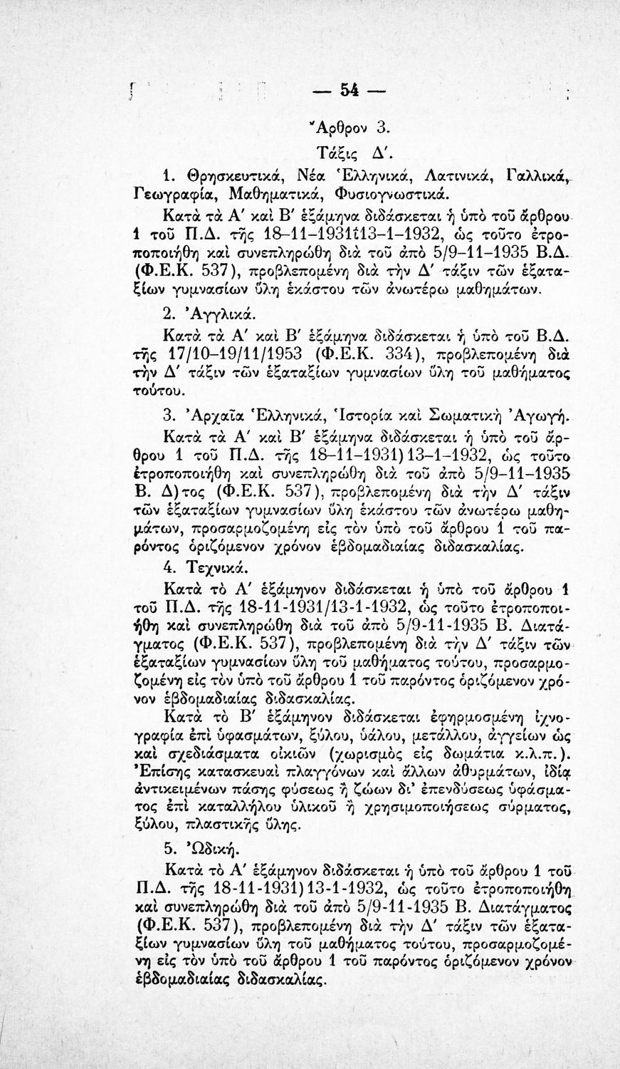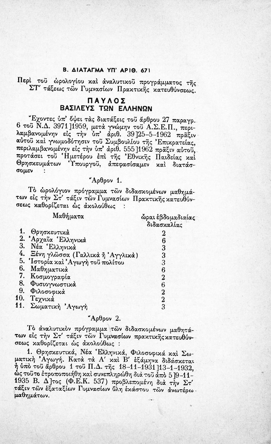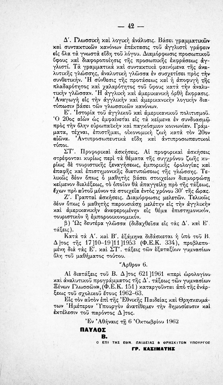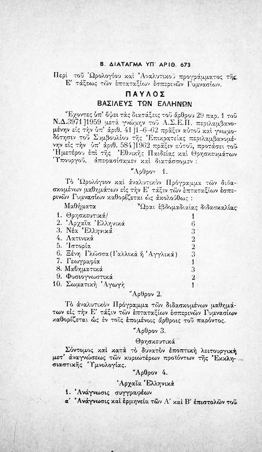 Έκδοση του Υπουργείου Παιδείας και Θρησκευμάτων που περιλαμβάνει τα ωρολόγια και αναλυτικά προγράμματα για τις τάξεις του Γυμνασίου και τις δύο κατώτερες τάξεις Πρακτικών Λυκείων.