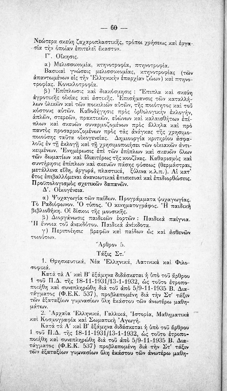Αναλυτικό πρόγραμμα για την Πρωτοβάθμια Εκπαίδευση που αναφέρεται σε πολυτάξια δημοτικά, διτάξια και μονοτάξια Δημοτικά Σχολεία αρρένων και θηλέων.
