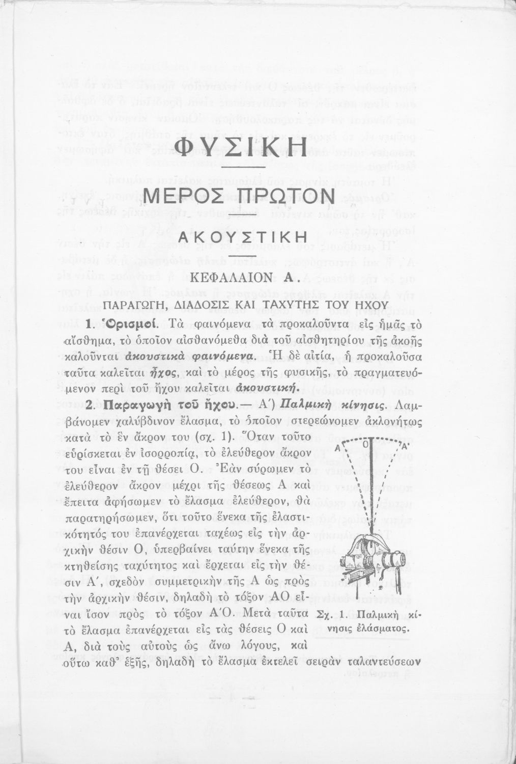 Βαθμίδα εκπαίδευσης: Δευτεροβάθμια Τάξη: ΣΤ' Γυμνασίου Μάθημα: Φυσική Γλώσσα: Καθαρεύουσα Παρουσίαση περιεχομένου: Σχολικό εγχειρίδιο της ΣΤ΄ Γυμνασίου για το μάθημα της Φυσικής. Αναλύει τα φυσικά φαινόμενά, τις μονάδες μέτρησης, τη μηχανική, τη κινητική, τη στατική, τη δυναμική, την υδροστατική την αεροστατική και τις εφαρμογές της, τη θερμότητα κ.α. |