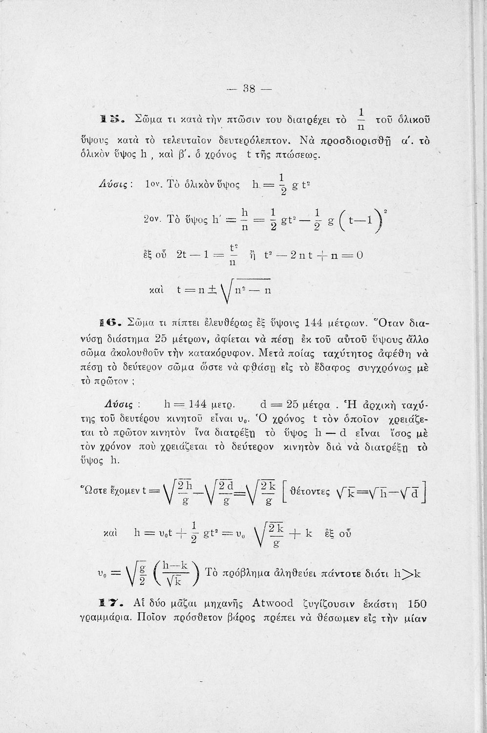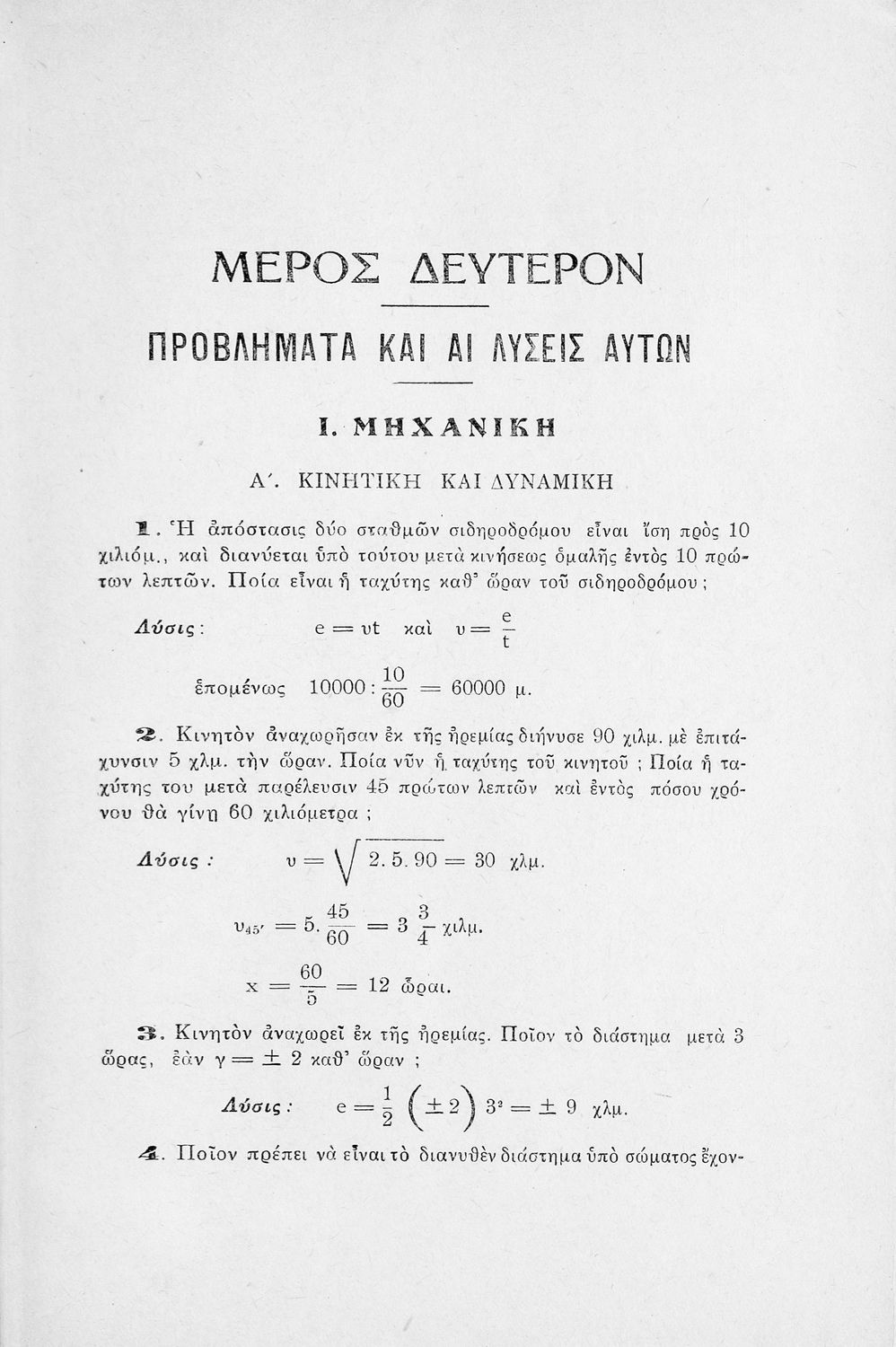 Προβλήματα Φυσικής και αι λύσεις αυτών προς χρήσιν των μαθητών των Πρακτικών Λυκείων των υποψηφίων του Πολυτεχνείου και των άλλων Ανωτέρων Σχολών.