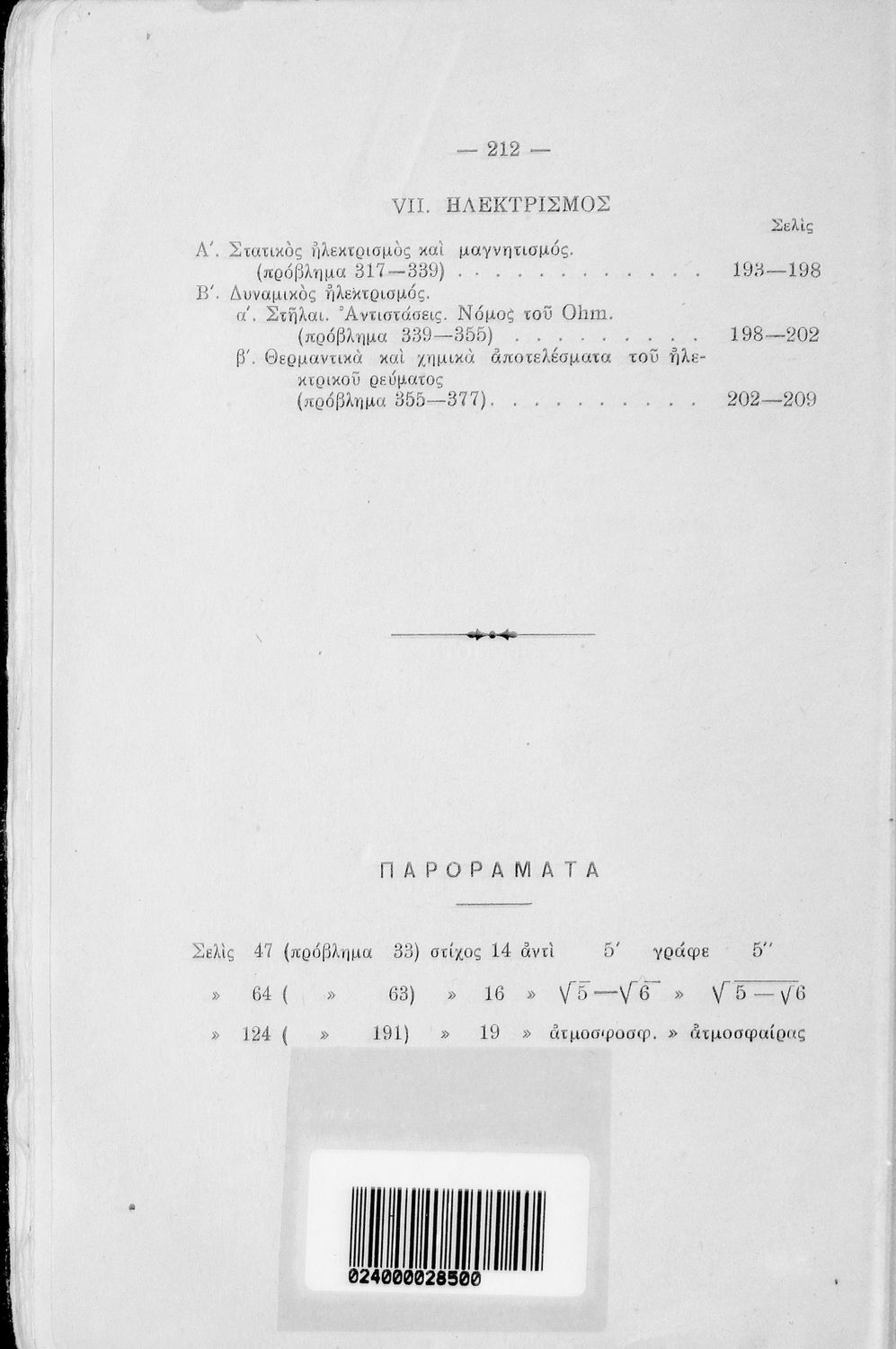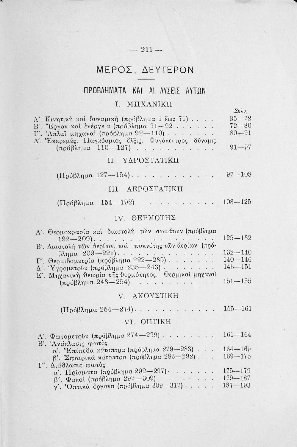 Προβλήματα Φυσικής και αι λύσεις αυτών προς χρήσιν των μαθητών των Πρακτικών Λυκείων των υποψηφίων του Πολυτεχνείου και των άλλων Ανωτέρων Σχολών.