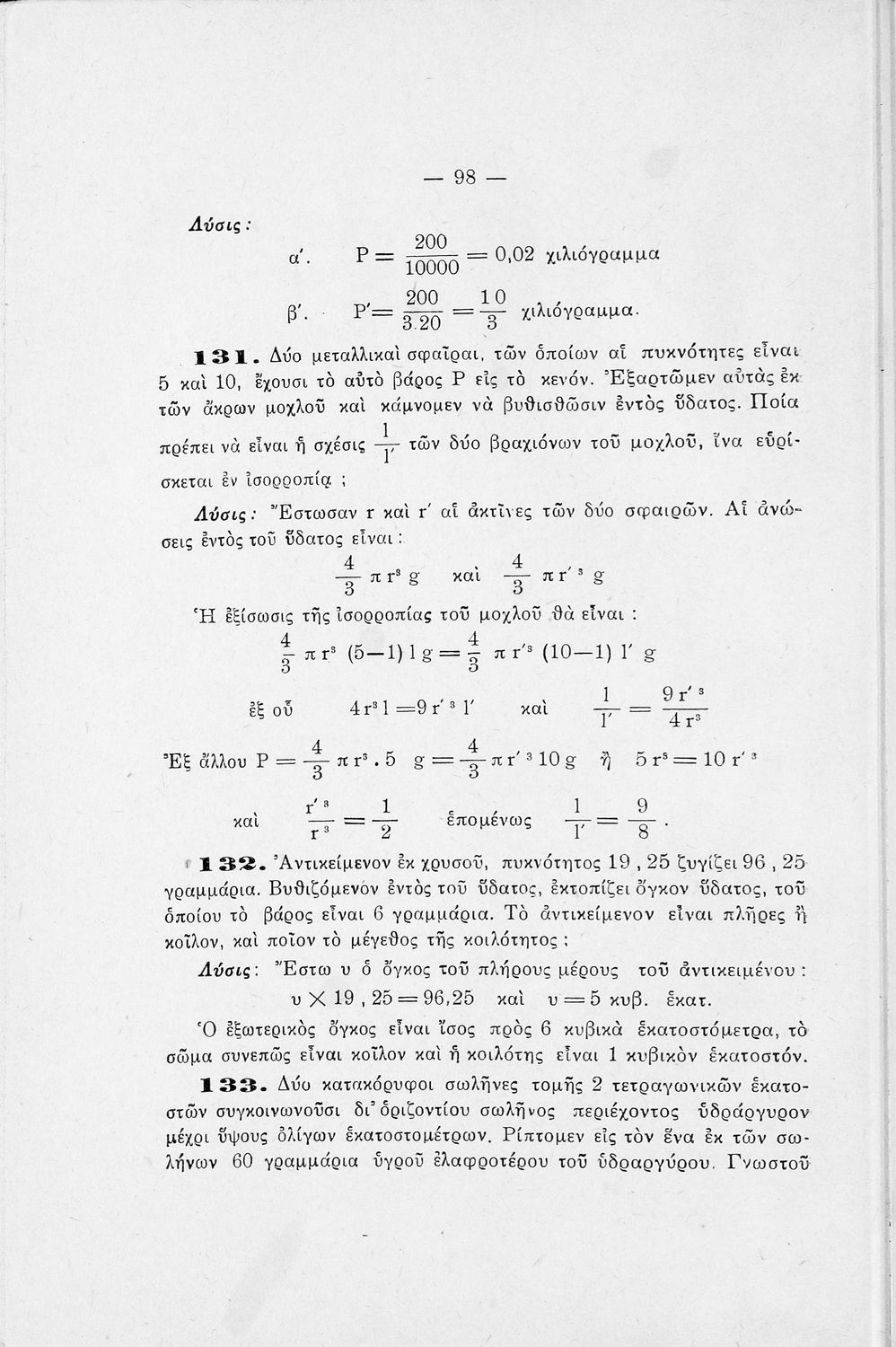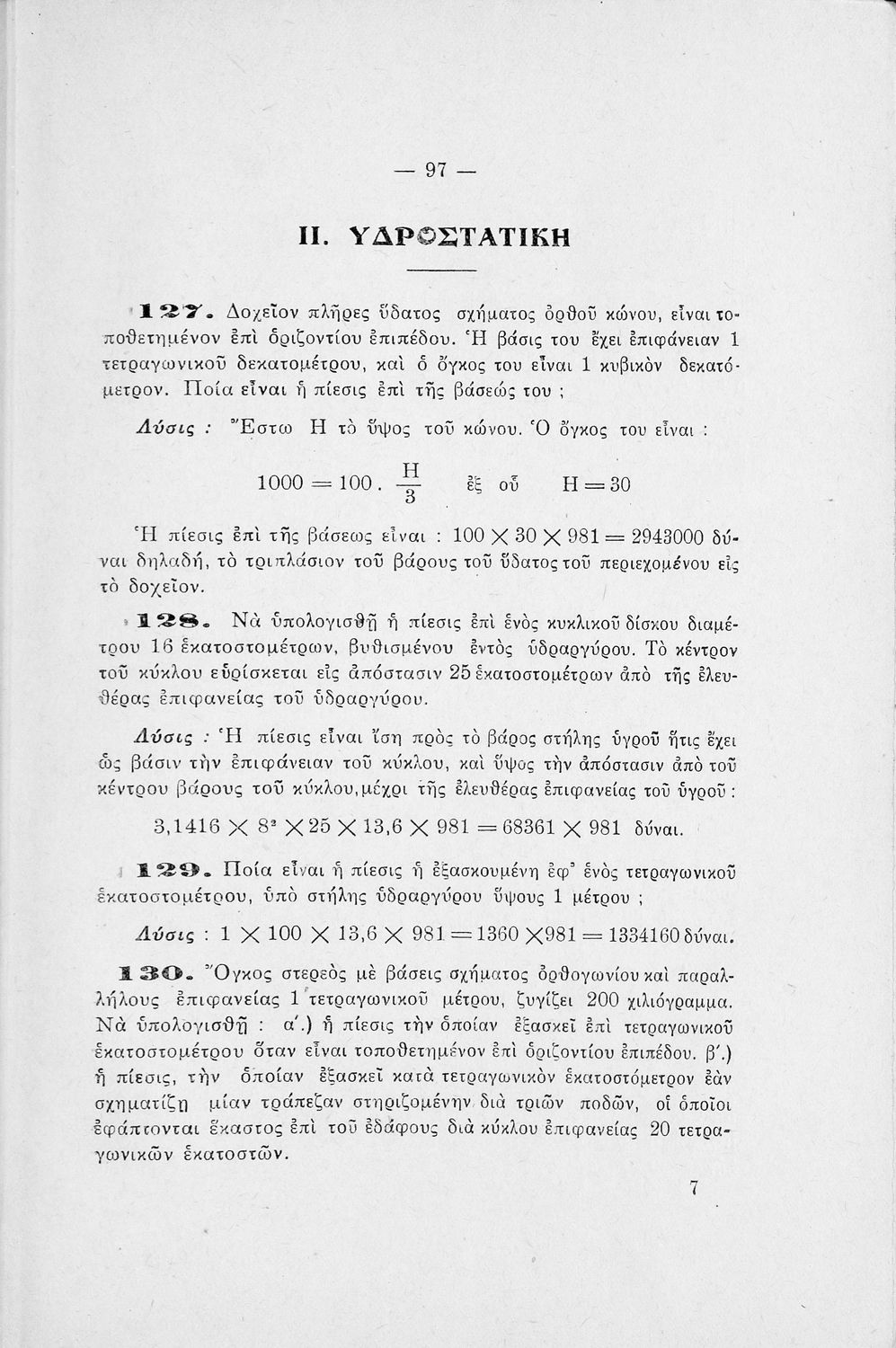Προβλήματα Φυσικής και αι λύσεις αυτών προς χρήσιν των μαθητών των Πρακτικών Λυκείων των υποψηφίων του Πολυτεχνείου και των άλλων Ανωτέρων Σχολών.