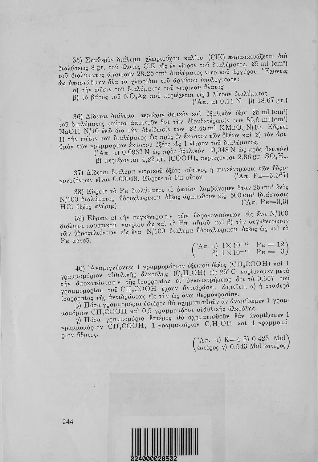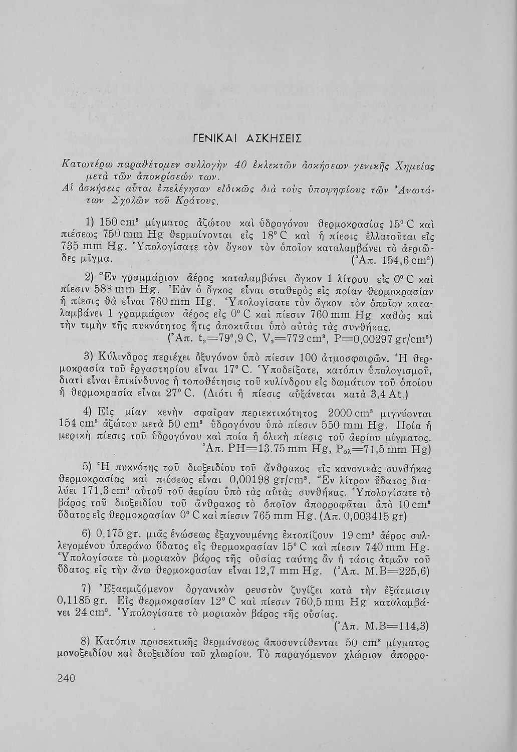 Μαθητικό βοήθημα για τους υποψηφίους των εισαγωγικών εξετάσεων των Ανωτάτων Σχολών και των μαθητών των ανωτέρων τάξεων των Σχολείων Μέσης Εκπαιδεύσεως. Το βιβλίο περιέχει λύσεις ασκήσεων ανόργανης και ...
