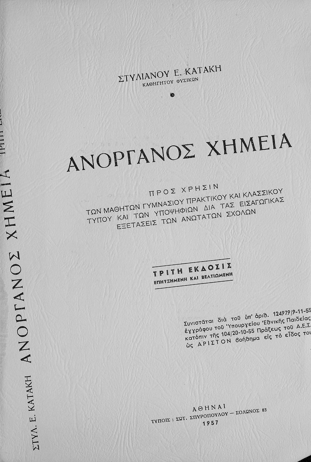 Ανόργανος Χημεία προς χρήσιν των μαθητών Γυμνασίου Πρακτικού και Κλασσικού τύπου και των υποψηφίων δια τας εισαγωγικάς εξετάσεις των Ανωτάτων Σχολών