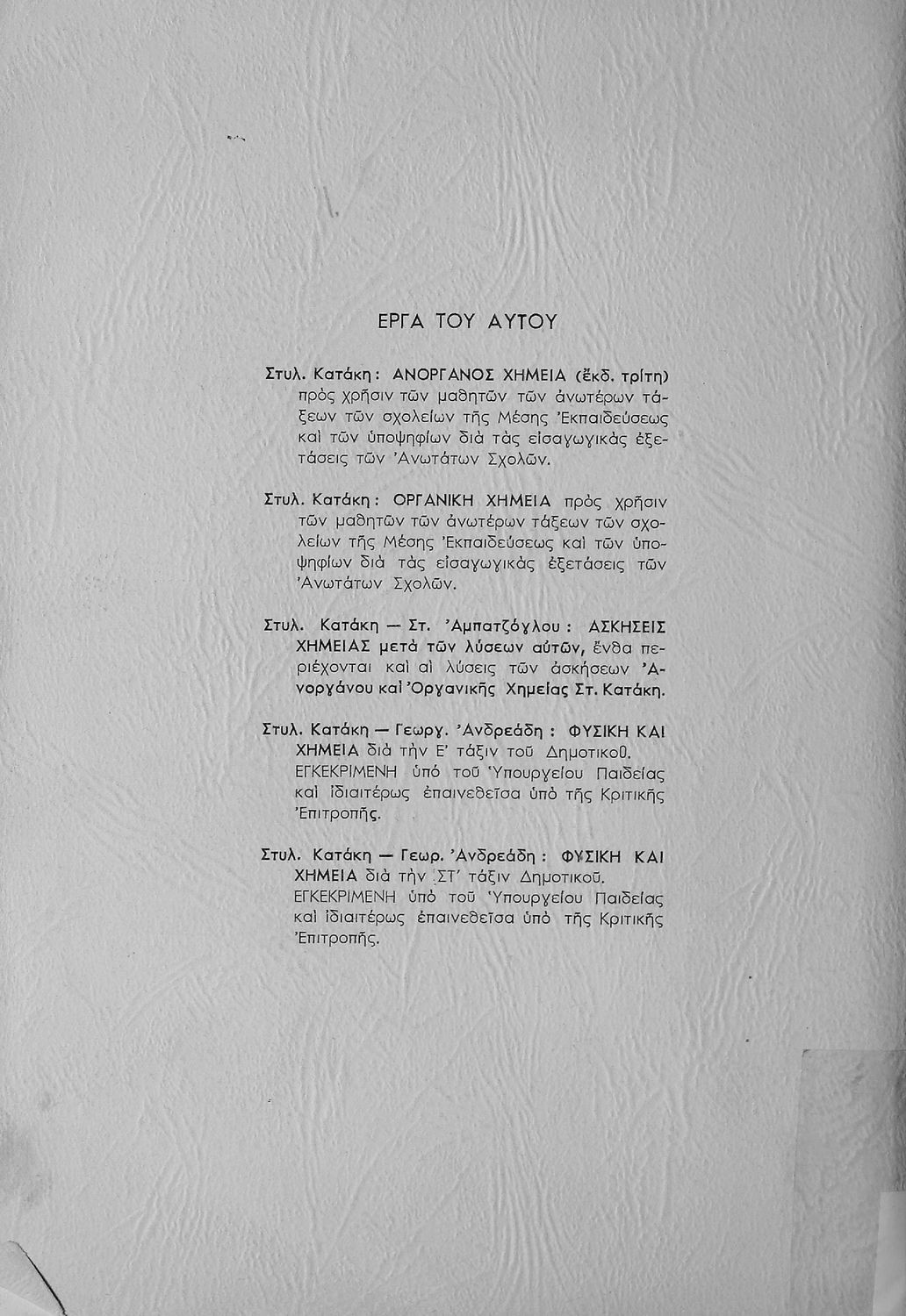 Μαθητικό βοήθημα Χημείας για τους υποψηφίους των εισαγωγικών εξετάσεων των ανωτάτων σχολών και των μαθητών της Ζ' τάξεως των Γυμνασίων και Πρακτικών Λυκείων. Το βιβλίο περιέχει γενικές έννοιες της Χημείας, ...