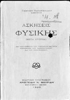 Μαθητικό βοήθημα Φυσικής για τους υποψηφίους των Ανωτάτων Σχολών και τους μαθητές των ανωτέρων τάξεων των Σχολείων Μέσης Εκπαιδεύσεως που εξετάζει ζητήματα μηχανικής, ηλεκτρισμού και ηλεκτρομαγνητισμού, και ...
