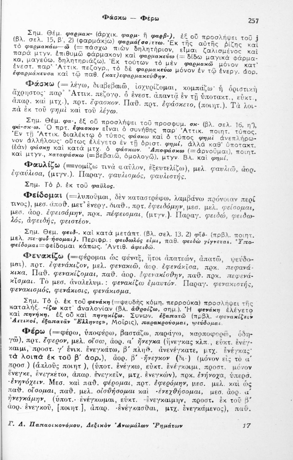 Λεξικόν Ανωμάλων ρημάτων της αρχαίας ελληνικής γλώσσης και ιδία της Αττικής διαλέκτου μετά εισαγωγής και παρατηρήσεων και εν τέλει πίνακος ανωμάλων ονομάτων προς χρήσιν των φοιτητών και των μαθητών των σχολείων της Μέσης Εκπαιδεύσεως