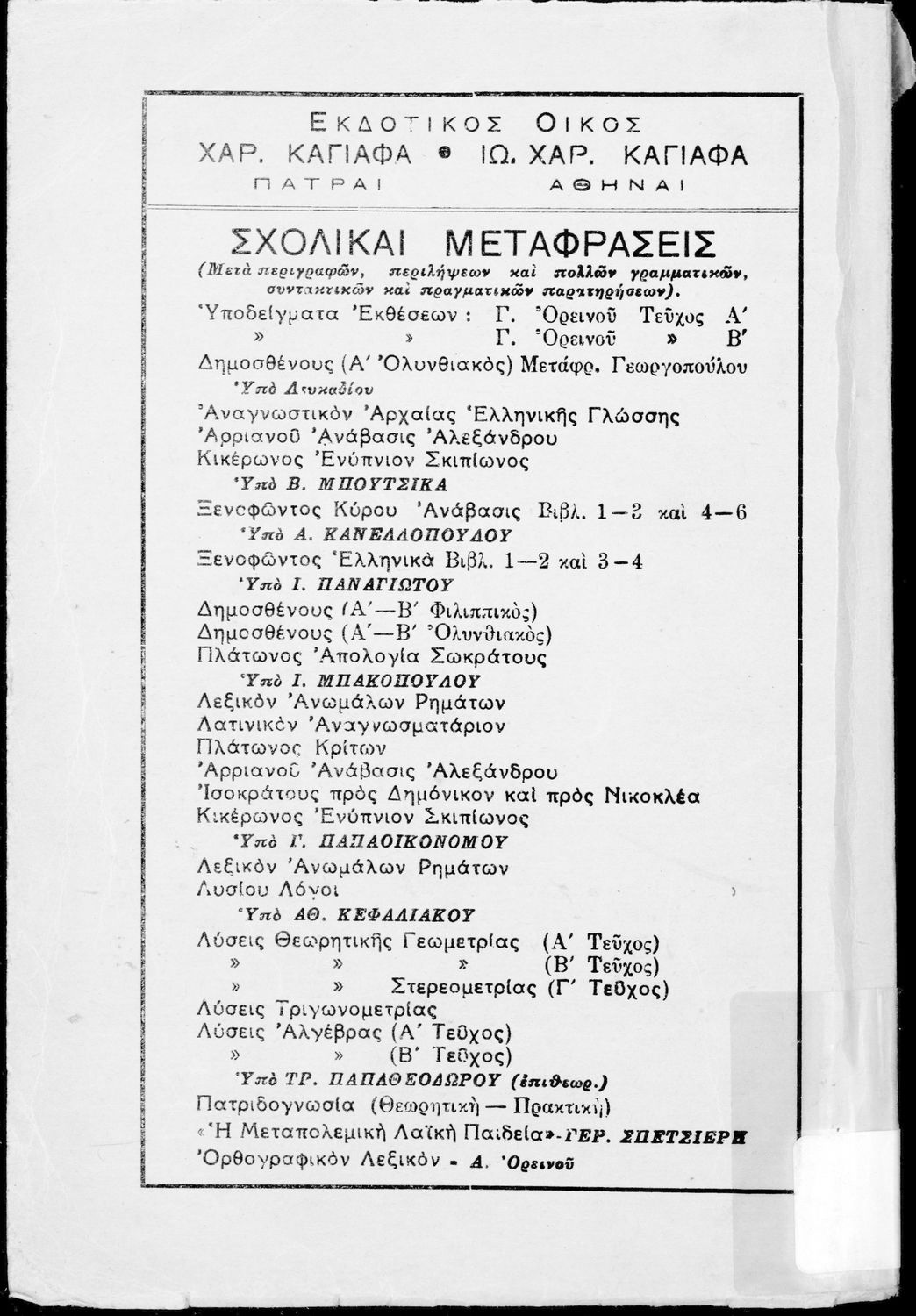 Εκδότης: Χαρ. Καγιάφας και Ιω. Καγιάφας