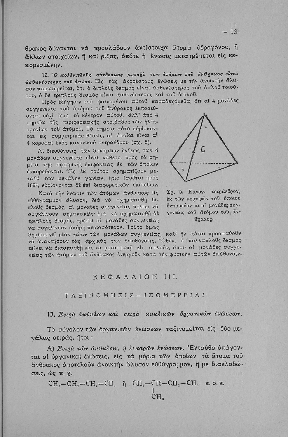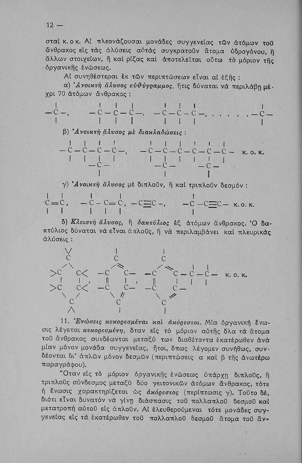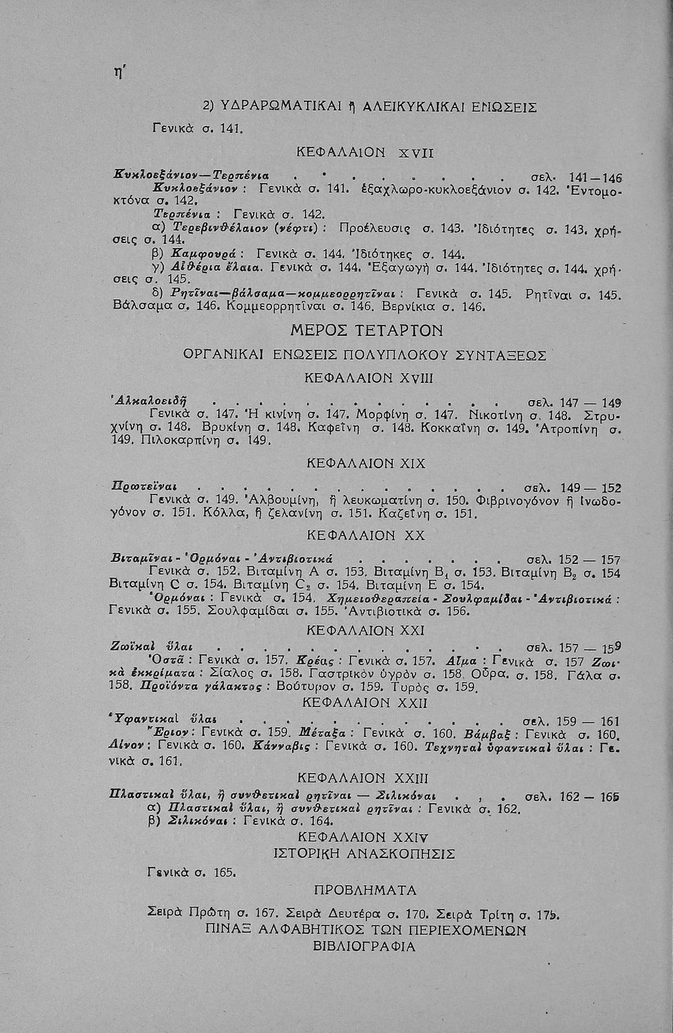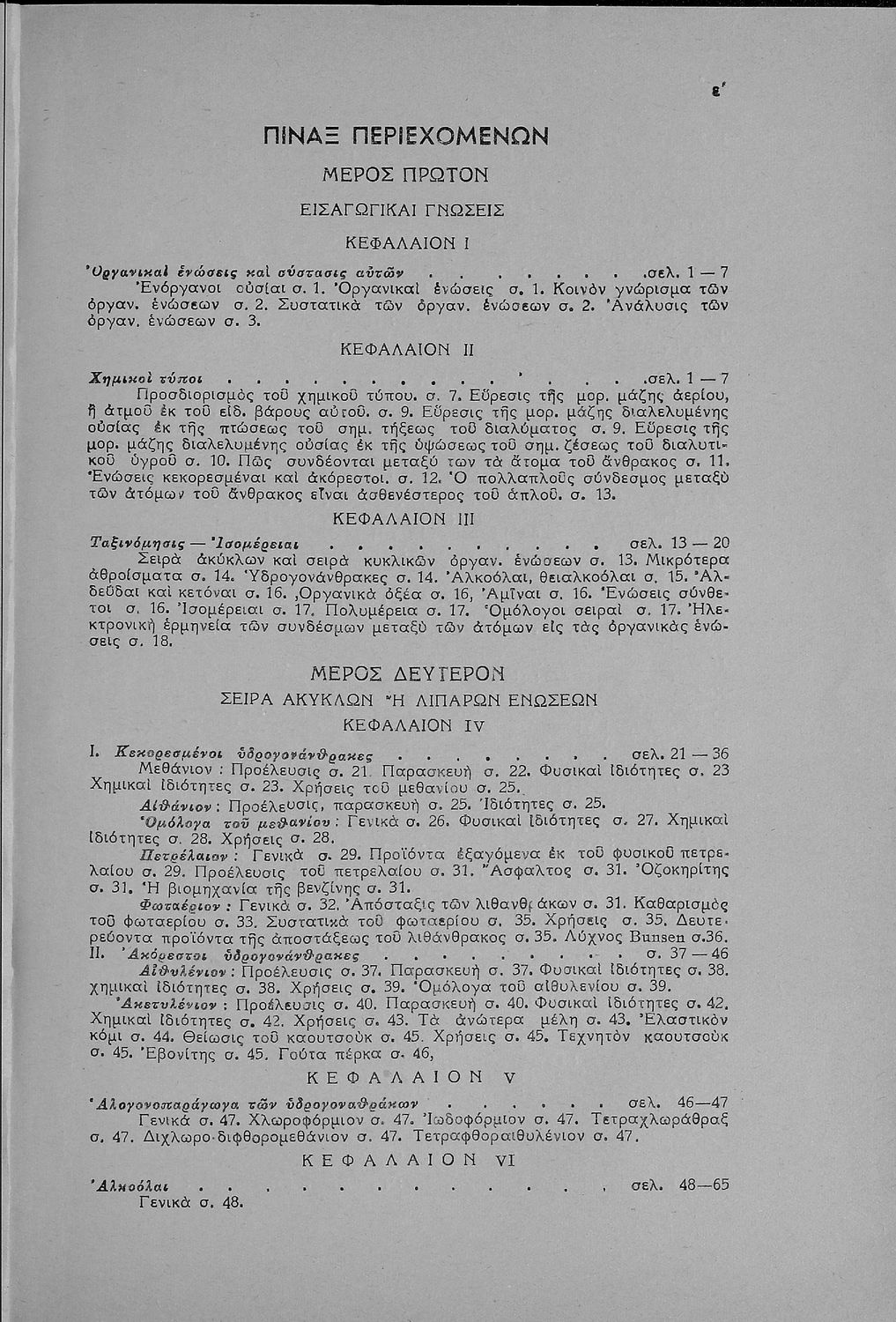Σχολικό εγχειρίδιο Χημείας που περιγράφει τις χημικές ενώσεις και τύπους των διάφορων στοιχείων. Προσδιορίζονται άκυκλες και ισοκυκλικές ενώσεις καθώς και πολύπλοκες οργανικές ενώσεις. Κάθε κεφάλαιο συνοδεύεται από ερωτήματα και ασκήσεις.
