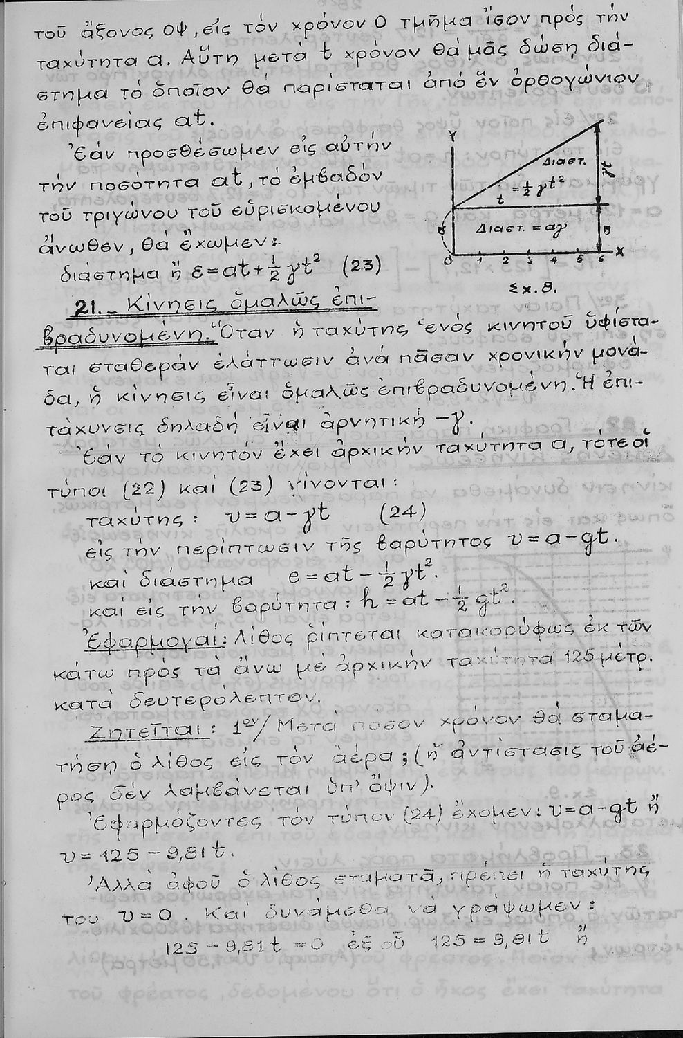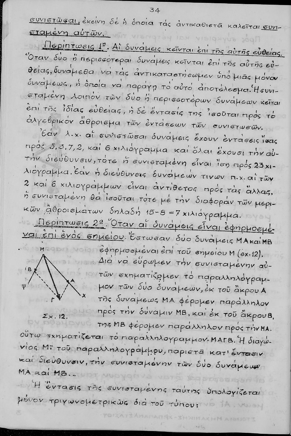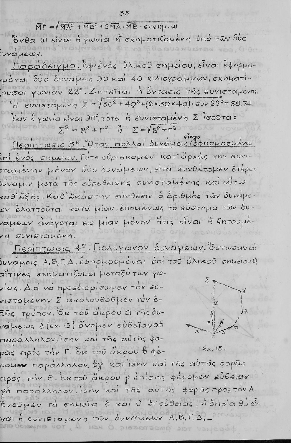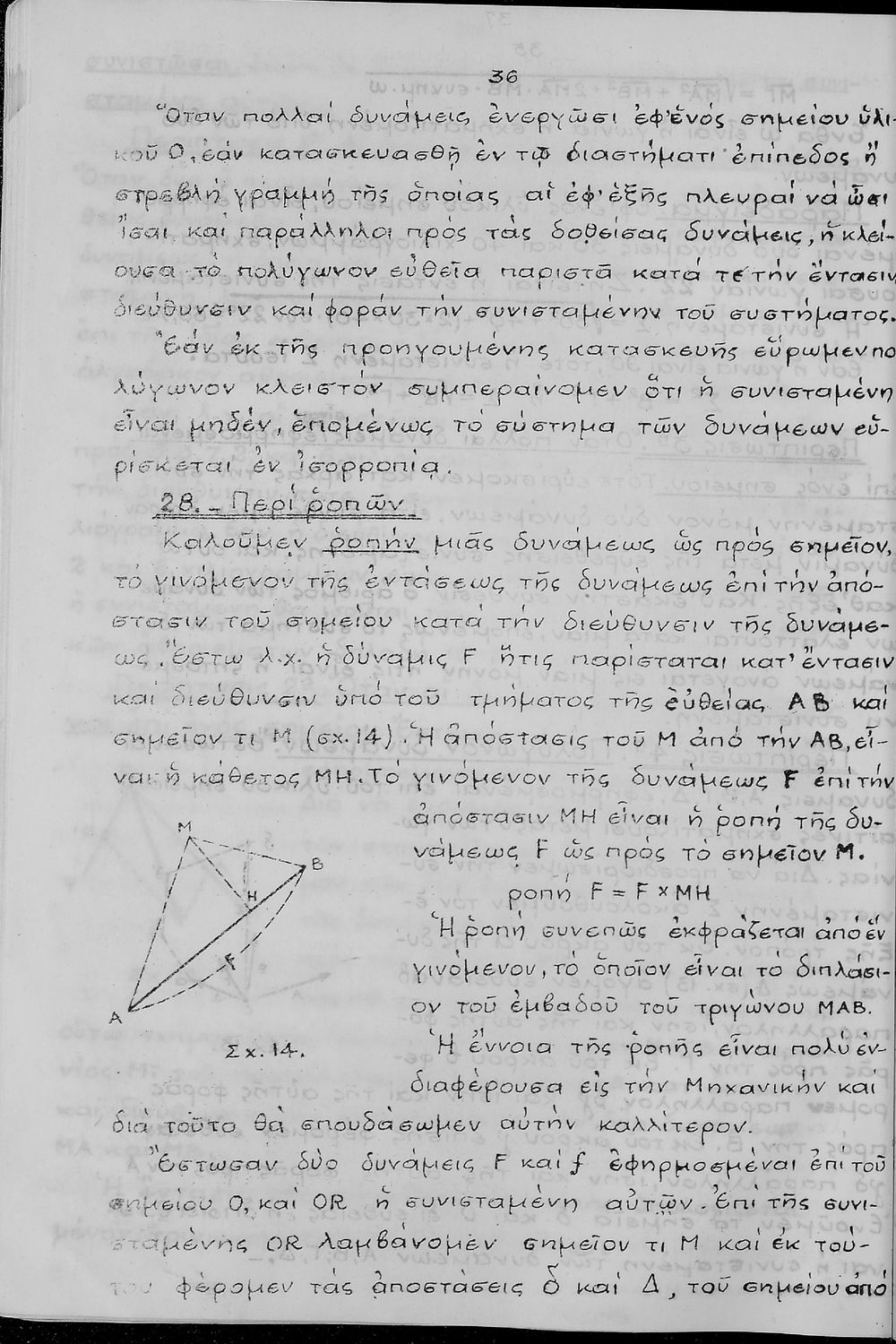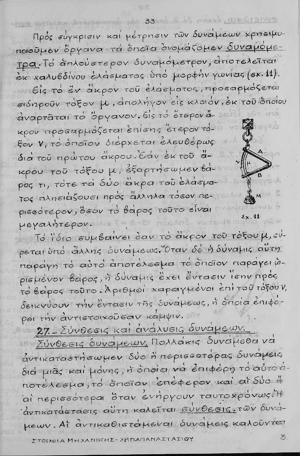 Παρουσίαση περιεχομένου: Μαθητικό βοήθημα για το μάθημα της Φυσικής. Το σύγγραμμα ήταν μελέτη του συγγραφέα από τη σχολή Μηχανικών και απευθυνόταν στους σπουδαστές. Περιλαμβάνει σημείωσες για τη μηχανική, σχετικά με τις κινήσεις, τις δυνάμεις, το βάρος, το έργο, την ισχύ, τη μάζα, τα εκκρεμή, την τριβή κ.α.