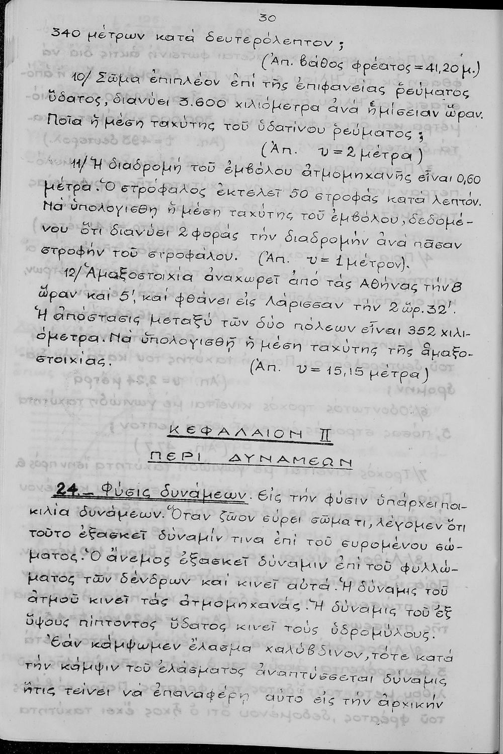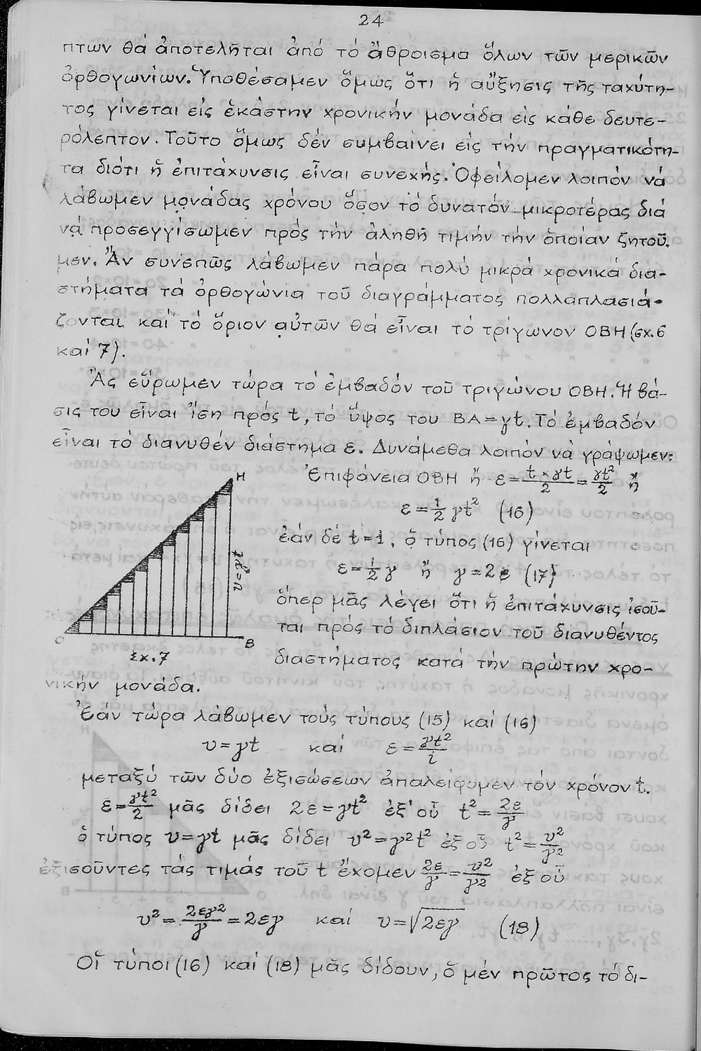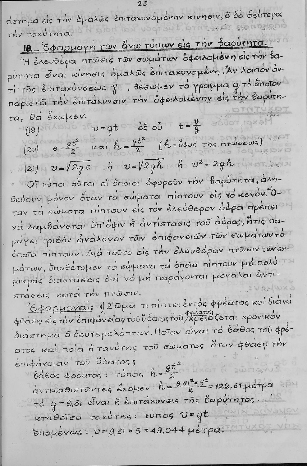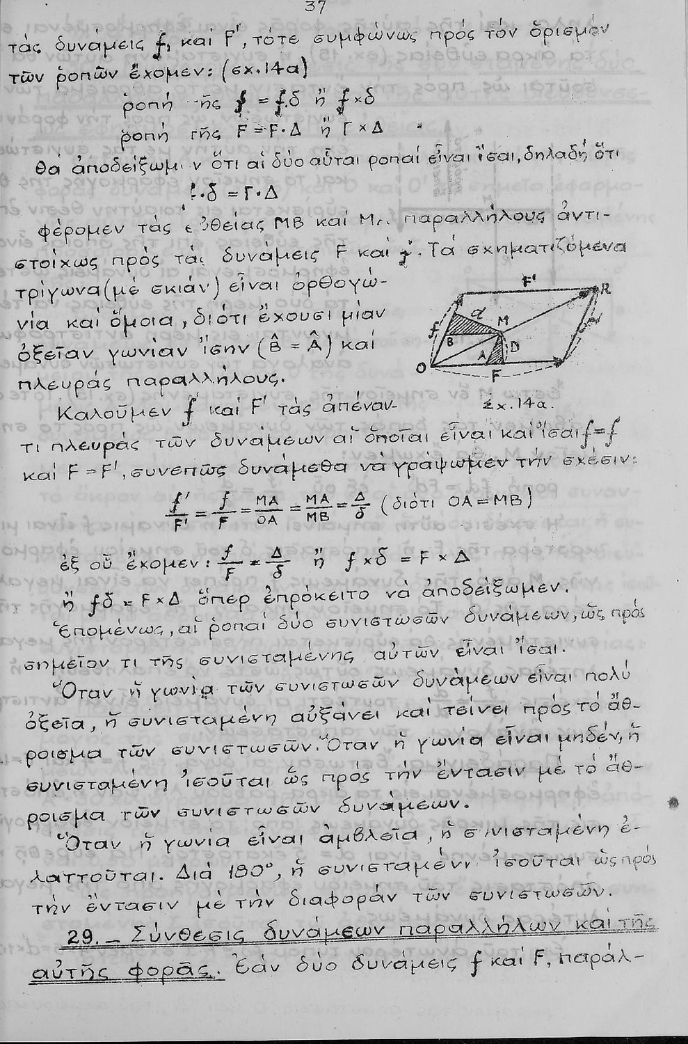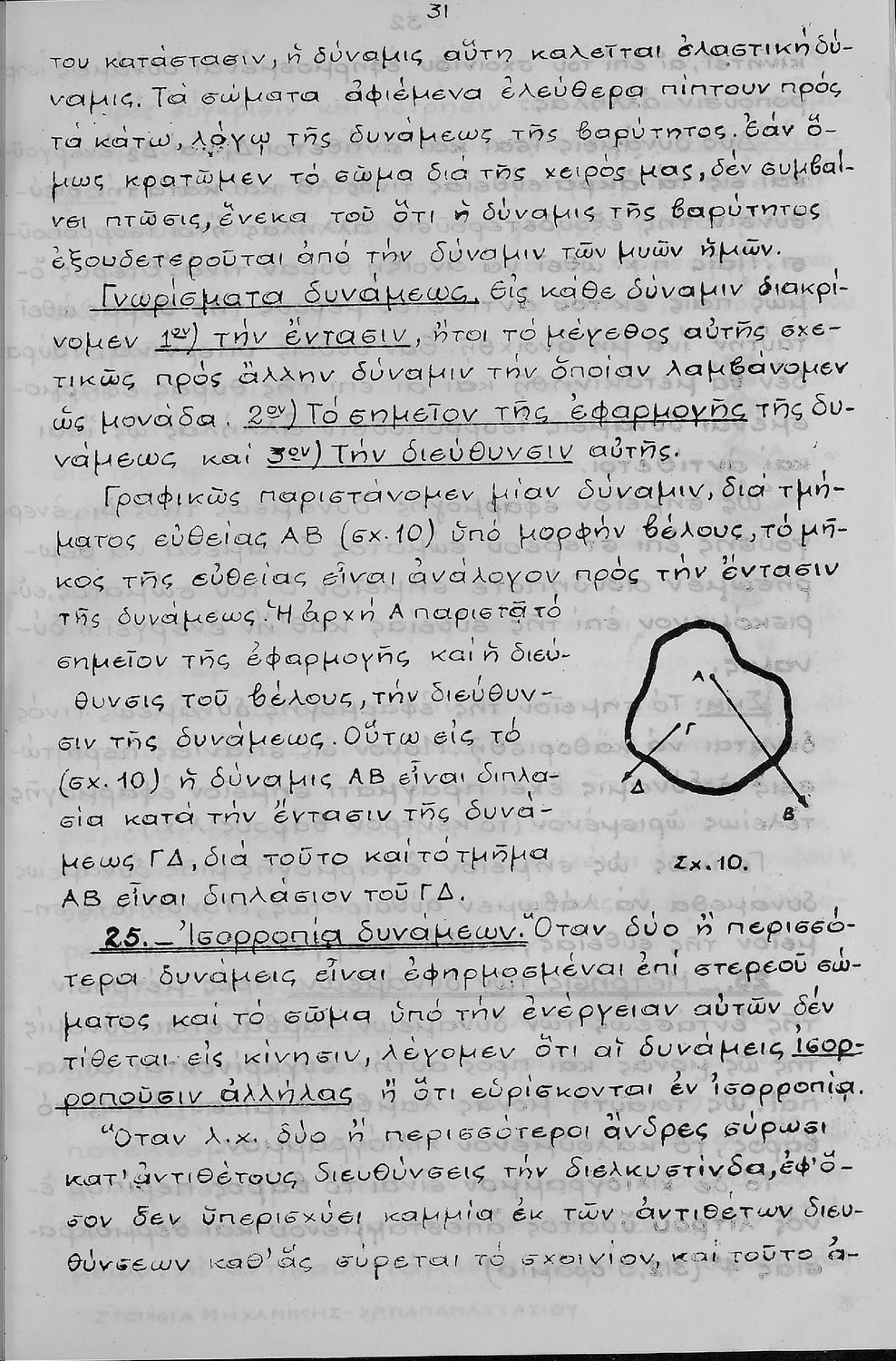 Παρουσίαση περιεχομένου: Μαθητικό βοήθημα για το μάθημα της Φυσικής. Το σύγγραμμα ήταν μελέτη του συγγραφέα από τη σχολή Μηχανικών και απευθυνόταν στους σπουδαστές. Περιλαμβάνει σημείωσες για τη μηχανική, σχετικά με τις κινήσεις, τις δυνάμεις, το βάρος, το έργο, την ισχύ, τη μάζα, τα εκκρεμή, την τριβή κ.α.