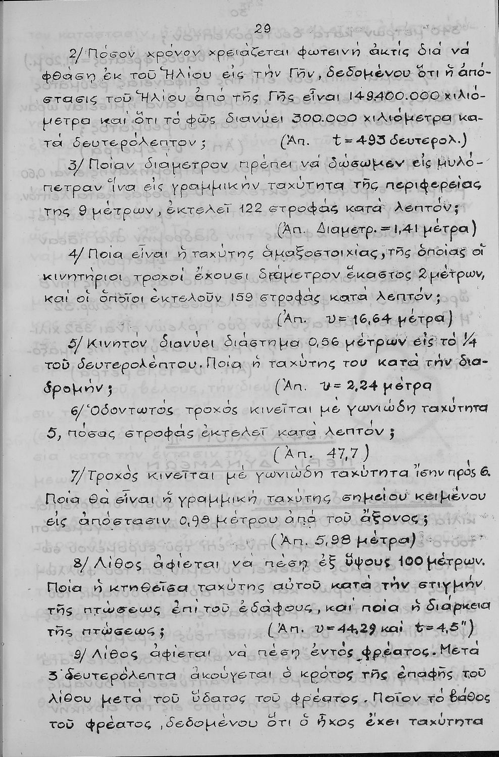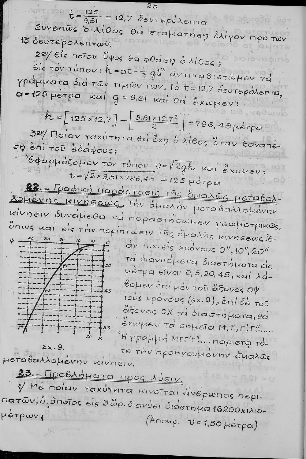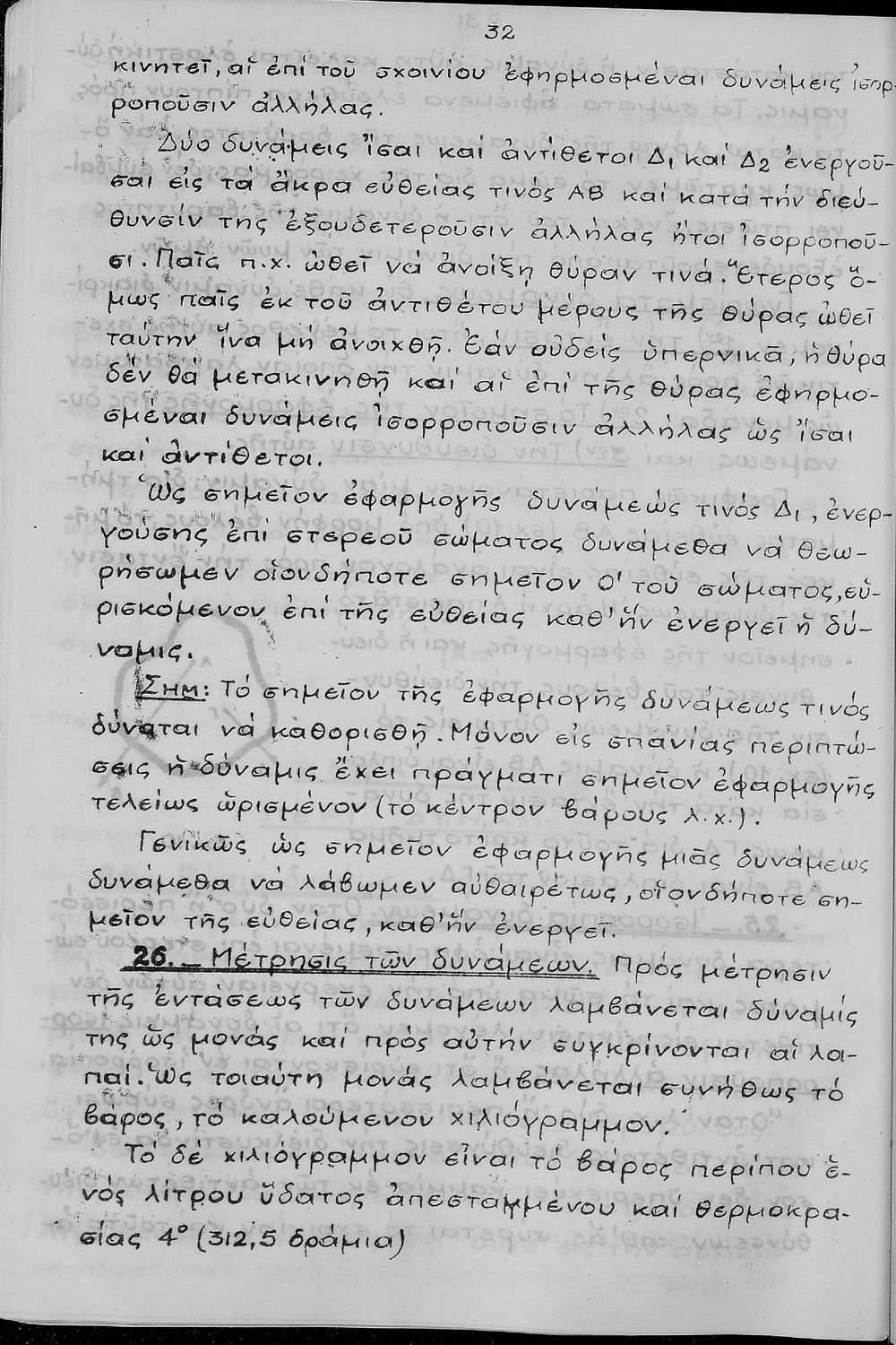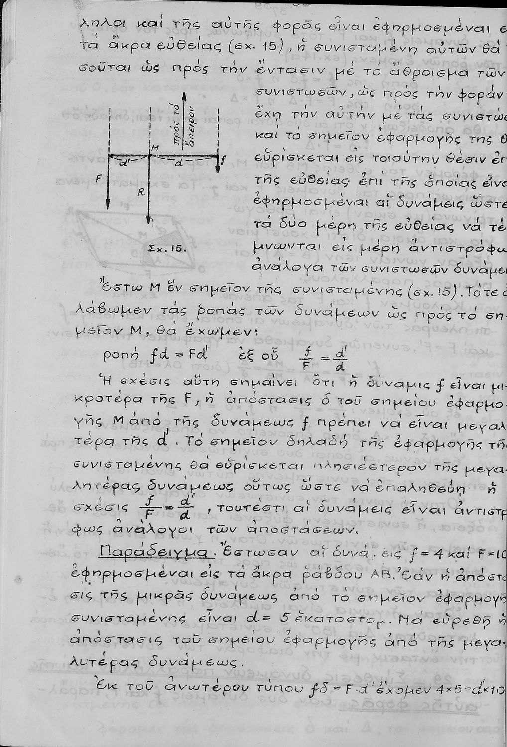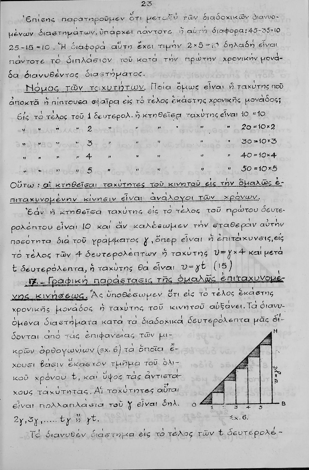 Παρουσίαση περιεχομένου: Μαθητικό βοήθημα για το μάθημα της Φυσικής. Το σύγγραμμα ήταν μελέτη του συγγραφέα από τη σχολή Μηχανικών και απευθυνόταν στους σπουδαστές. Περιλαμβάνει σημείωσες για τη μηχανική, σχετικά με τις κινήσεις, τις δυνάμεις, το βάρος, το έργο, την ισχύ, τη μάζα, τα εκκρεμή, την τριβή κ.α.