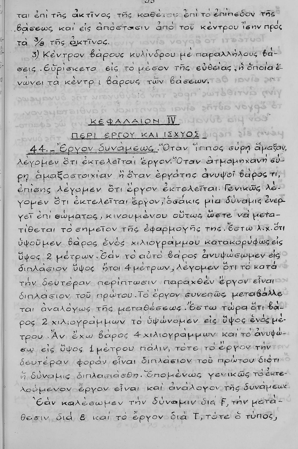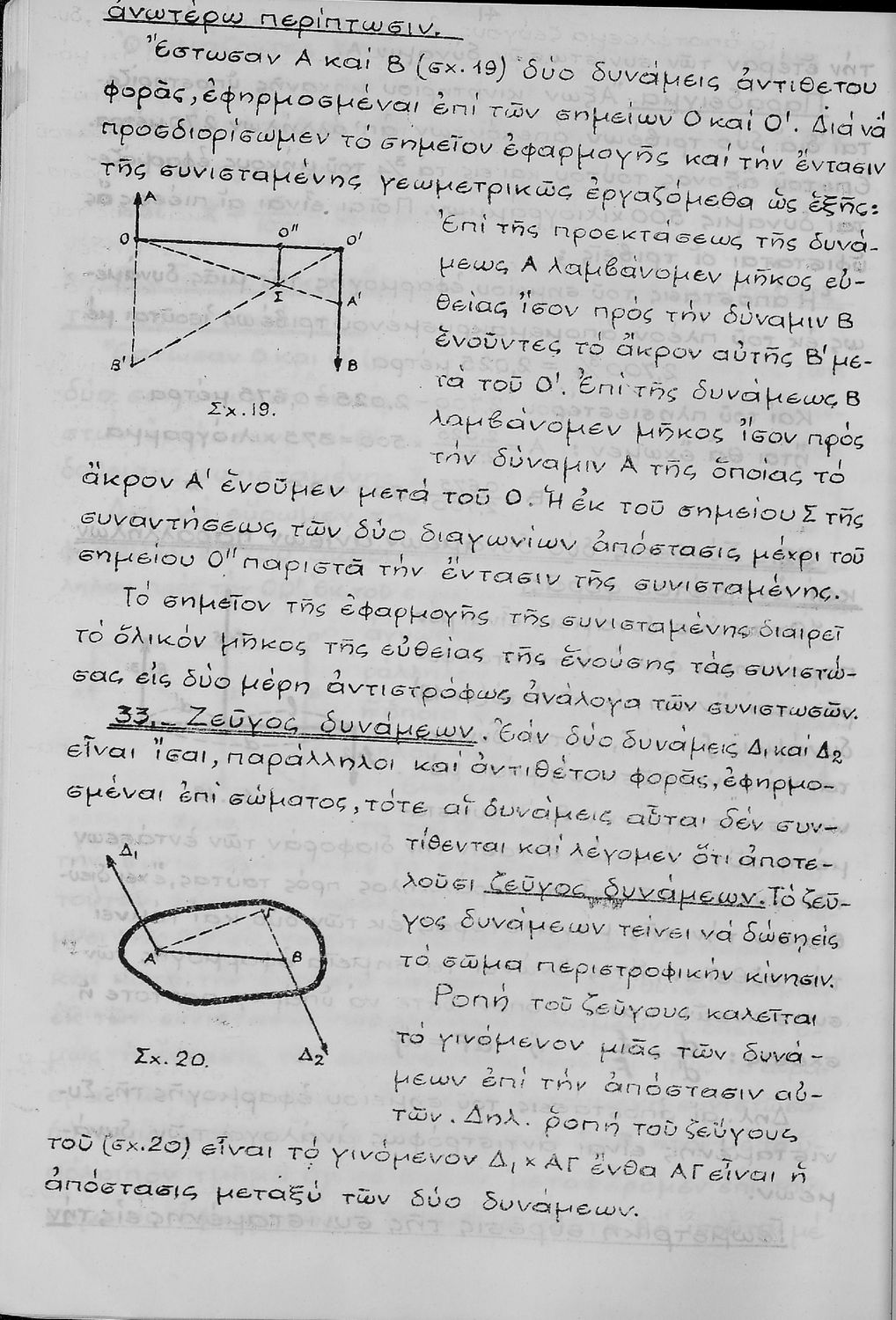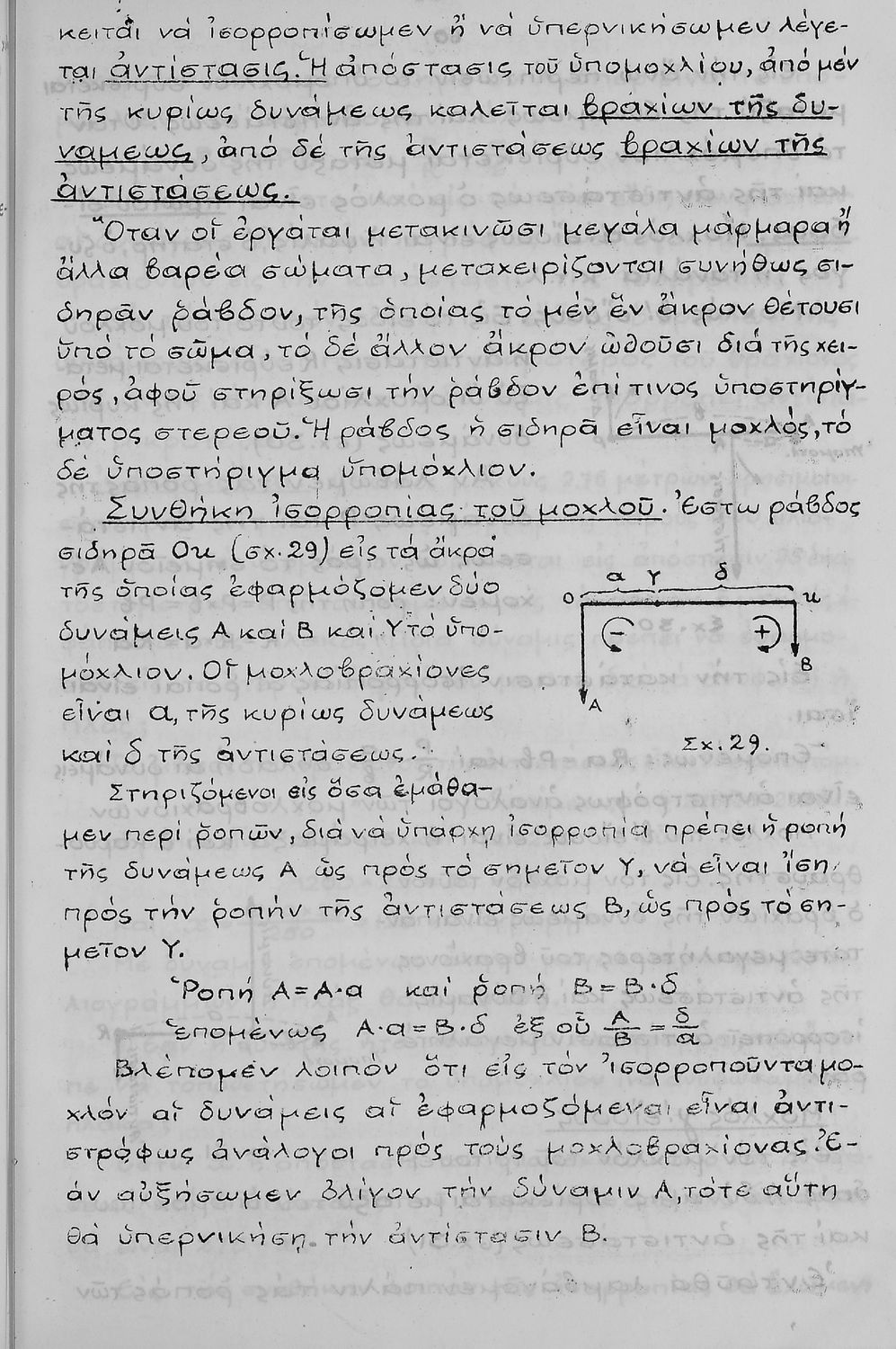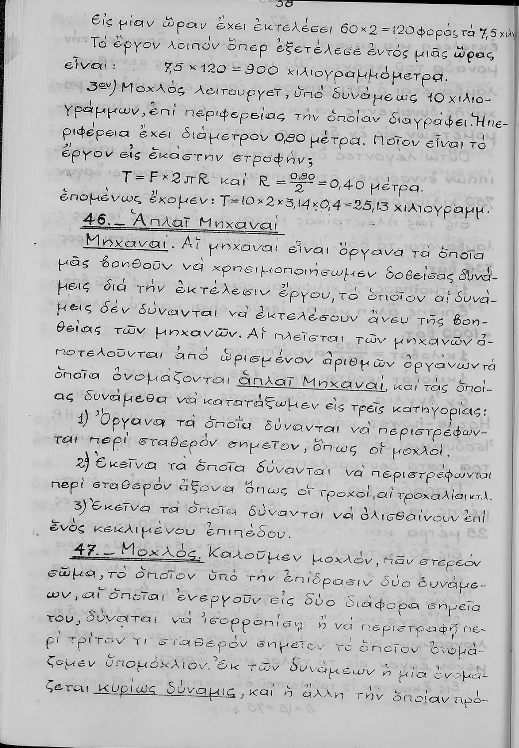 Μαθητικό βοήθημα για το μάθημα της Φυσικής. Το σύγγραμμα ήταν μελέτη του συγγραφέα από τη σχολή Μηχανικών και απευθυνόταν στους σπουδαστές. Περιλαμβάνει σημείωσες για τη μηχανική, σχετικά με τις κινήσεις, τις δυνάμεις, το βάρος, το έργο, την ισχύ, τη μάζα, τα εκκρεμή, την τριβή κ.α.