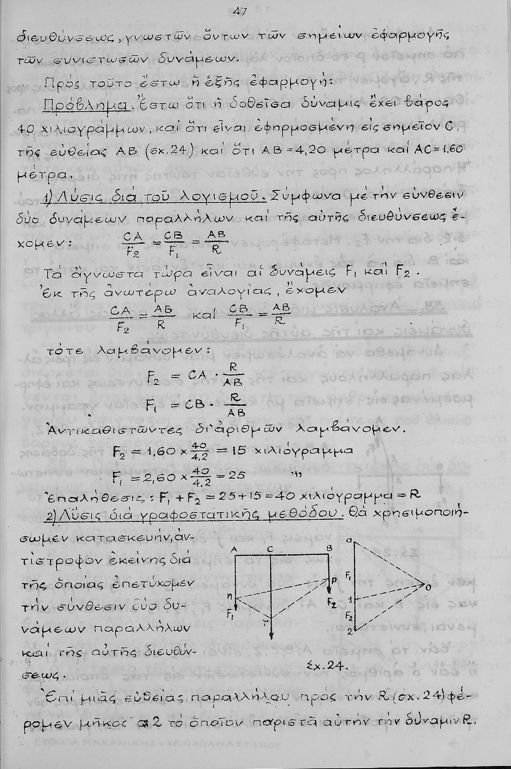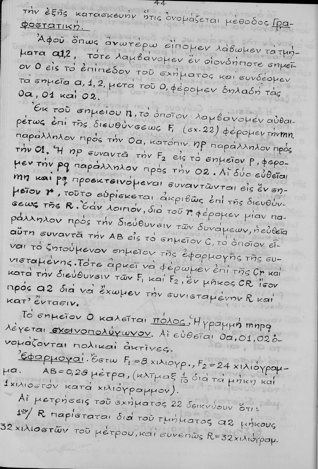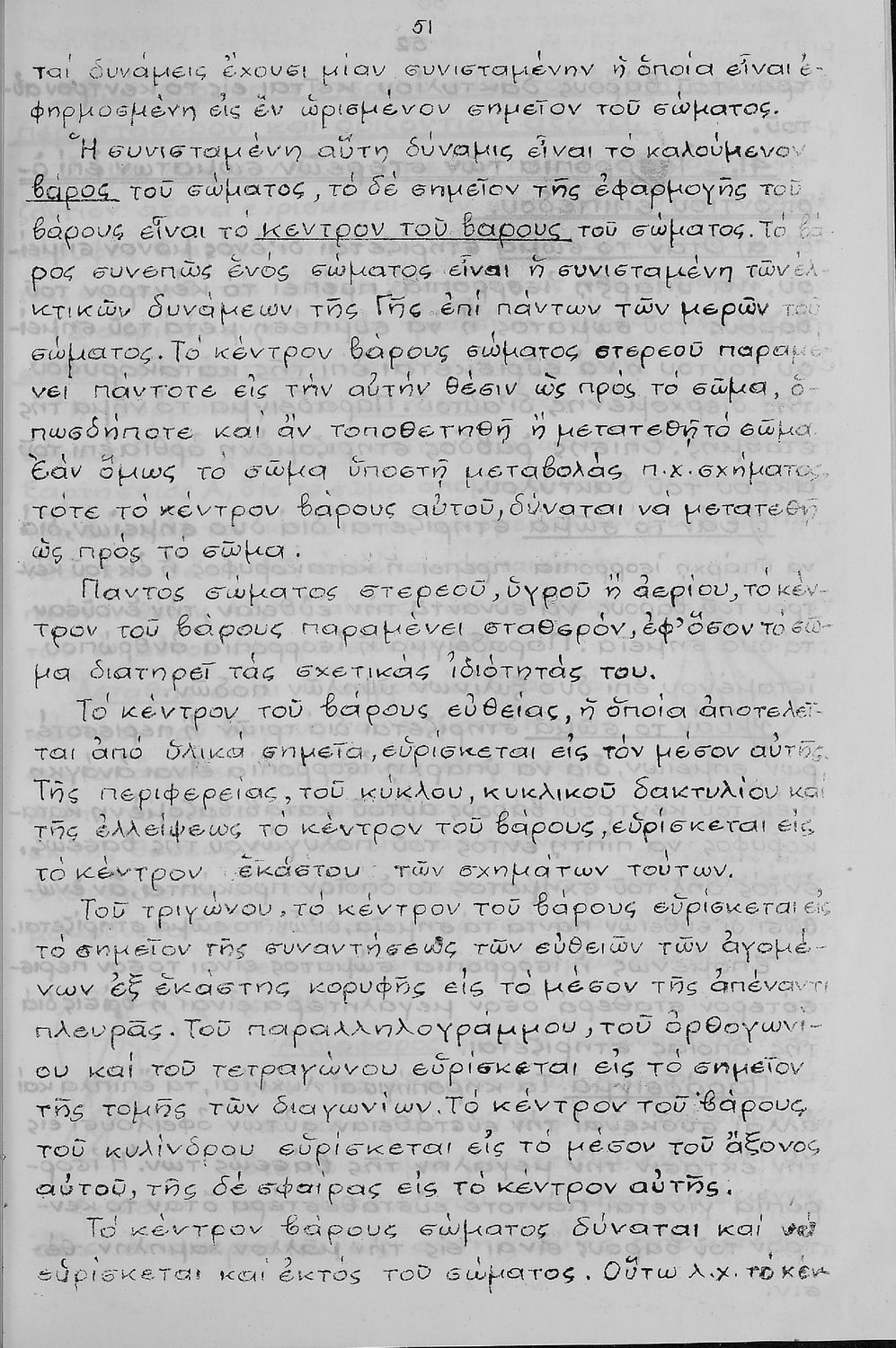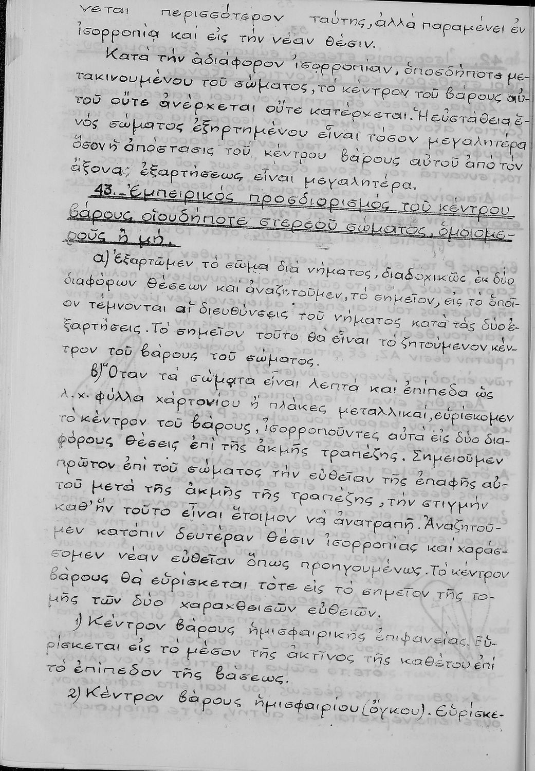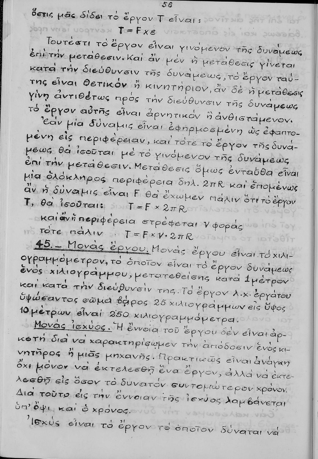 Παρουσίαση περιεχομένου: Μαθητικό βοήθημα για το μάθημα της Φυσικής. Το σύγγραμμα ήταν μελέτη του συγγραφέα από τη σχολή Μηχανικών και απευθυνόταν στους σπουδαστές. Περιλαμβάνει σημείωσες για τη μηχανική, σχετικά με τις κινήσεις, τις δυνάμεις, το βάρος, το έργο, την ισχύ, τη μάζα, τα εκκρεμή, την τριβή κ.α.