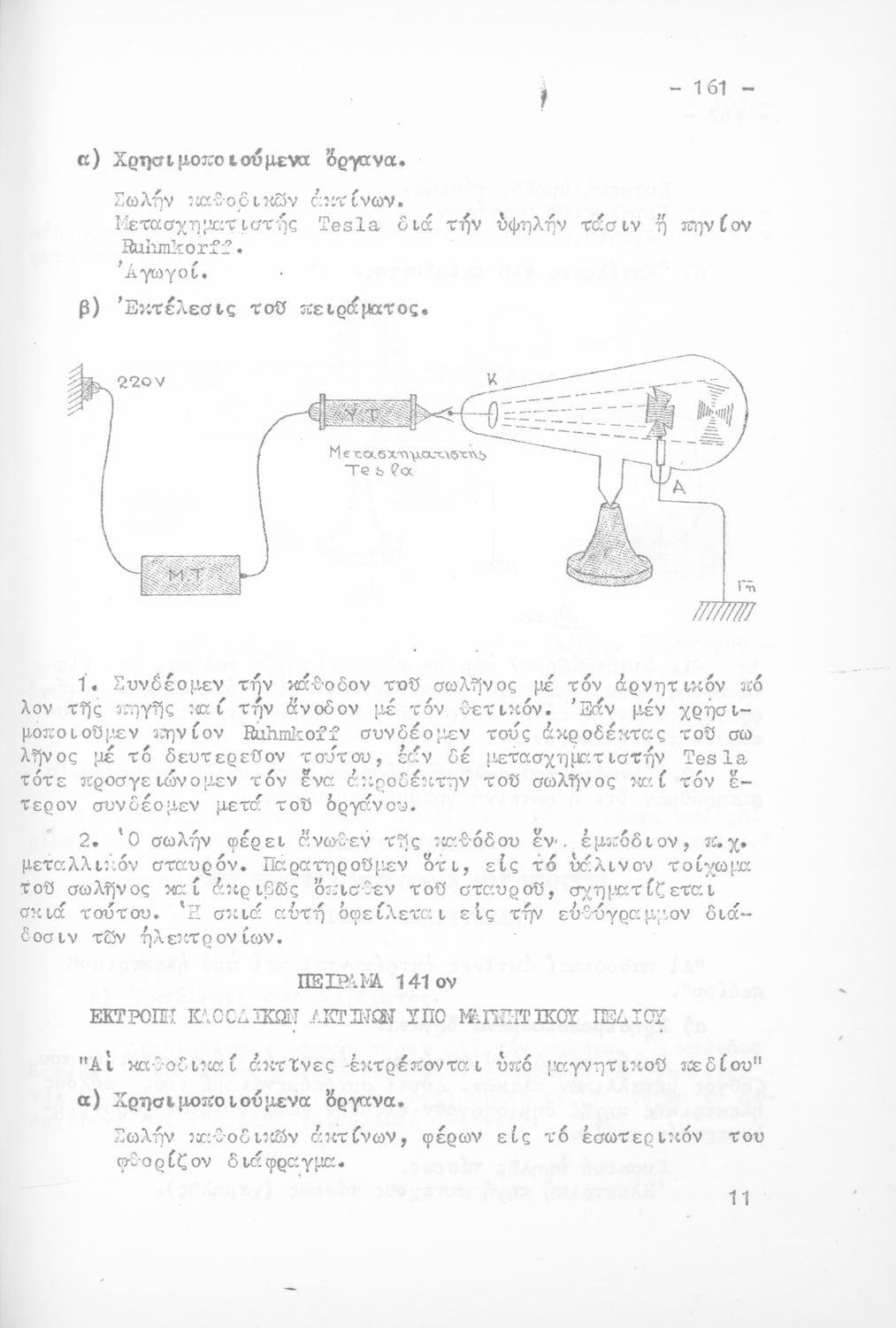 Πειράματα Φυσικής Εργαστήριον - Πειράματα - Τεχνικά Στοιχεία προς χρήσιν των διδασκόντων εις τα σχολεία μέσης - τεχνικής και στοιχειώδους εκπαιδεύσεως