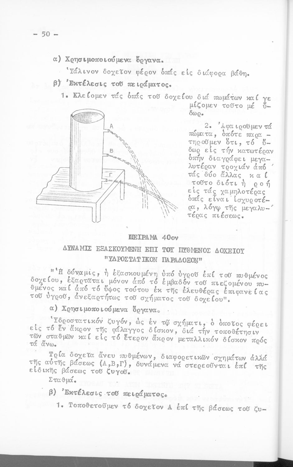 Παιδαγωγικό βοήθημα Φυσικής που απευθύνεται σε καθηγητές της Μέσης και της Τεχνικής εκπαίδευσης με σκοπό την οργάνωση εργαστηρίων Φυσικής, τη περιγραφή ποικίλων πειραμάτων (οπτικής, θερμότητας κ.α) για την πραγματοποίηση τους εργαστηριακά. Περιλαμβάνει και τεχνικά στοιχεία (ξυλοτεχνία, μεταλλοτεχνία κ.α.) για την επισκευή διάφορων κατασκευών.