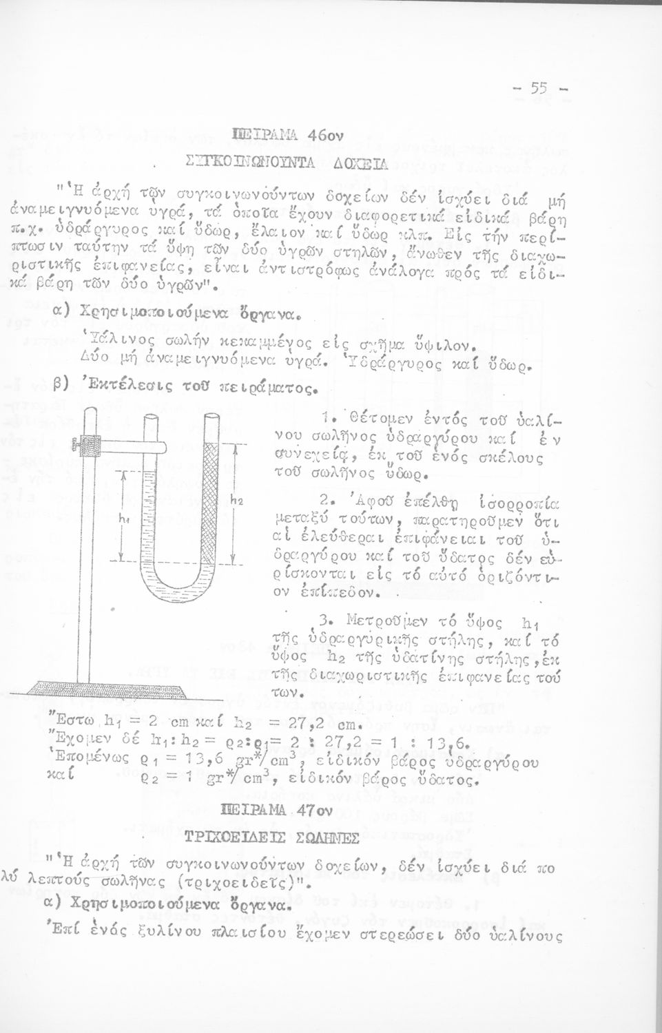 Πειράματα Φυσικής Εργαστήριον - Πειράματα - Τεχνικά Στοιχεία προς χρήσιν των διδασκόντων εις τα σχολεία μέσης - τεχνικής και στοιχειώδους εκπαιδεύσεως