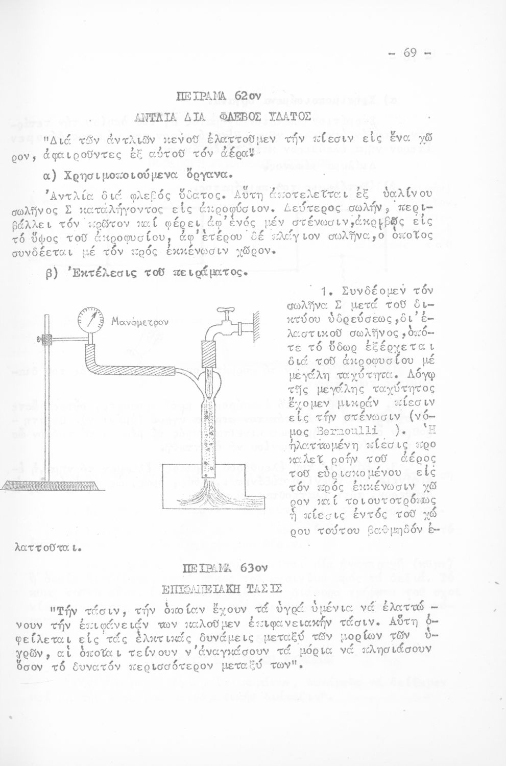 Πειράματα Φυσικής Εργαστήριον - Πειράματα - Τεχνικά Στοιχεία προς χρήσιν των διδασκόντων εις τα σχολεία μέσης - τεχνικής και στοιχειώδους εκπαιδεύσεως