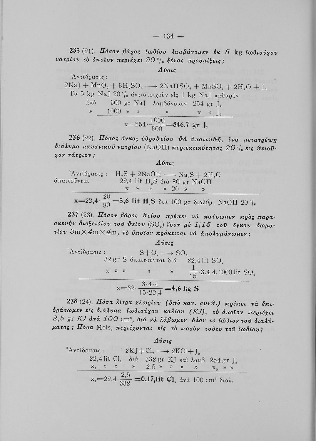 Ασκήσεις Γενικής Ανοργάνου και Οργανικής Χημείας προς χρήσιν των μαθητών των Γυμνασίων, Πρακτικών Λυκείων και των υποψηφίων δια τας εισαγωγικάς εξετάσεις των Ανωτάτων Σχολών του Κράτους