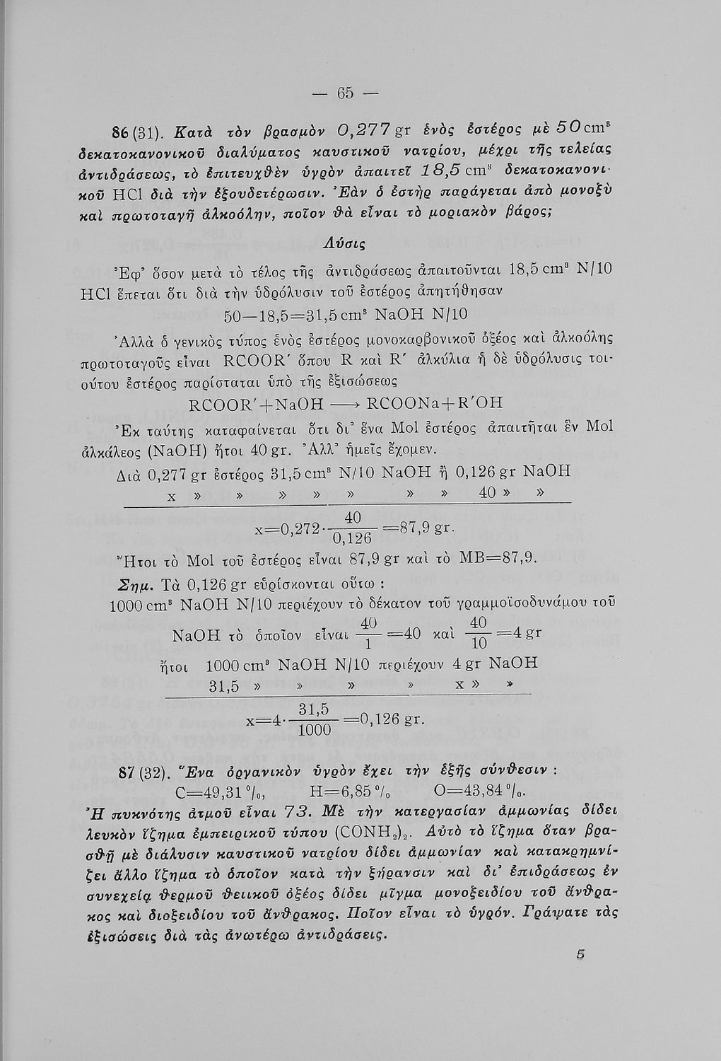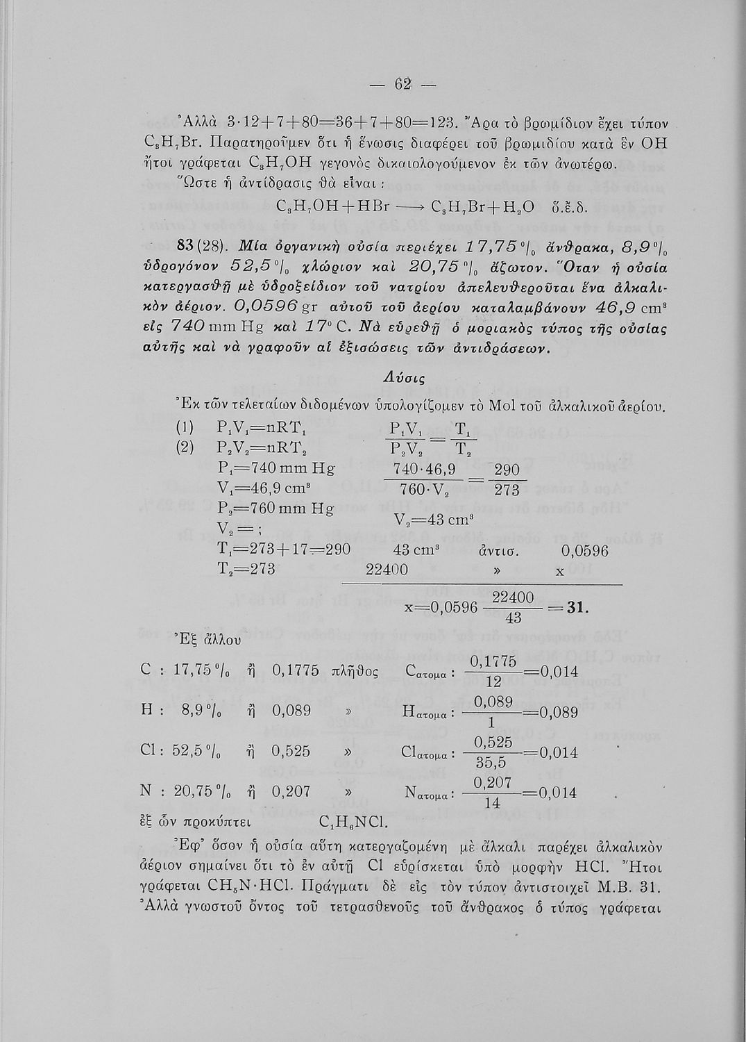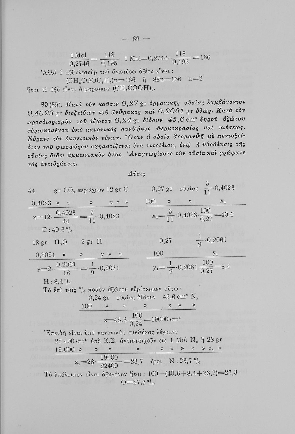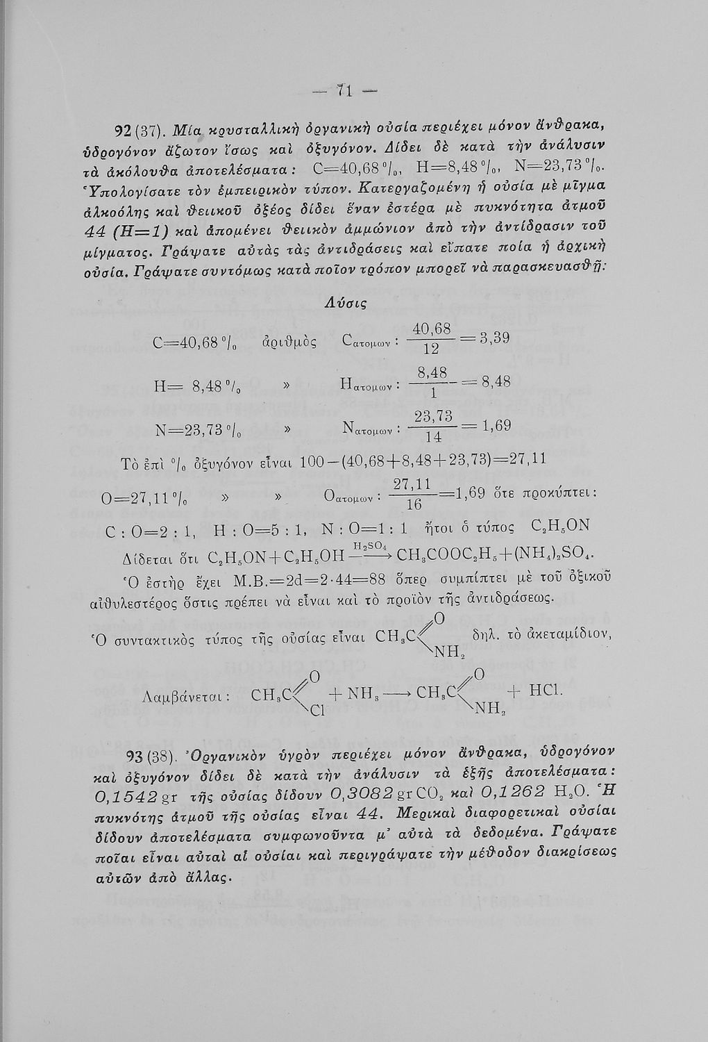 Ασκήσεις Γενικής Ανοργάνου και Οργανικής Χημείας προς χρήσιν των μαθητών των Γυμνασίων, Πρακτικών Λυκείων και των υποψηφίων δια τας εισαγωγικάς εξετάσεις των Ανωτάτων Σχολών του Κράτους