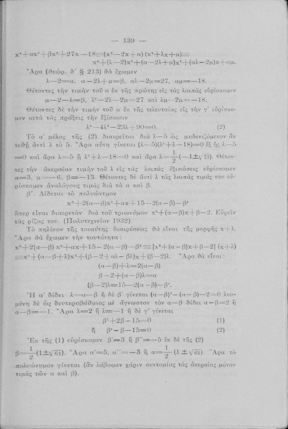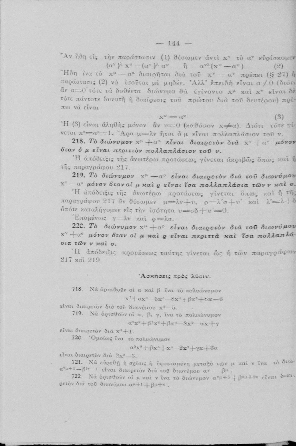 Μαθήματα Άλγεβρας δια τους μαθητάς των Πρακτικών Λυκείων, τους υποψηφίους των ανωτάτων σχολών του κράτους, τους φοιτητάς των Μαθηματικών κ.λ.π.