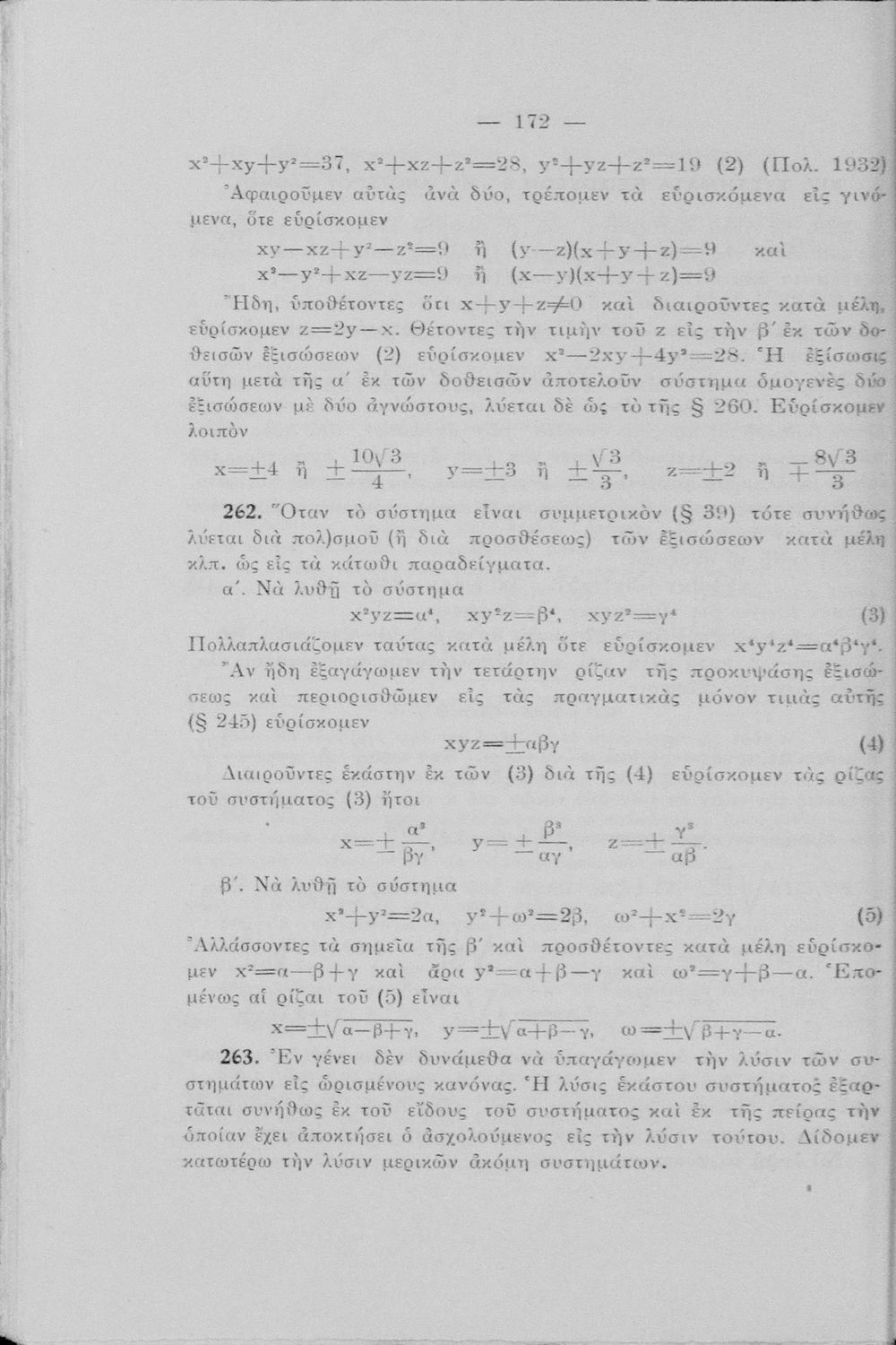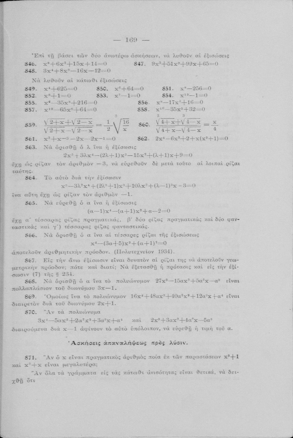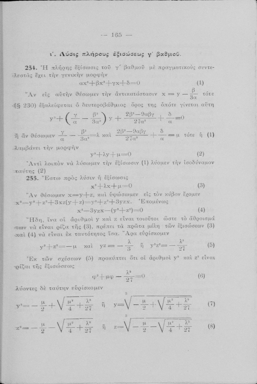 Μαθήματα Άλγεβρας δια τους μαθητάς των Πρακτικών Λυκείων, τους υποψηφίους των ανωτάτων σχολών του κράτους, τους φοιτητάς των Μαθηματικών κ.λ.π.
