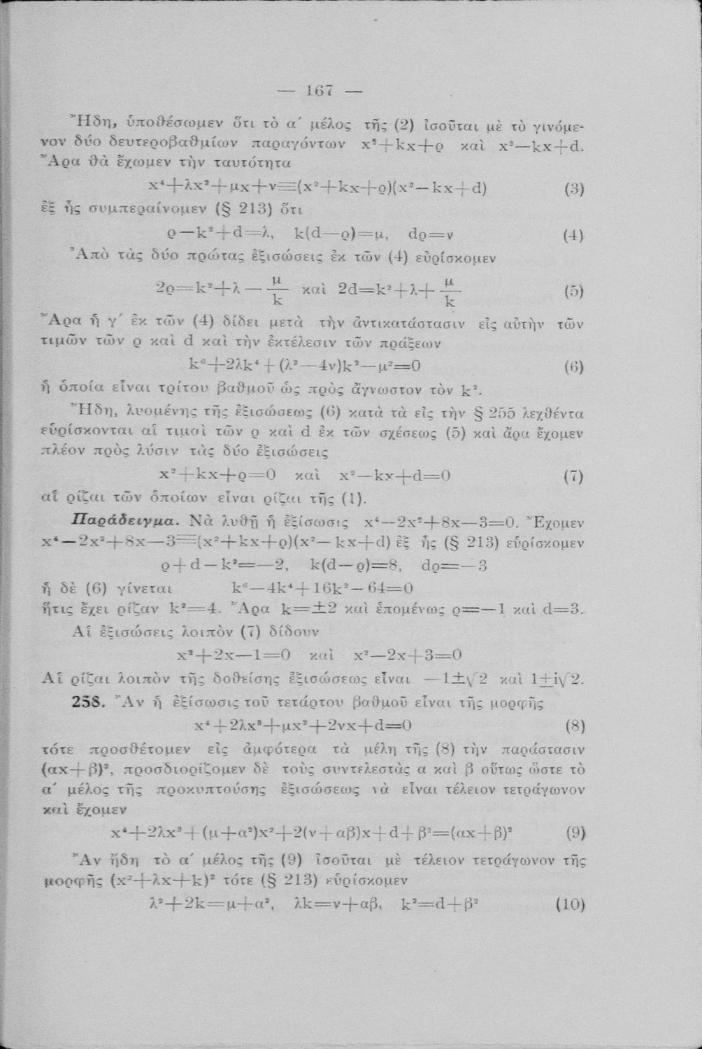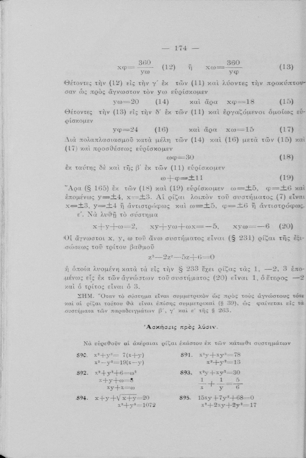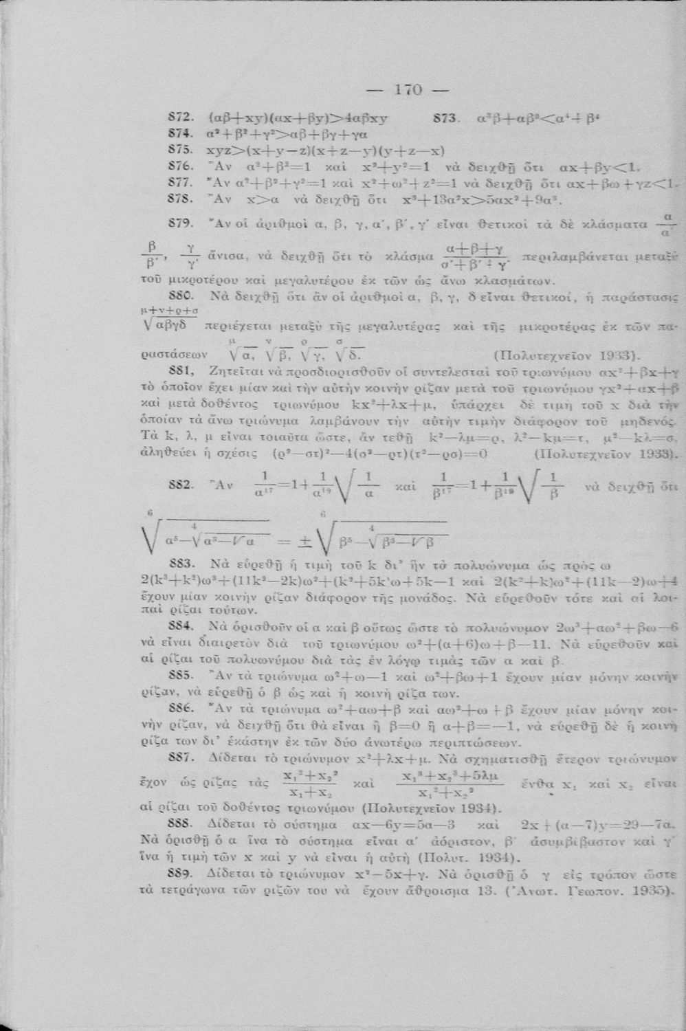 Μαθήματα Άλγεβρας δια τους μαθητάς των Πρακτικών Λυκείων, τους υποψηφίους των ανωτάτων σχολών του κράτους, τους φοιτητάς των Μαθηματικών κ.λ.π.