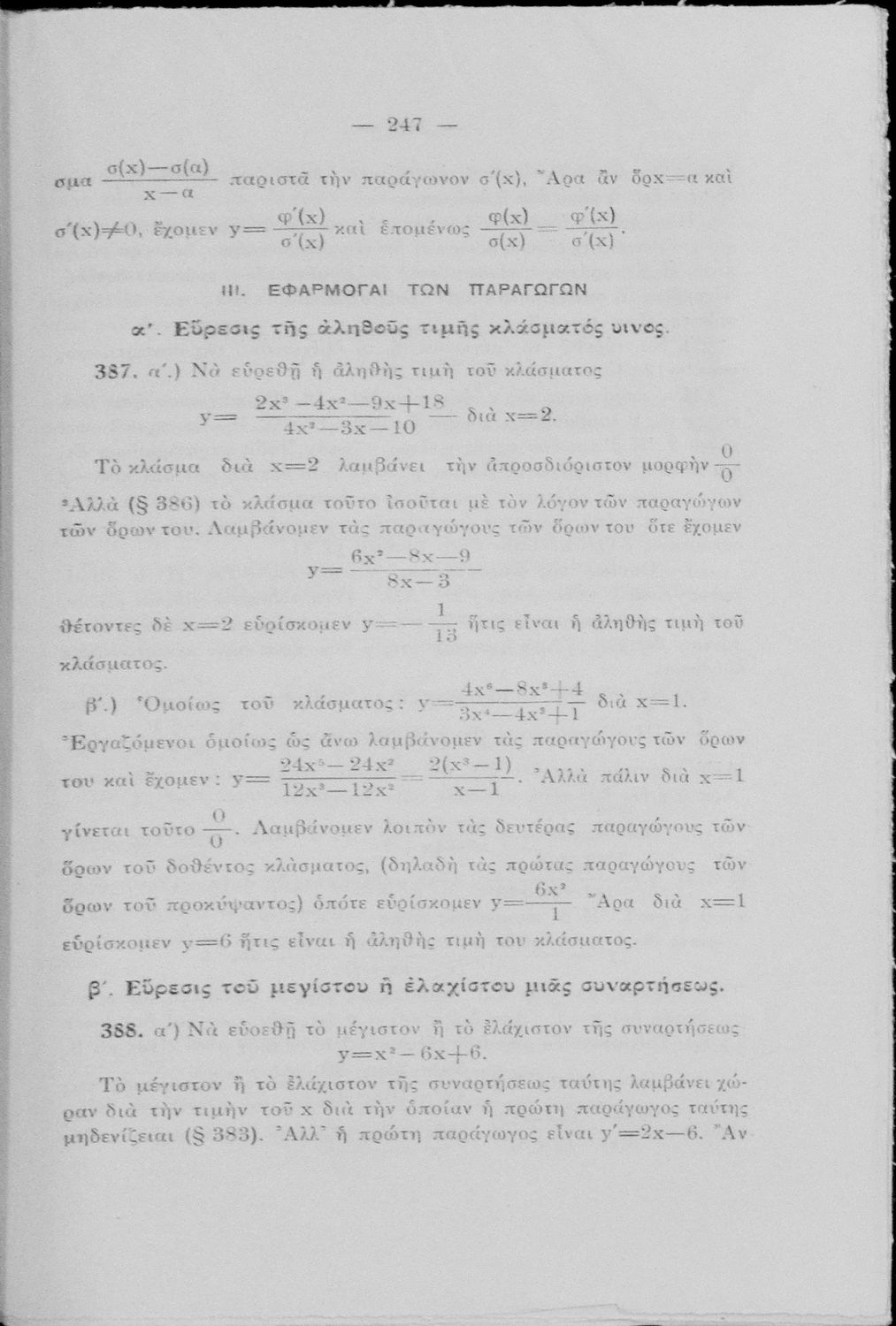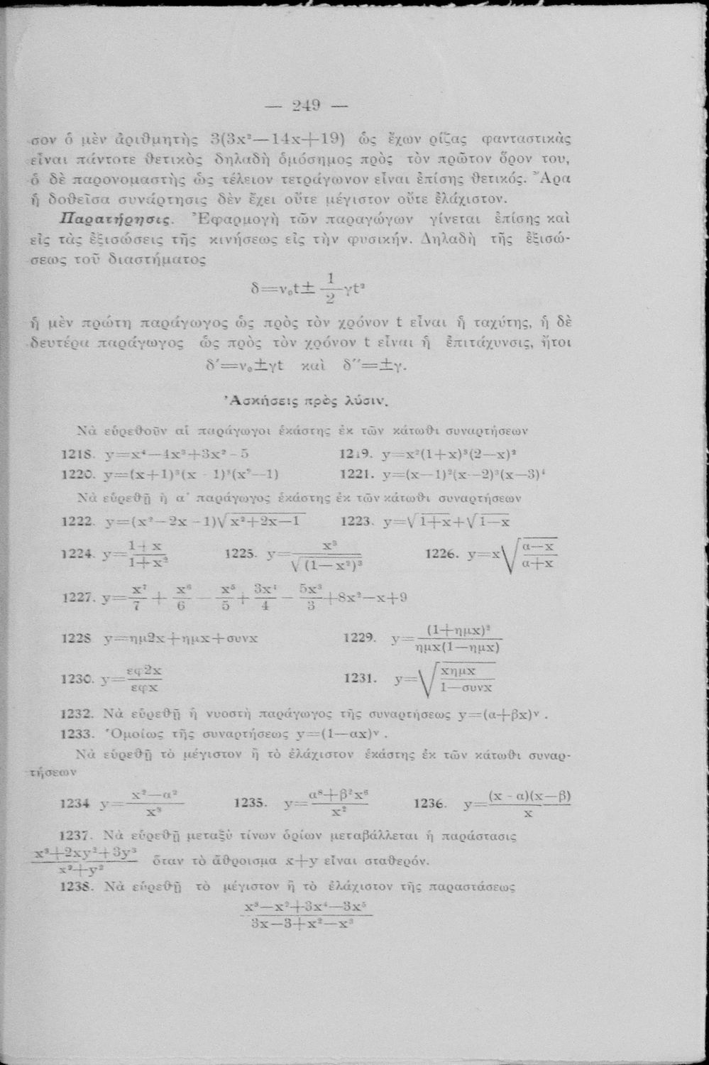 Μαθήματα Άλγεβρας δια τους μαθητάς των Πρακτικών Λυκείων, τους υποψηφίους των ανωτάτων σχολών του κράτους, τους φοιτητάς των Μαθηματικών κ.λ.π.