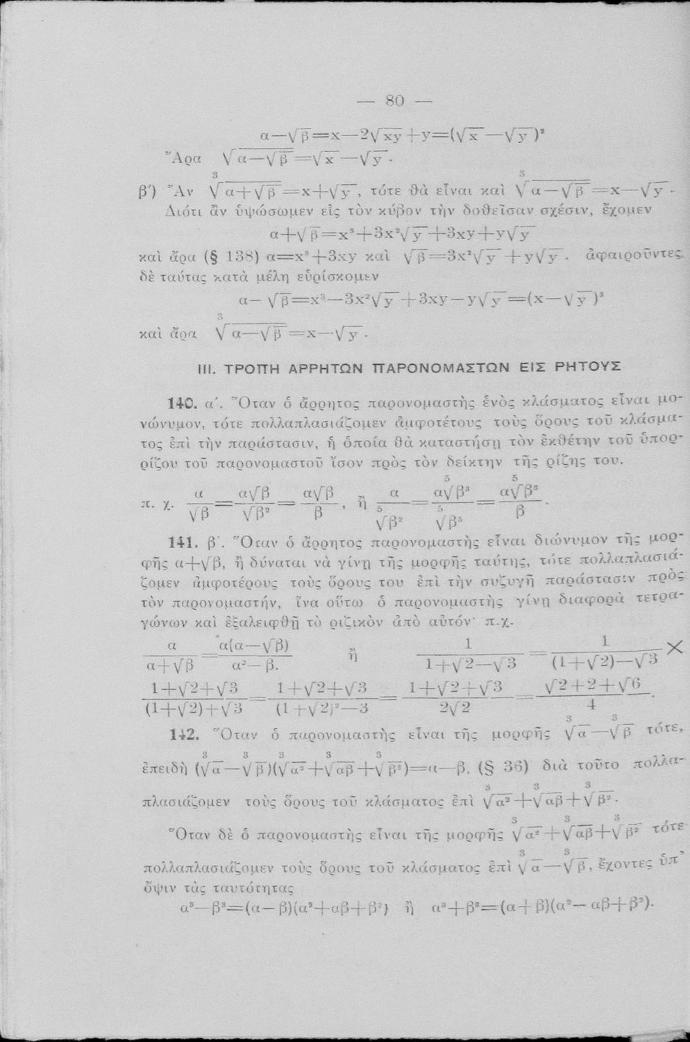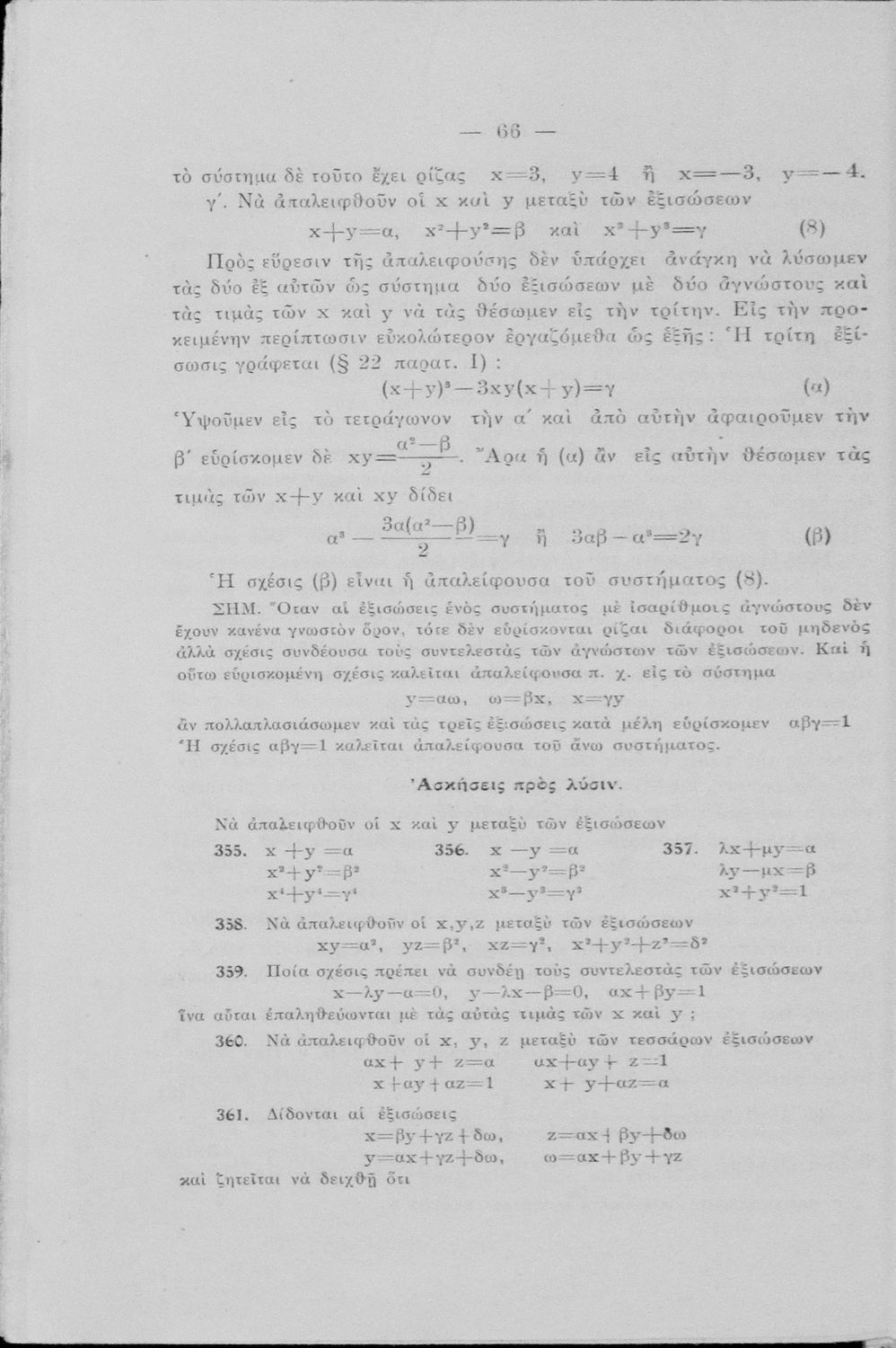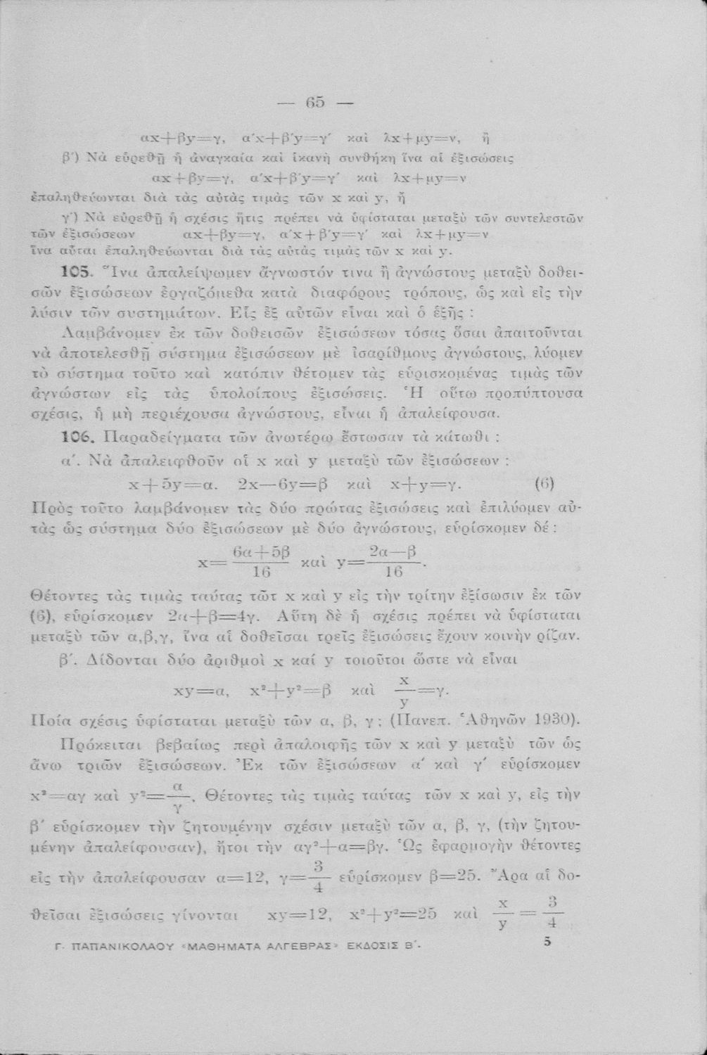 Μαθήματα Άλγεβρας δια τους μαθητάς των Πρακτικών Λυκείων, τους υποψηφίους των ανωτάτων σχολών του κράτους, τους φοιτητάς των Μαθηματικών κ.λ.π.