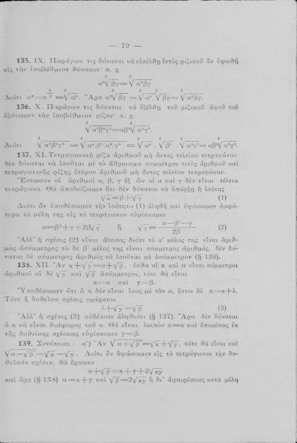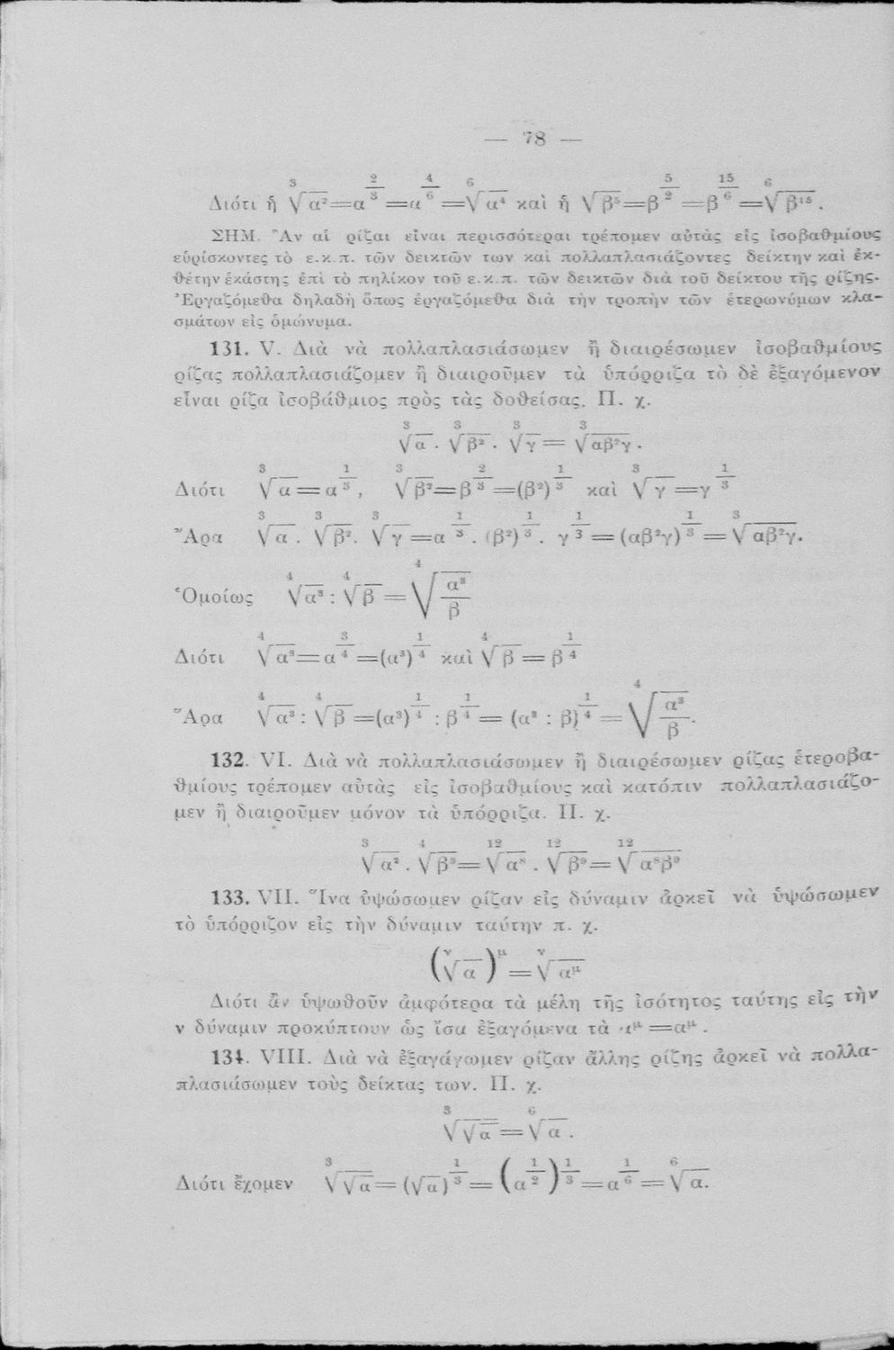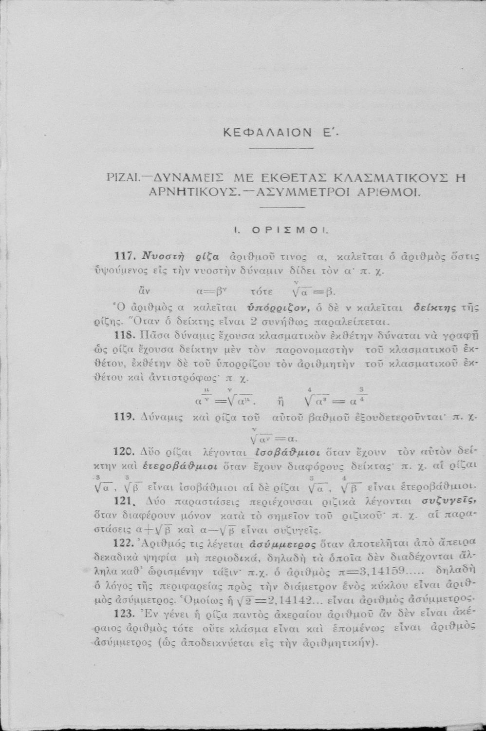 Μαθητικό βοήθημα Μαθηματικών για τους μαθητές των Γυμνασίων και των Εμπορικών και Τεχνικών Σχολών καθώς και δια τους Υποψηφίους των Ανωτάτων Σχολών. Το βιβλίο πραγματεύεται την έννοια της τετραγωνικής ρίζας ...