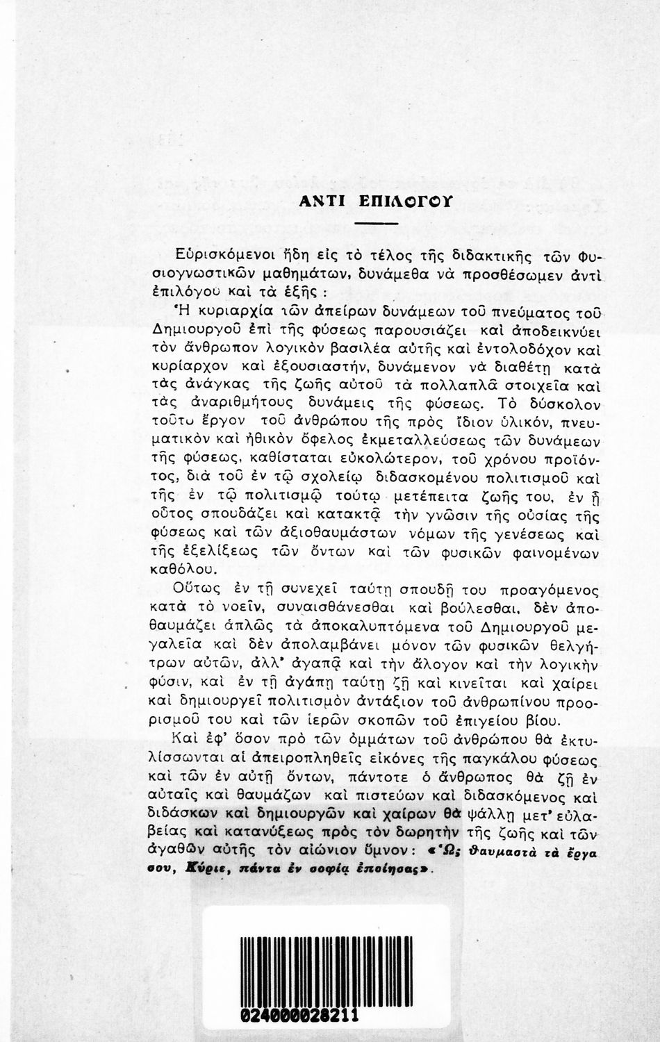 Παρουσίαση περιεχομένου: Παιδαγωγικό βοήθημα διδακτικής των Φυσιογνωστικών μαθημάτων (Βιολογία, Ζωολογία, Ανθρωπολογία, Ορυκτολογία, Φυσική). Ο συγγραφέας υπήρξε Διευθυντής της Ραλλείου Παιδαγωγικής Ακαδημίας Πειραιώς