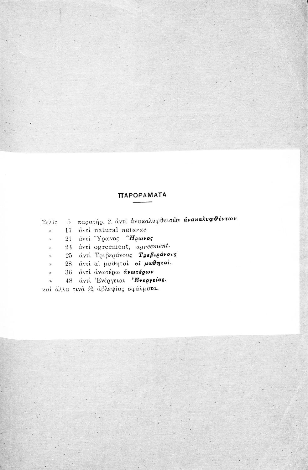 Έκδοση που περιλαμβάνει κριτική, από πραγματολογική και διδακτική άποψη, της Ελληνικής Χρηστομάθειας του Ιωάννη Γεράνη. Ο συγγραφέας αποφαίνεται ότι το εν λόγω σχολικό εγχειρίδιο είναι όχι μόνο ακατάλληλο αλλά