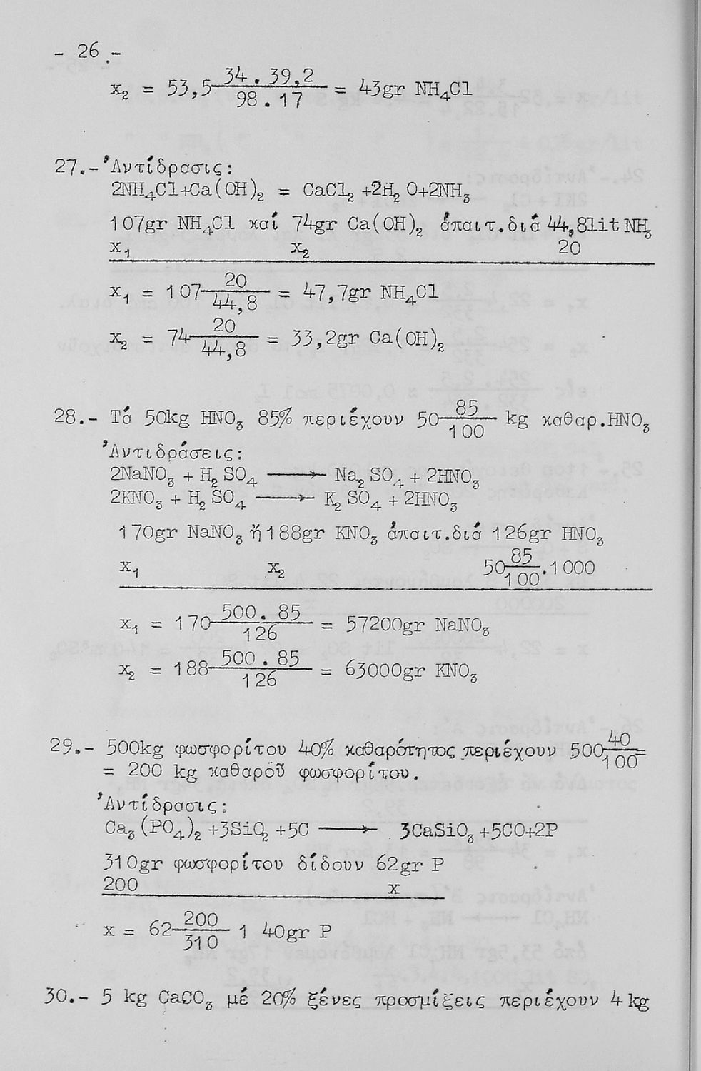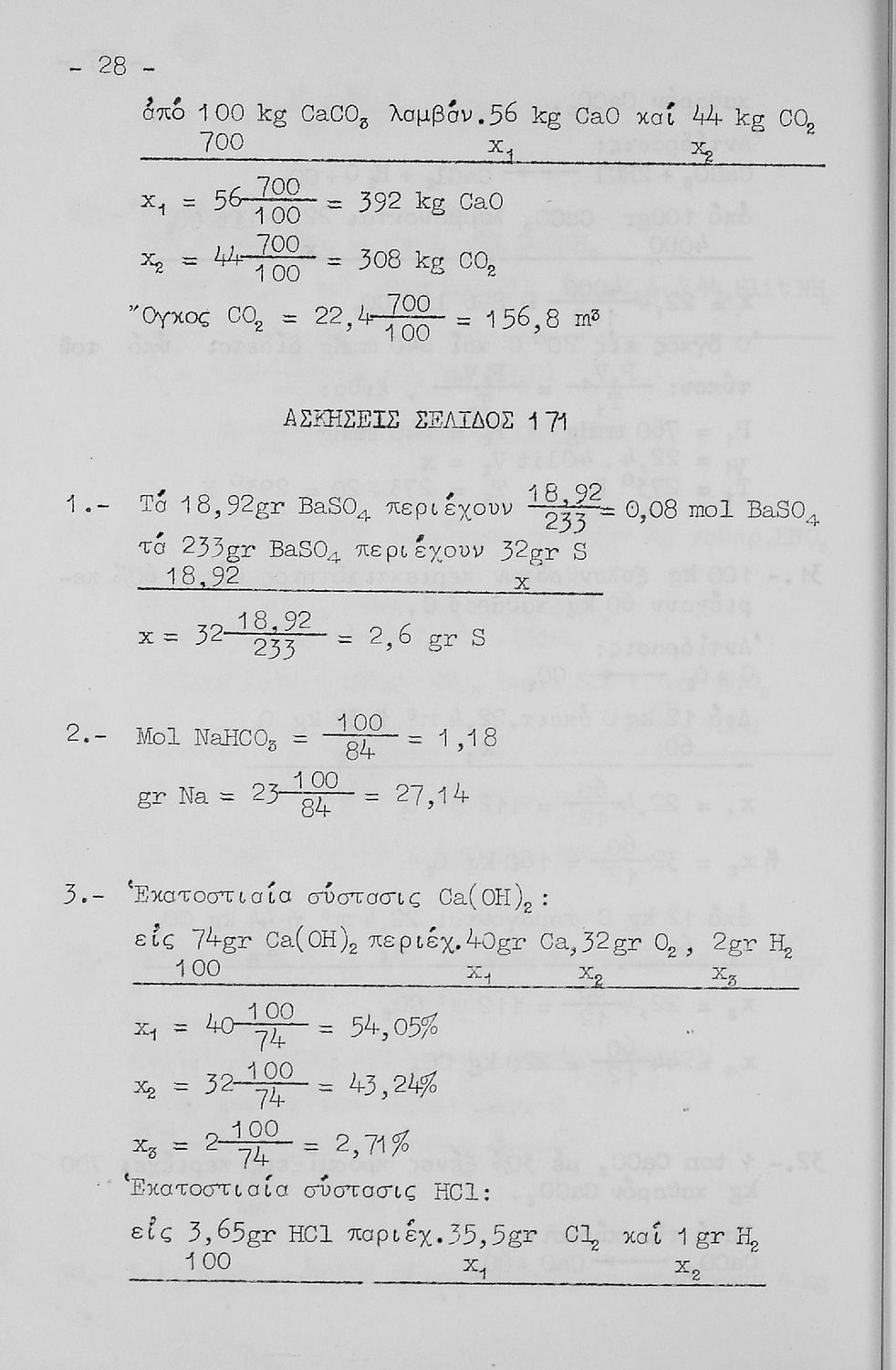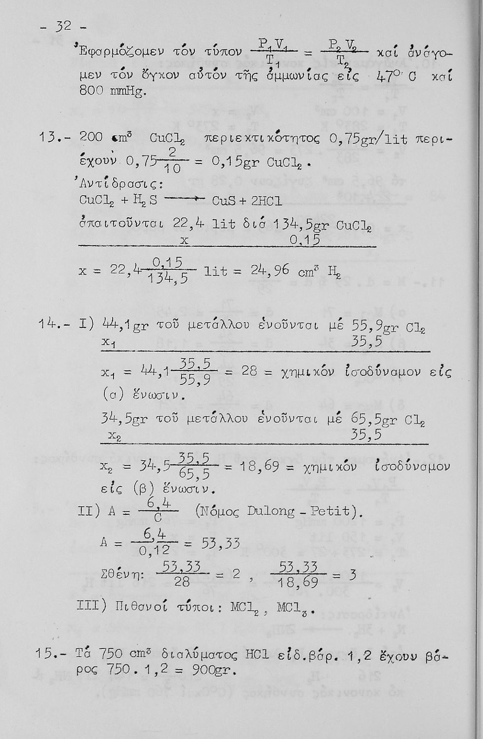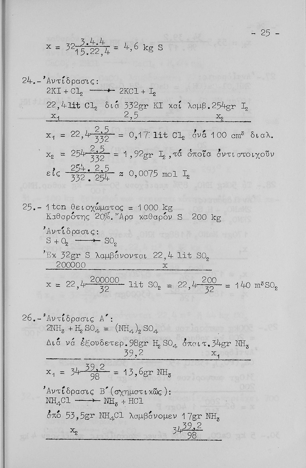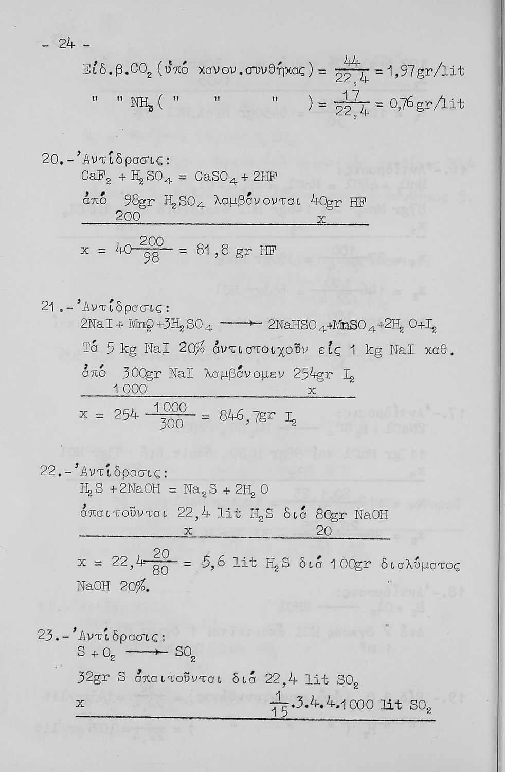 Μαθητικό βοήθημα που περιλαμβάνει λύσεις ασκήσεων για την εφαρμογή χημικών νόμων (Gay-Lussac, Boyle-Mariotte), τον υπολογισμό χημικών αντιδράσεων, εμπειρικών και μοριακών τύπων καθώς και τον υπολογισμό όγκου, σχετικής πυκνότητας και αντιδράσεων μεταξύ των στοιχείων.