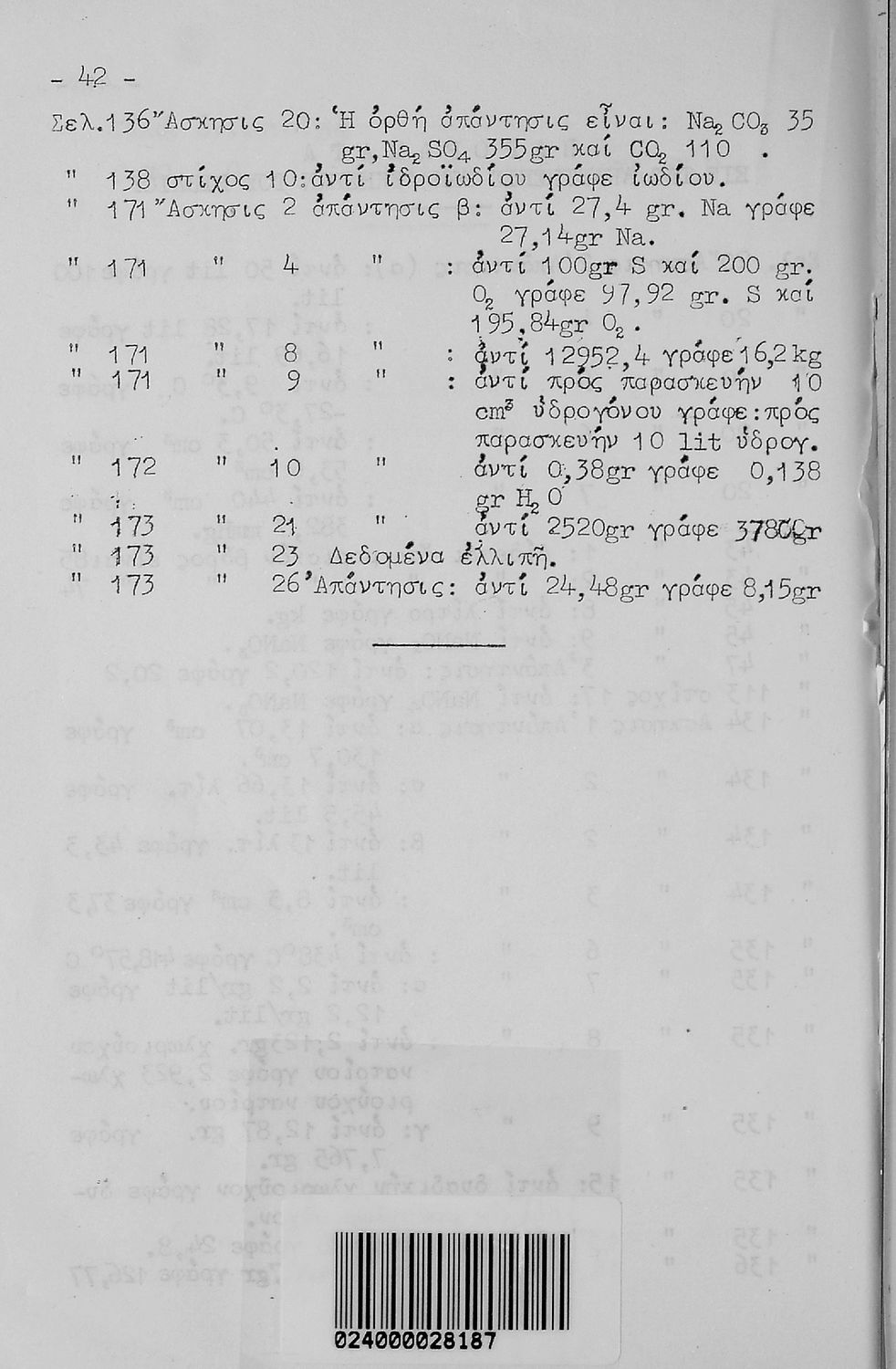 LDR 01248 2200205 4500 035 ## _a01-19068 040 ## _aΙνστιτούτο Εκπαιδευτικής Πολιτικής 041 ## _ael 100 ## _aΣτυλιανός Κατάκης 110 ## _a19068 245 0# _aΛύσεις των ασκήσεων των περιεχομένων εις την Ανόργανον Χημείαν του 250 ## _a2η Έκδοση 260 ## _aΑθήνα _bΣ. Ν. Κλουκίνας _c1956 300 ## _a42 520 ## _aΜαθητικό βοήθημα που περιλαμβάνει λύσεις ασκήσεων για την εφαρμογή χημικών νόμων (Gay-Lussac, Boyle-Mariotte), τον υπολογισμό χημικών αντιδράσεων, εμπειρικών και μοριακών τύπων καθώς και τον υπολογισμό όγκου, σχετικής πυκνότητας και αντιδράσεων μεταξύ των στοιχείων. 521 ## _aΓυμνάσιο 522 ## _aΕλλάδα 546 ## _aΚαθαρεύουσα 563 ## _aΜαλακό Εξώφυλλο 650 #4 _aΑντιδράσεις _aΜοριακοί τύποι _aΌγκος _aΠεριεκτικότητα _aΠυκνότητα