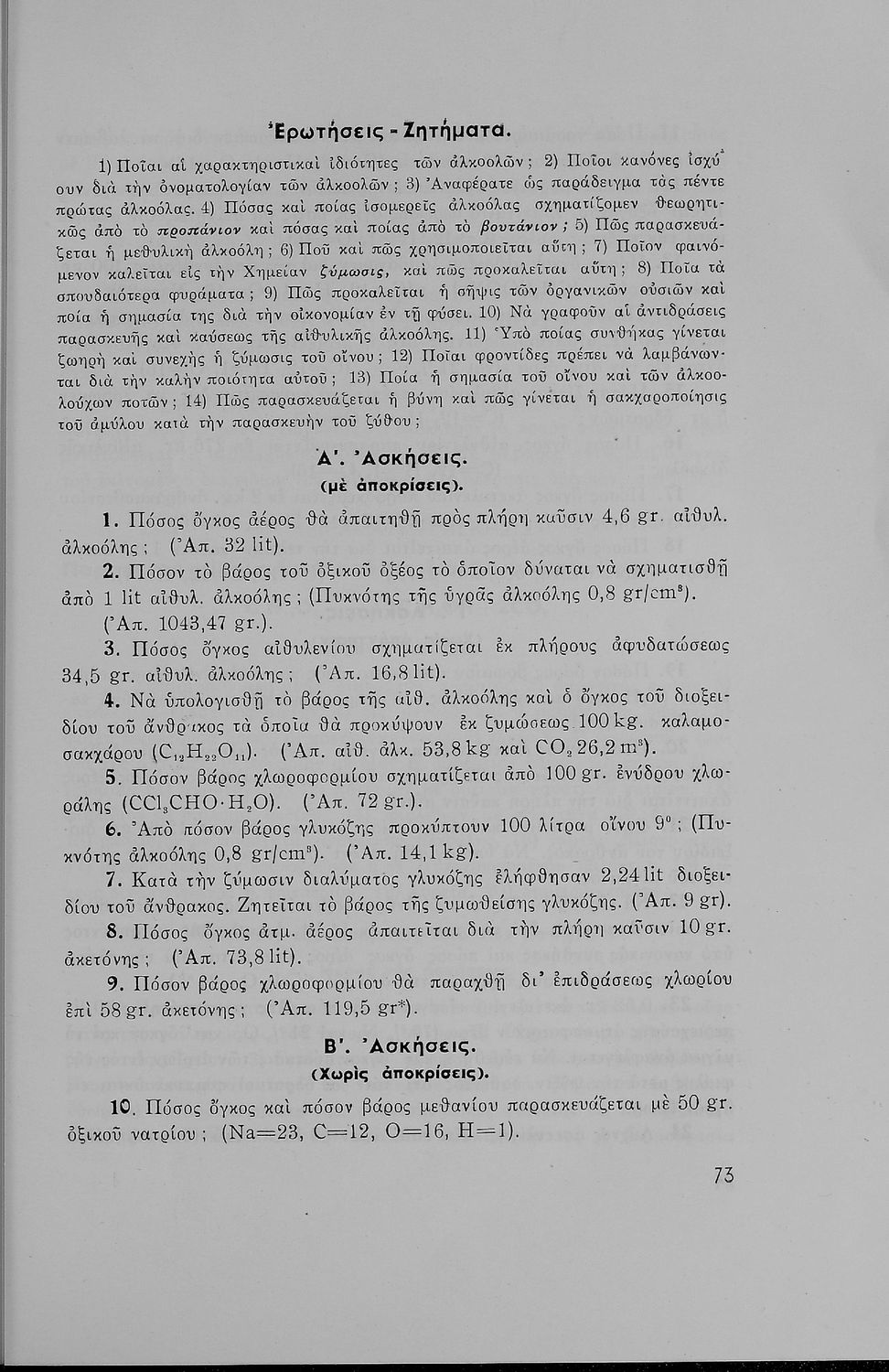 Οργανική Χημεία προς χρήσιν των μαθητών Πρακτικού και Κλασικού τύπου και των υποψηφίων δια τας εισαγωγικάς εξετάσεις των Ανωτάτων Σχολών