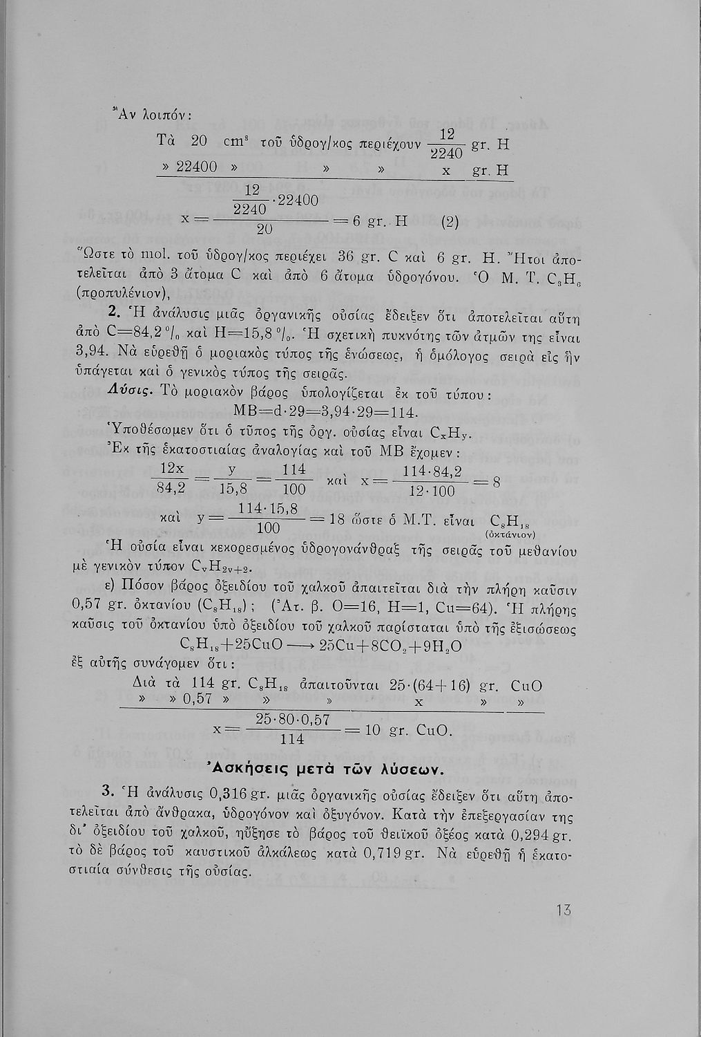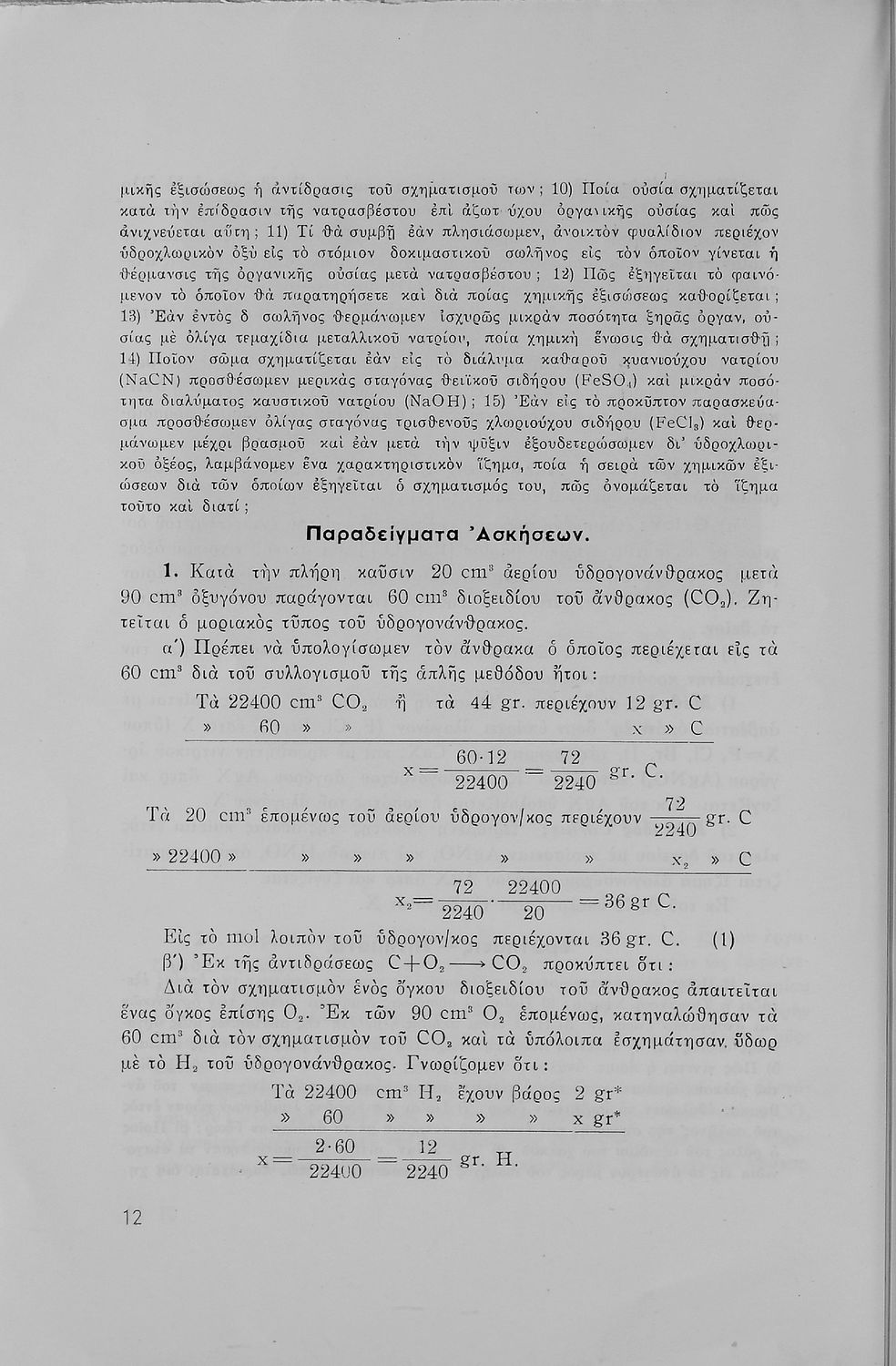Μαθητικό βοήθημα για τους υποψηφίους των εισαγωγικών εξετάσεων των Ανωτάτων Σχολών και των μαθητών των ανωτέρων τάξεων των Σχολείων Μέσης Εκπαιδεύσεως. Το βιβλίο περιέχει λύσεις ασκήσεων ανόργανης και ...