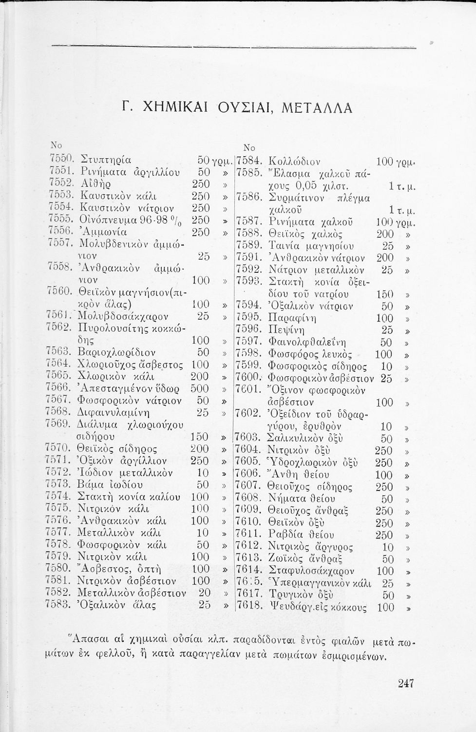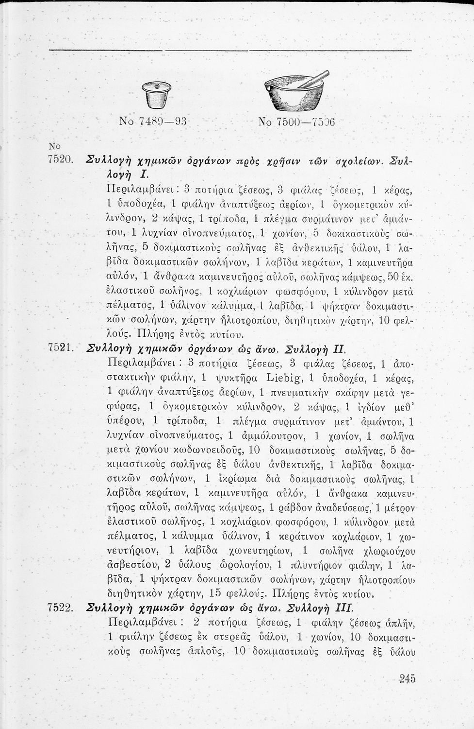 Τίτλος: Κατάλογος Οργάνων και συσκευών φυσικής και χημείας