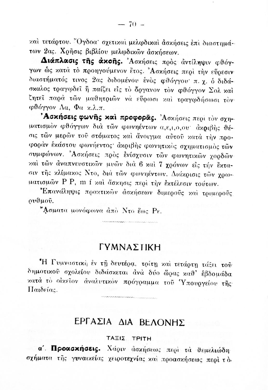 Αναλυτικό πρόγραμμα που εκδόθηκε με εντολή του Υπουργείου των Εκκλησιαστικών και της Δημόσιας Εκπαιδεύσεως από το τμήμα Δ΄, Μέσης Εκπαίδευσης, Γυμναστικής και Σκοποβολής. Στο εξώφυλλο υπάρχει το βασιλικό σήμα.
